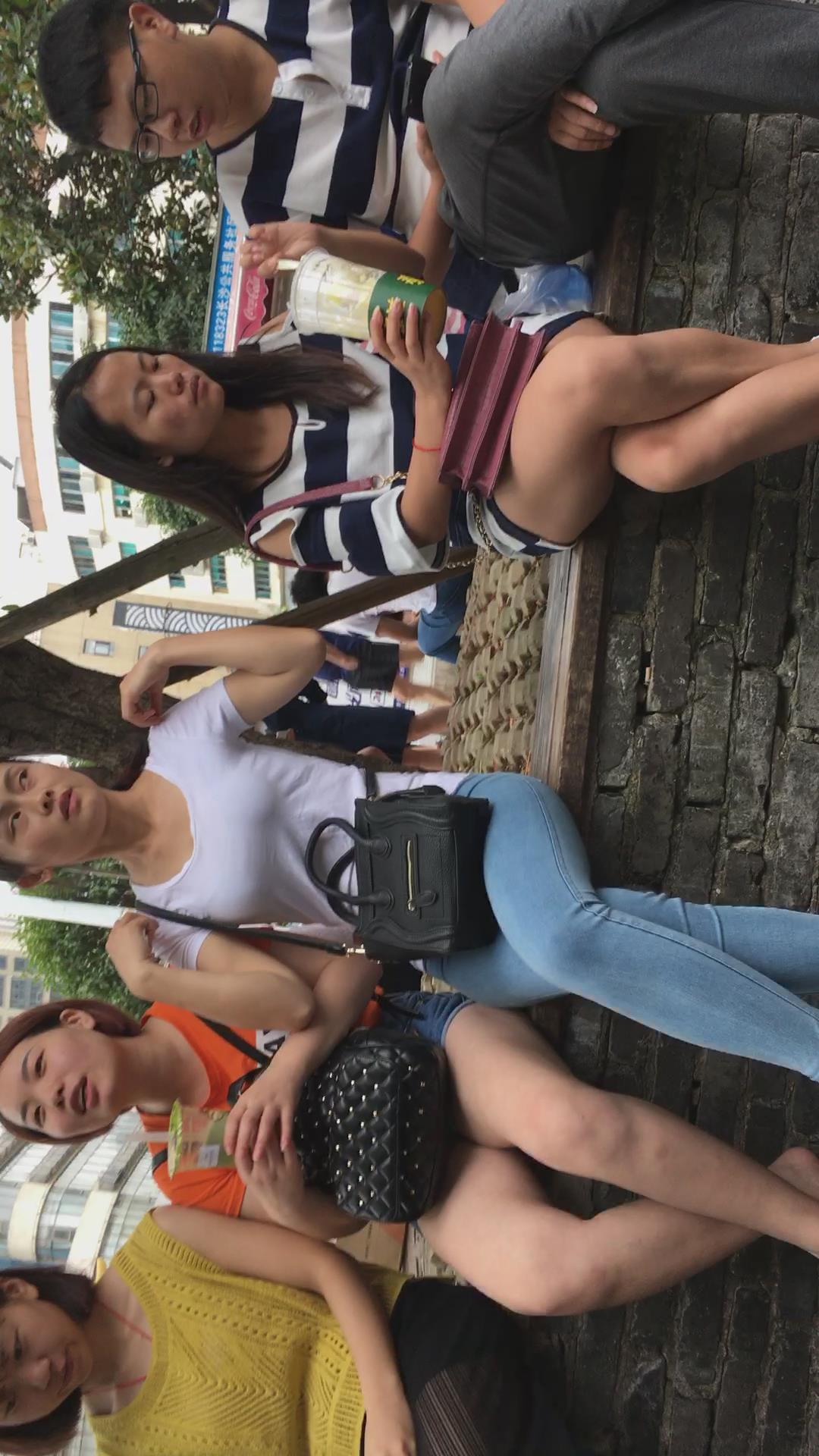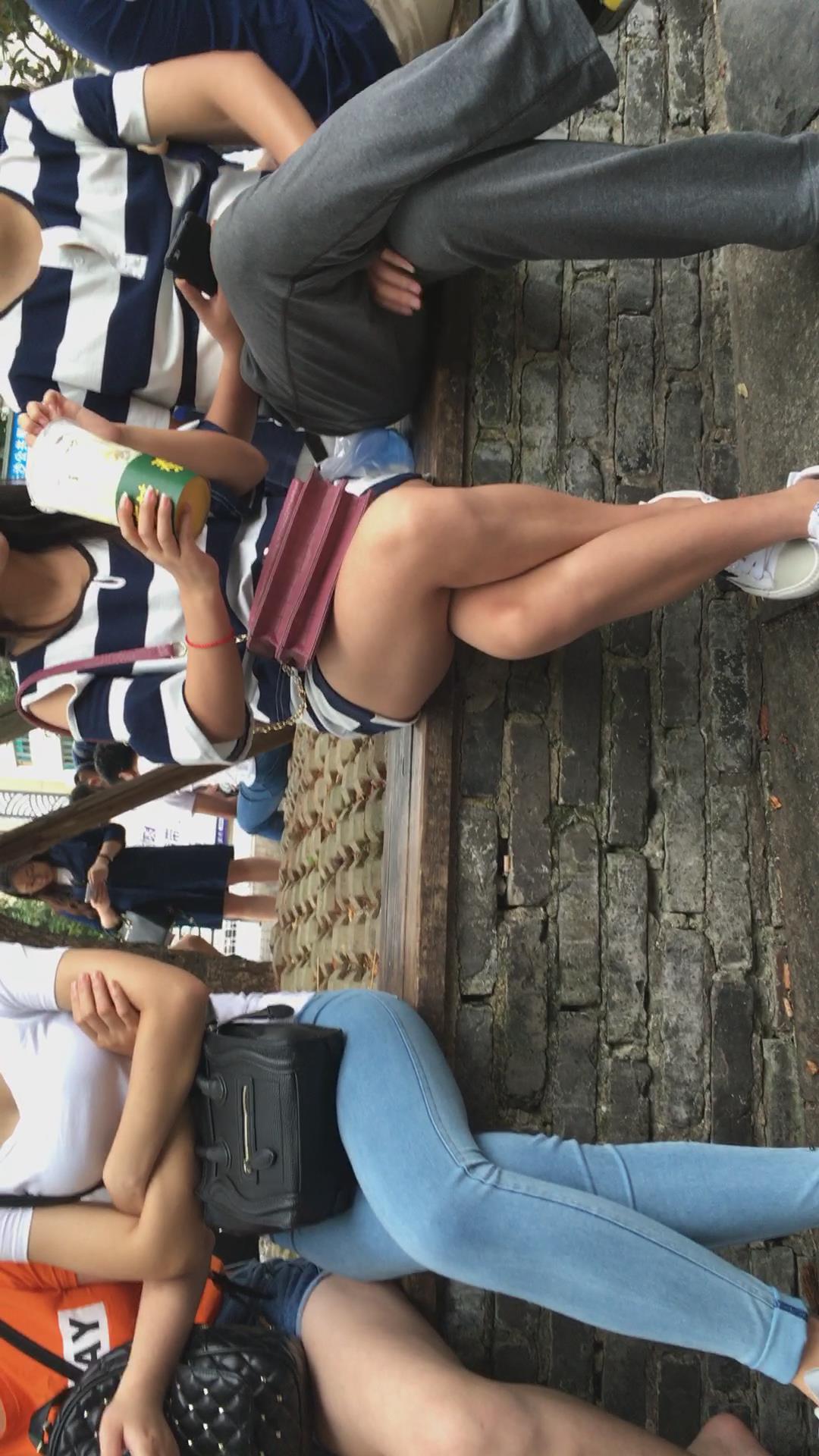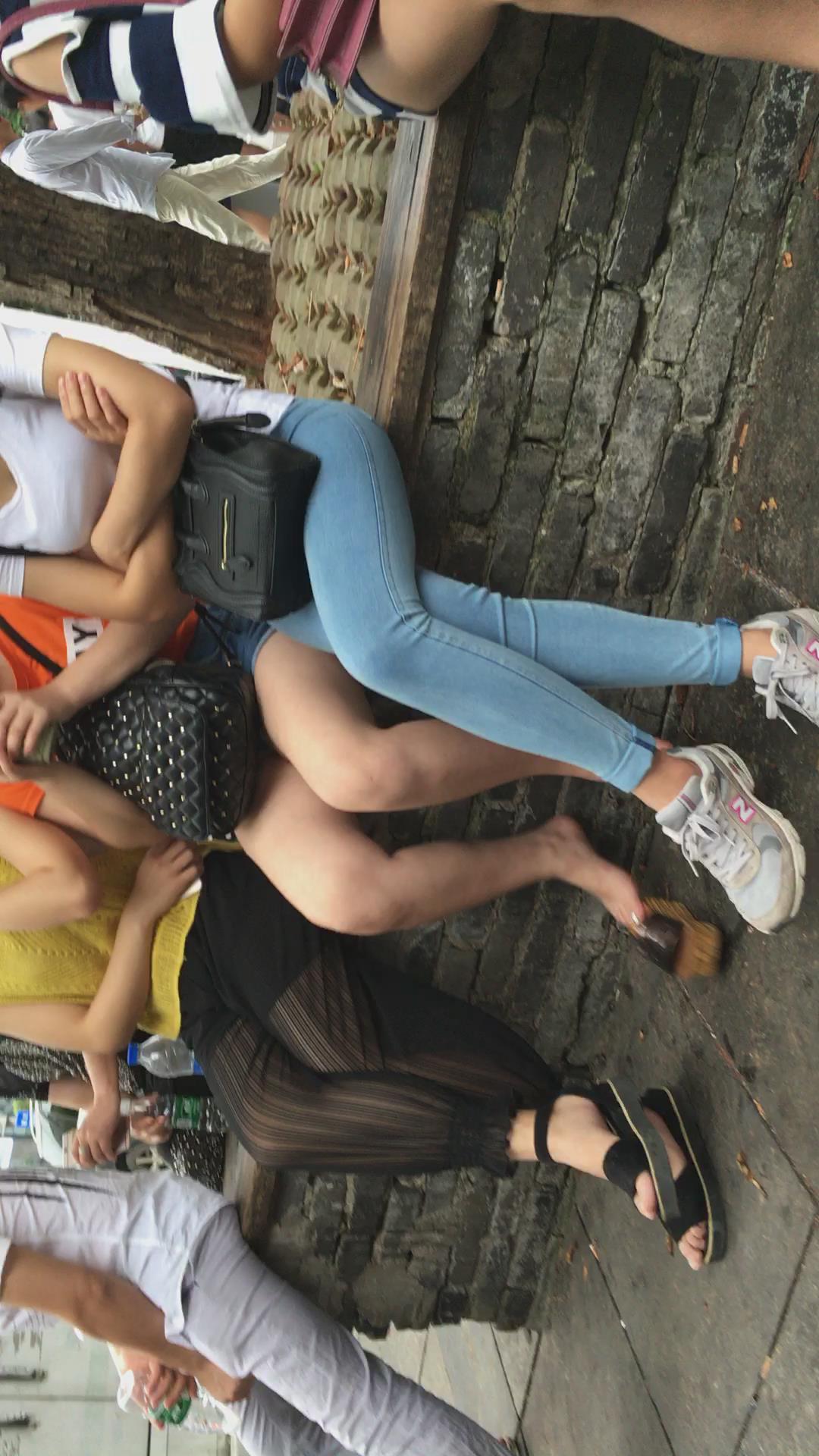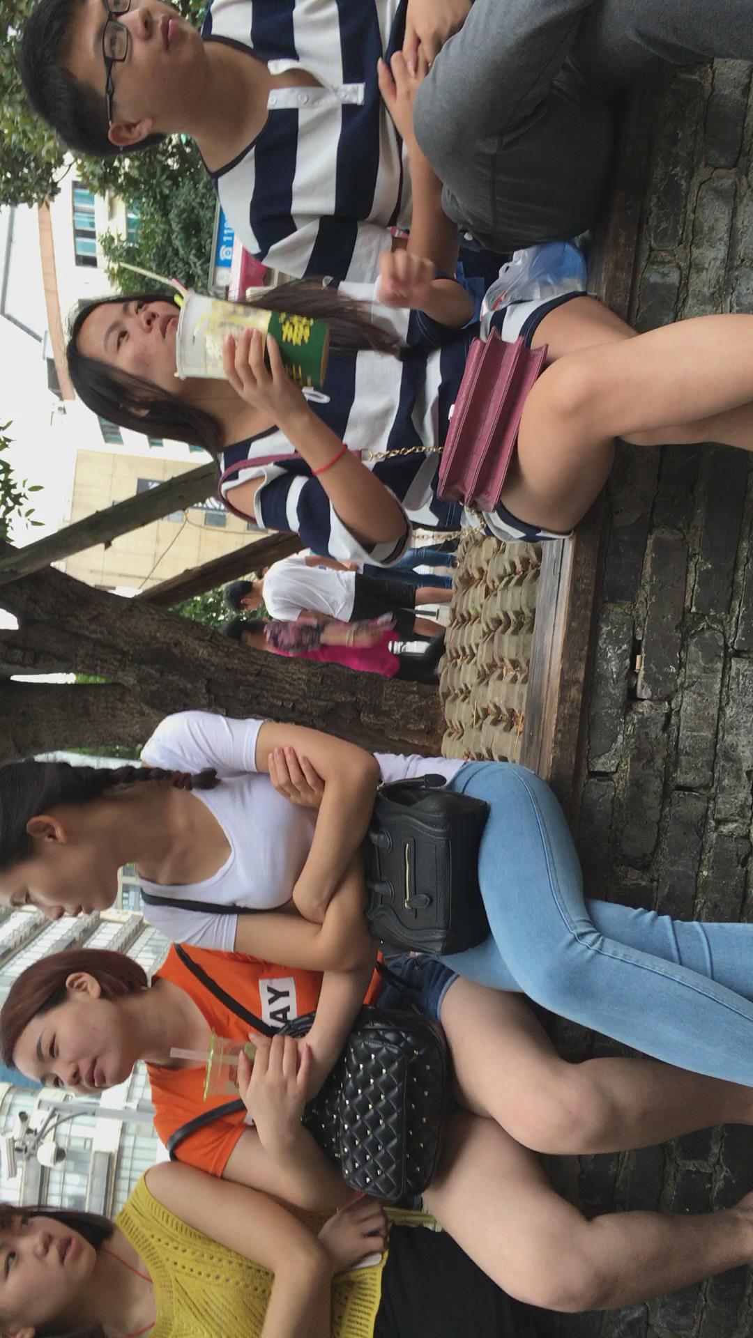 紧身蓝牛美女跟好友树下聊天 编号5525 |