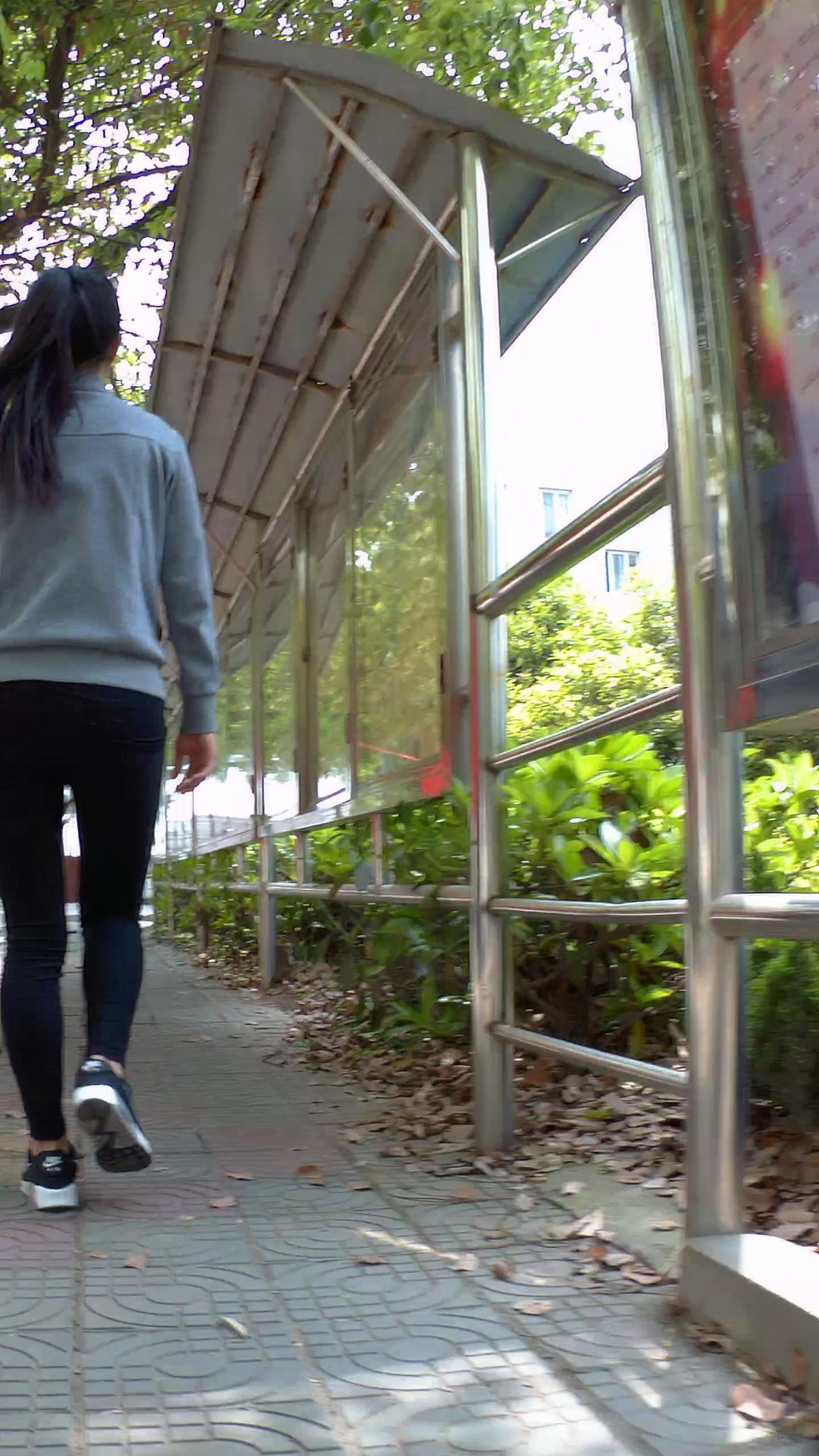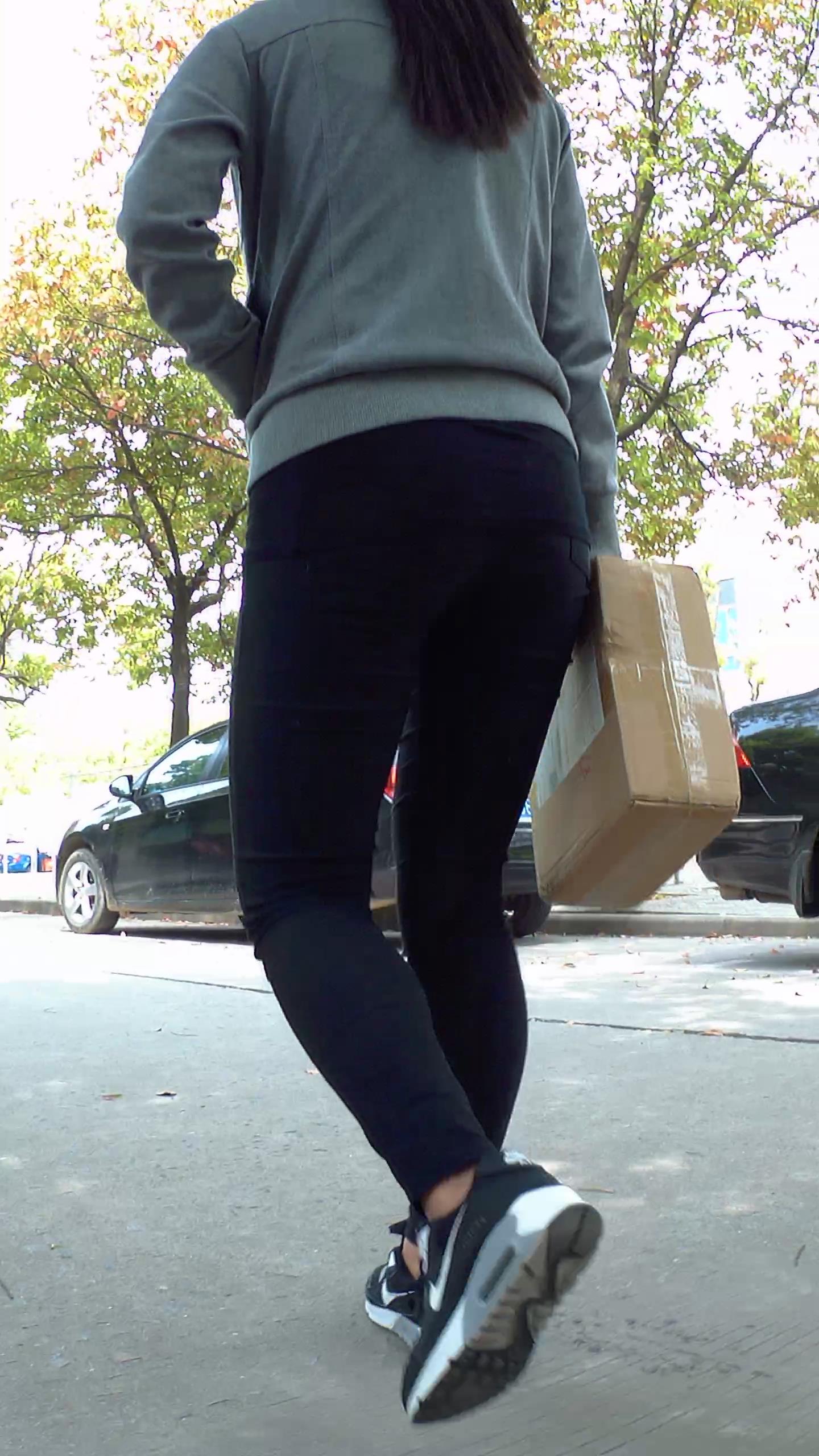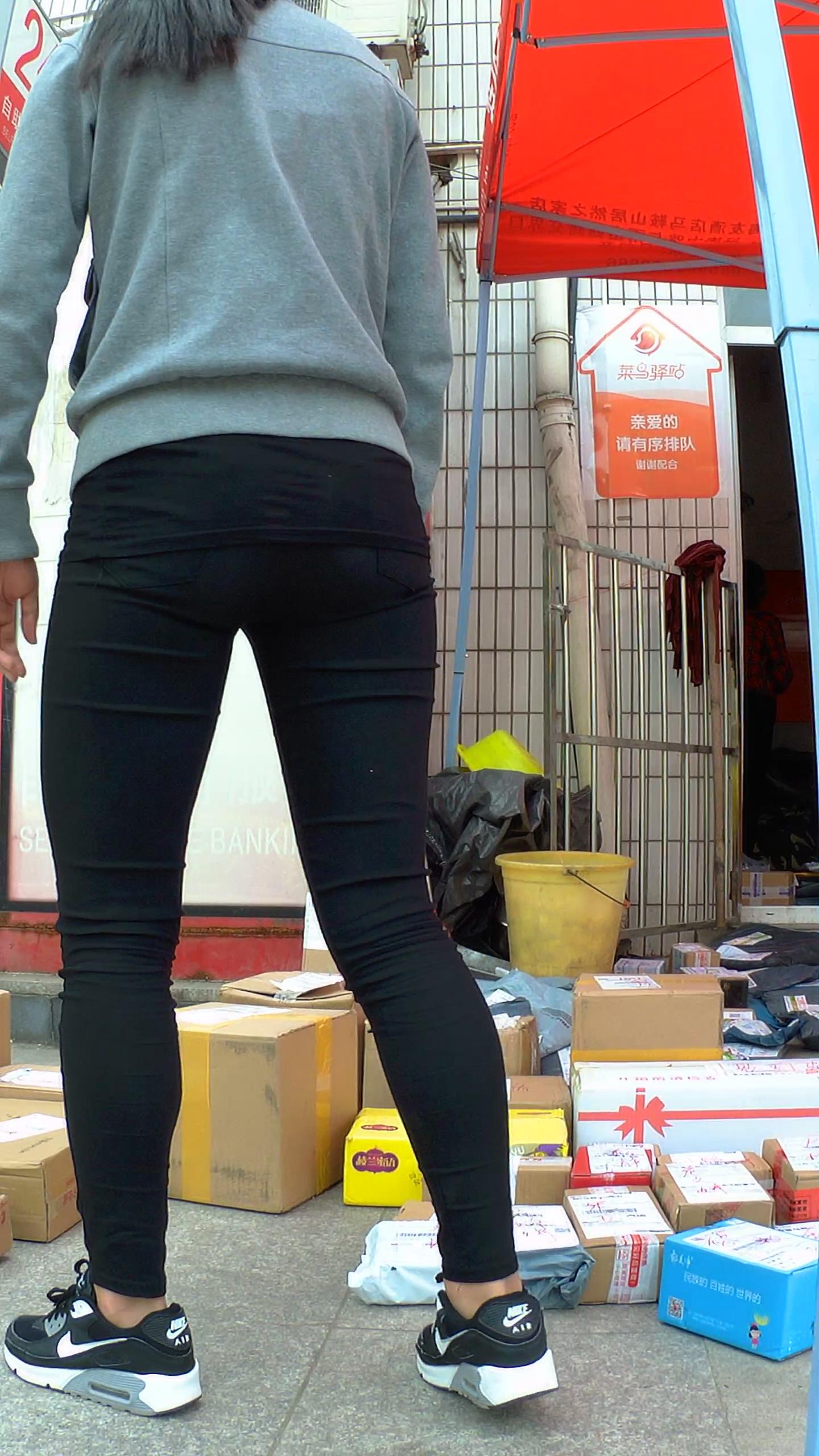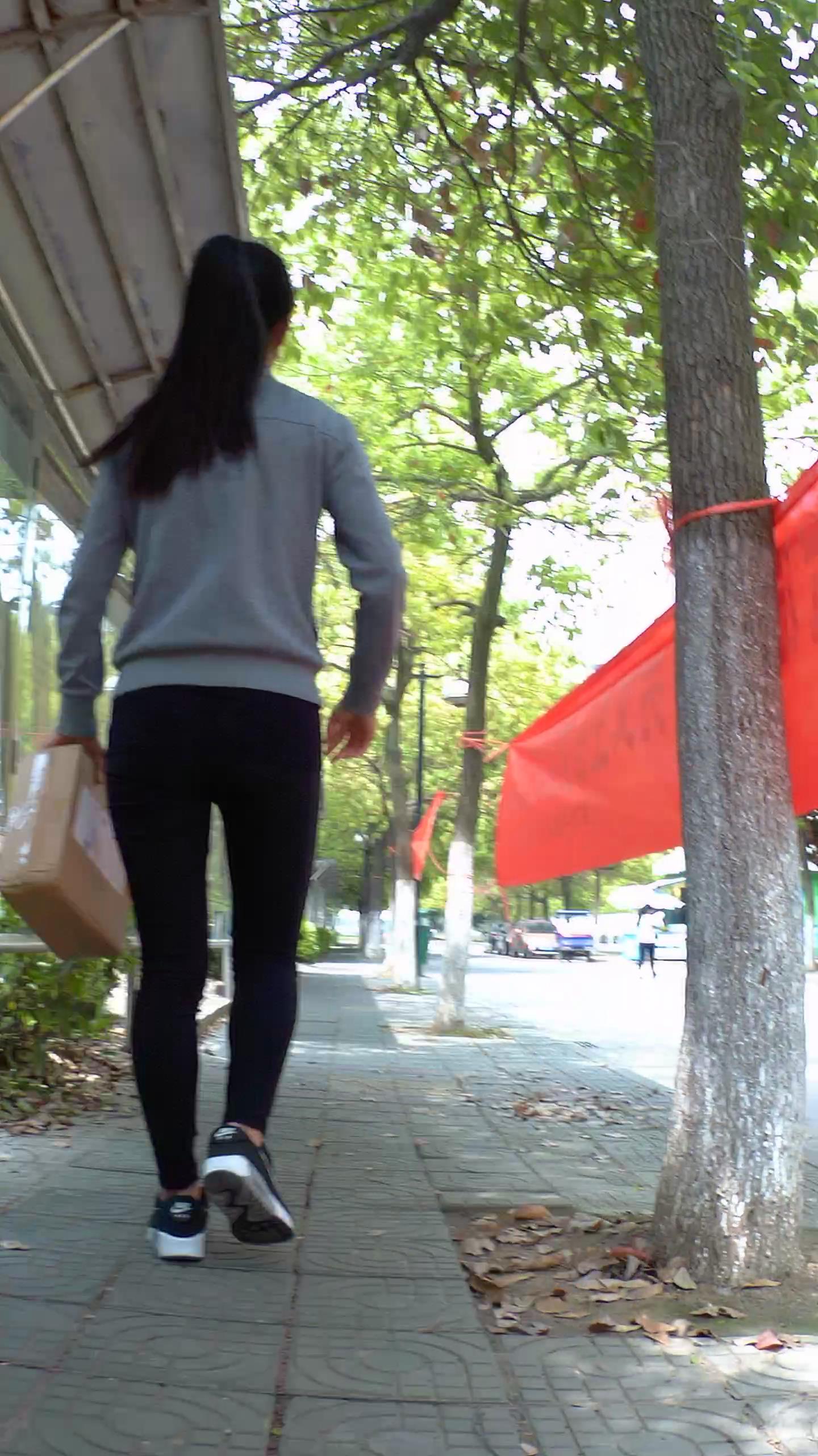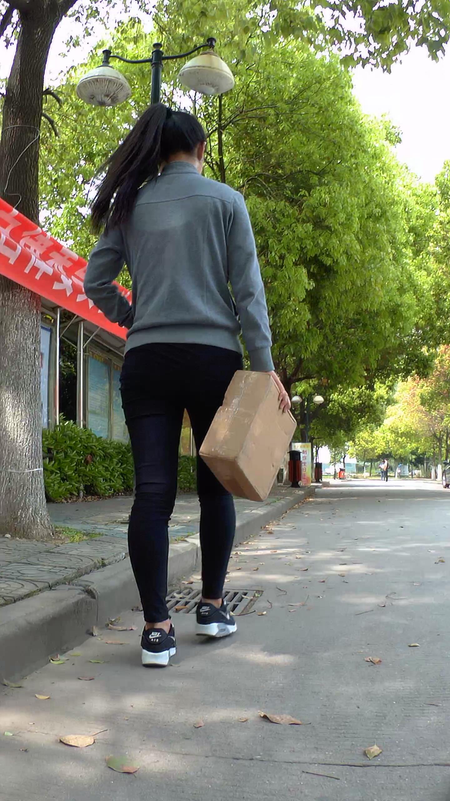 跟拍拿快递的黑色紧身裤大学美眉 编号5541