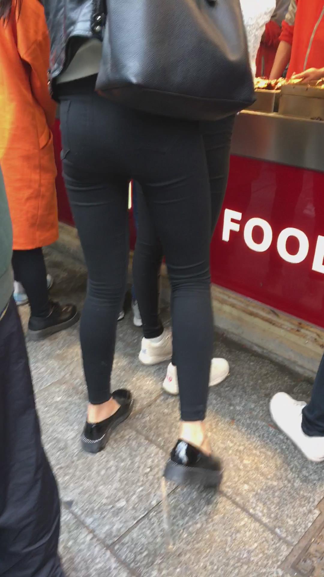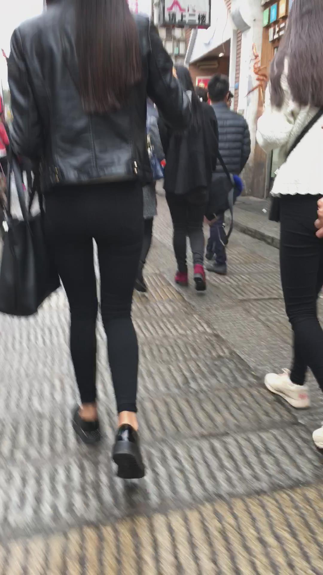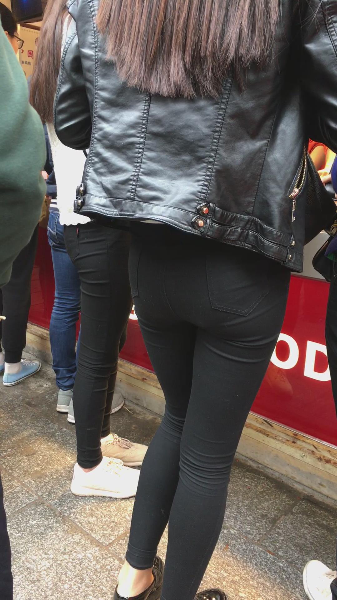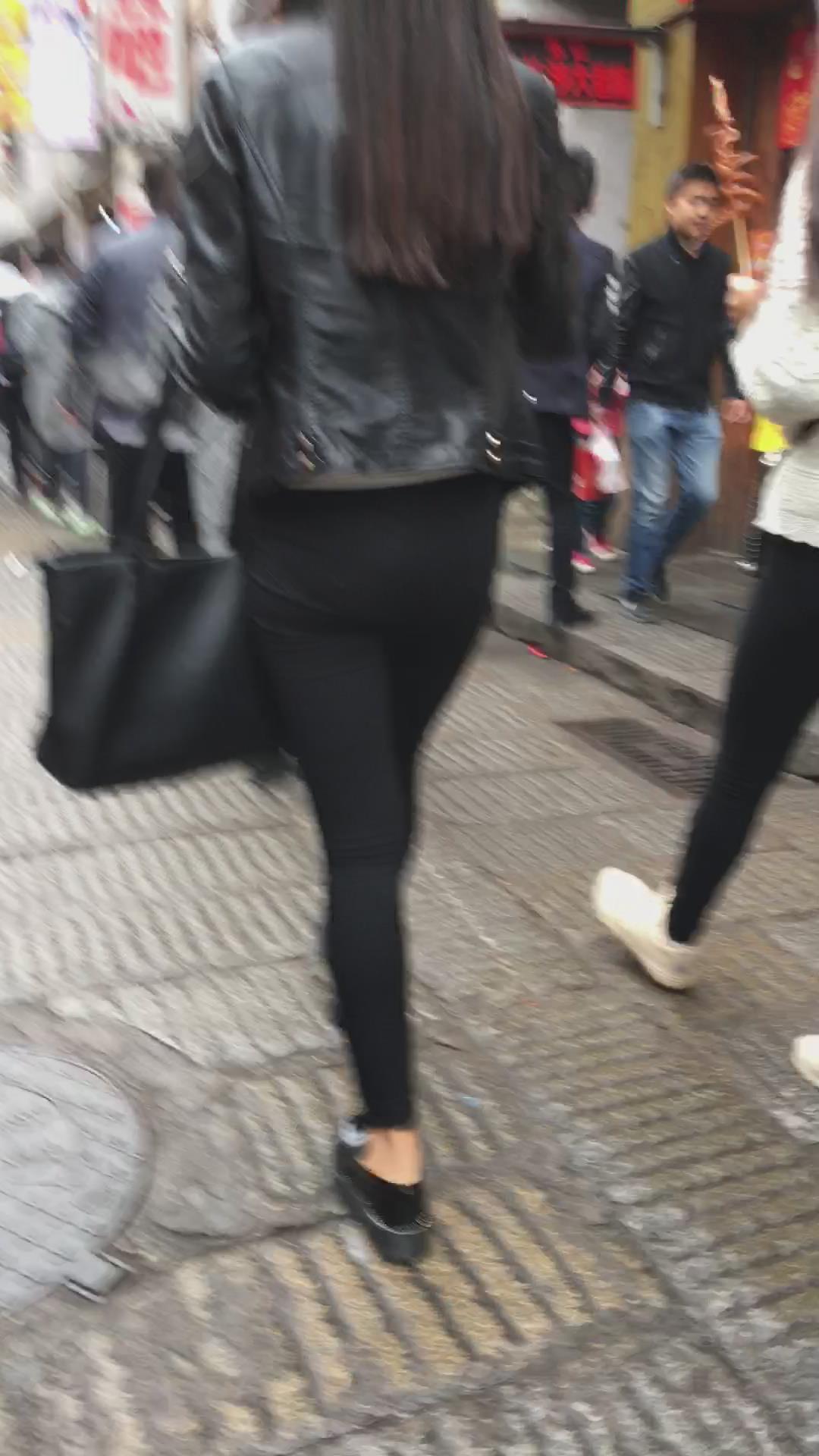 | 街拍皮衣紧俏美臀紧身黑裤美眉 编号5581 |