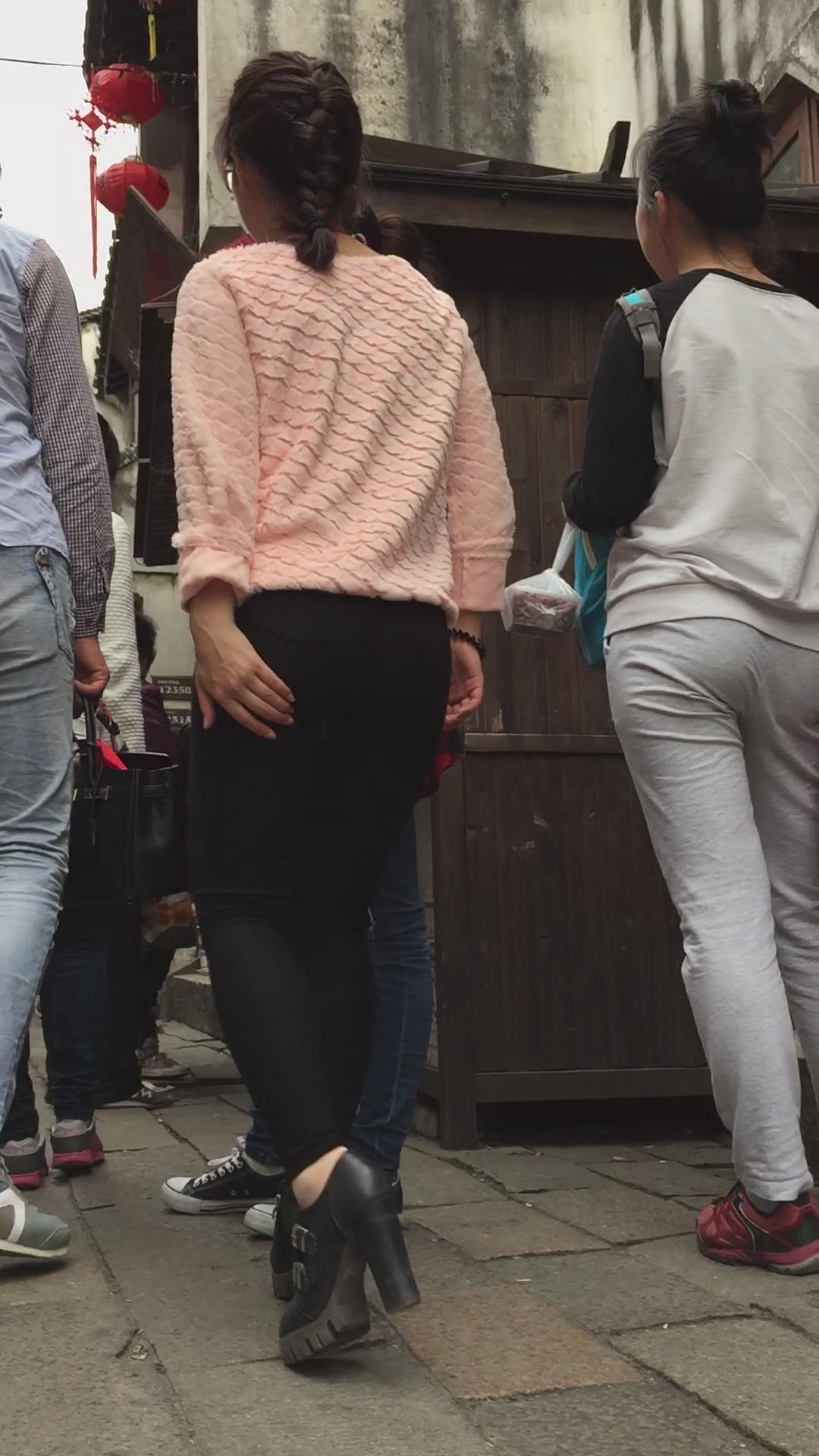 粉衣紧身黑裤眼镜妹,肥美的臀部 编号5674 |