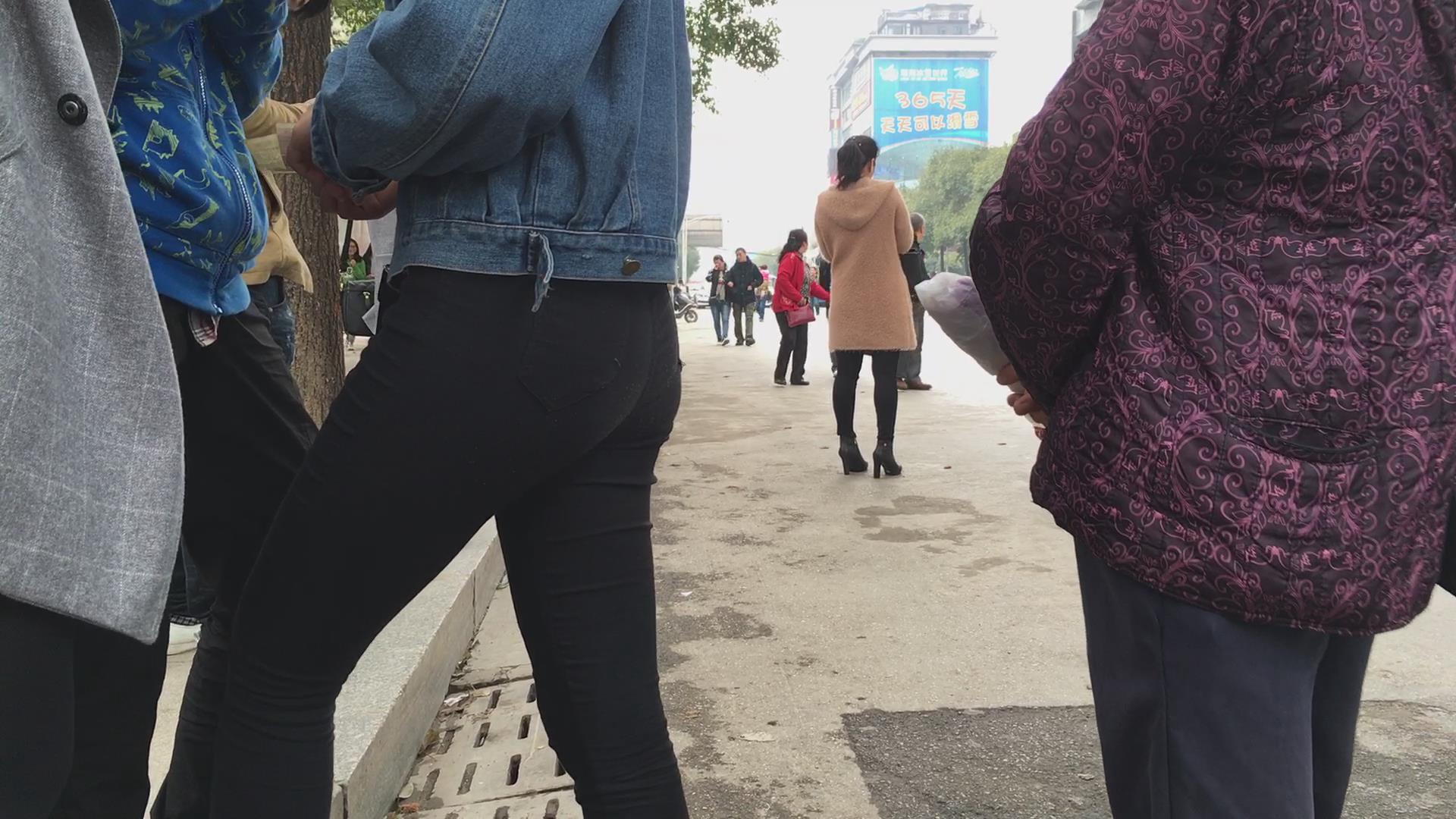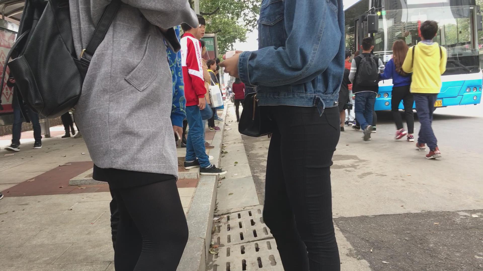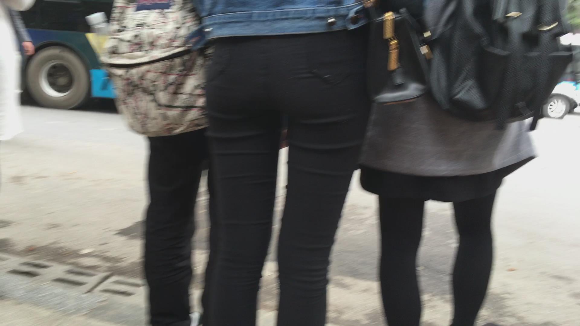 | 等车紧身黑裤三姐妹花 编号5714 |
