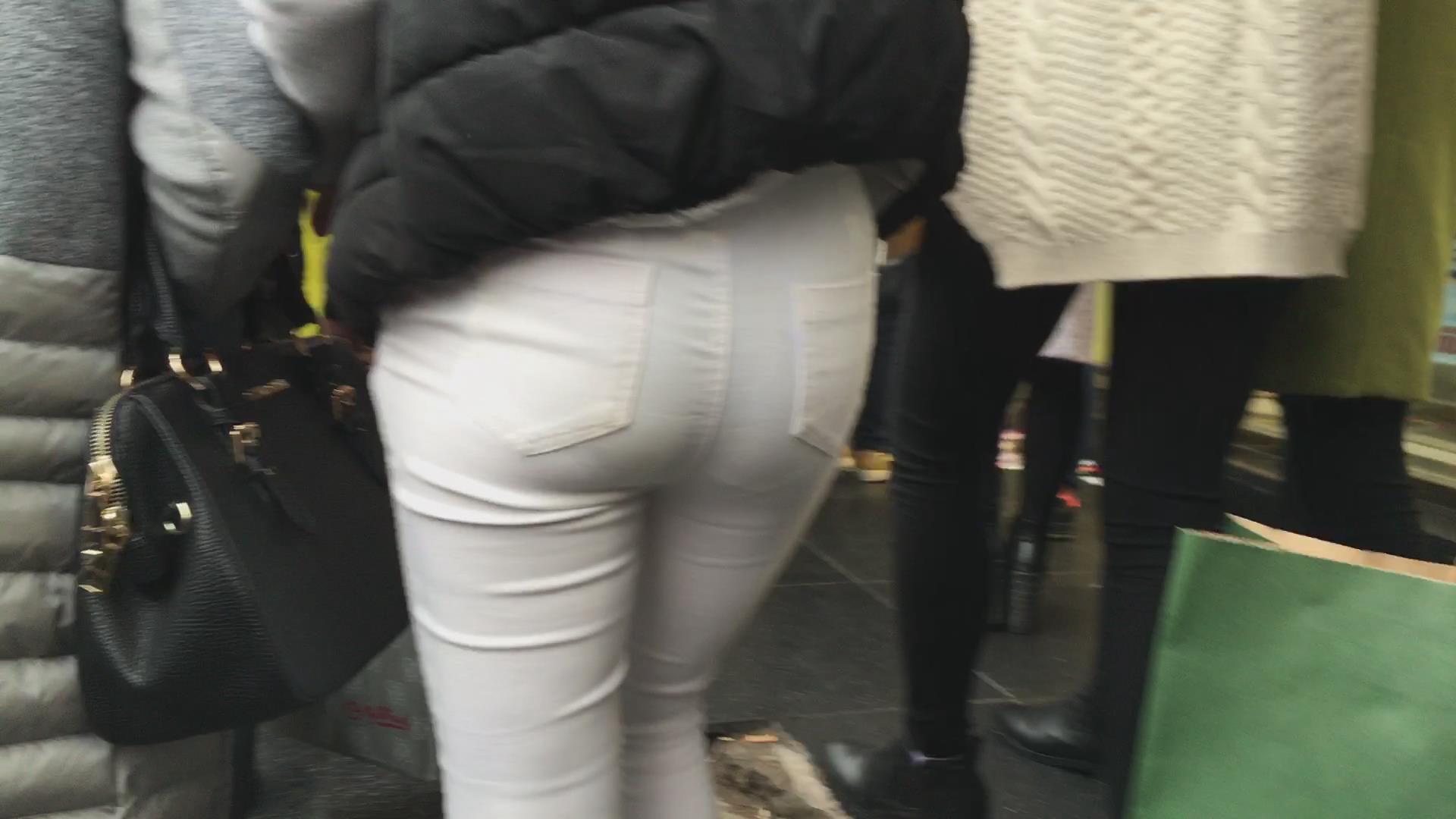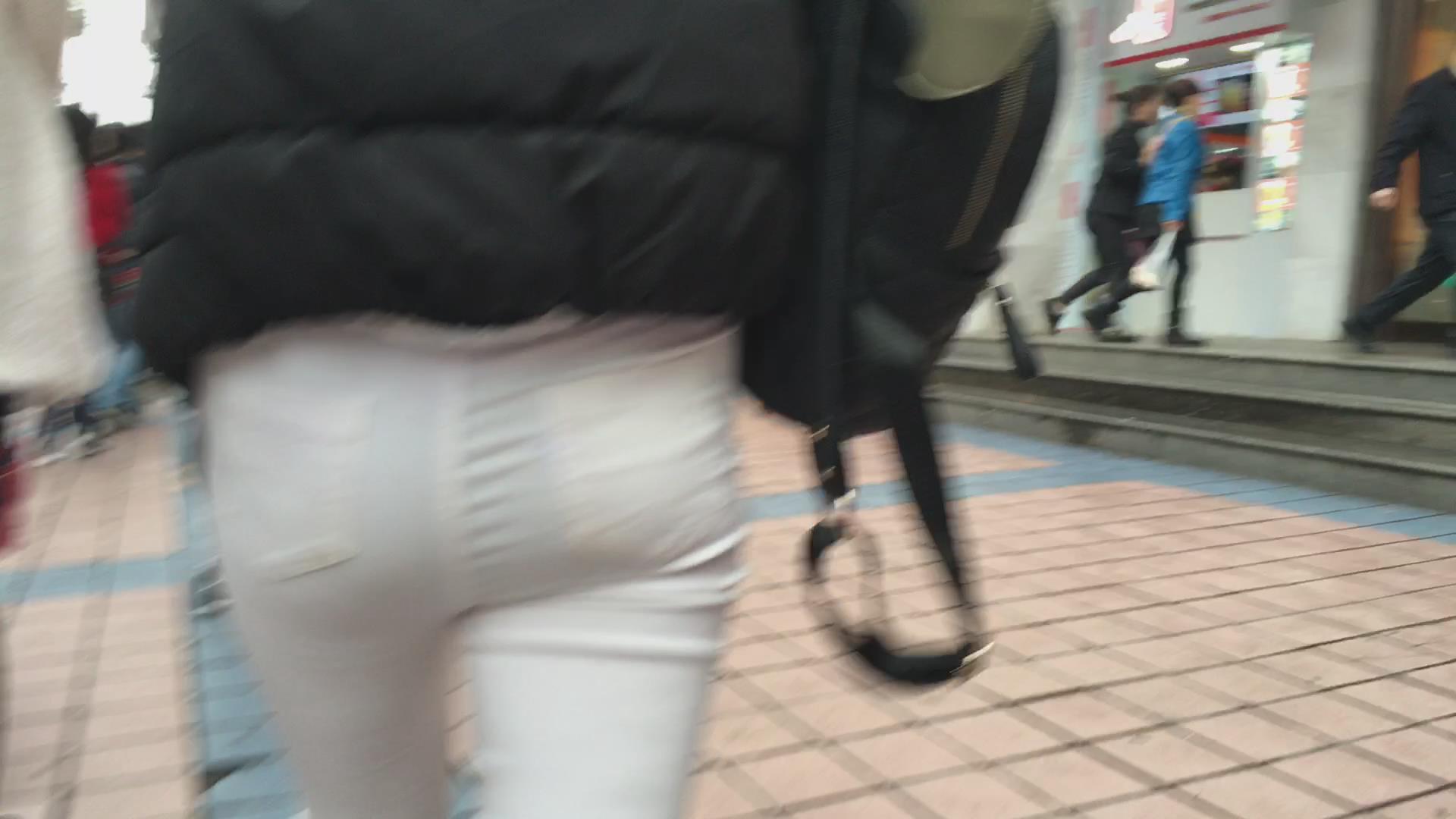 街拍冬日街头紧身丰臀白裤美女 编号5761 |