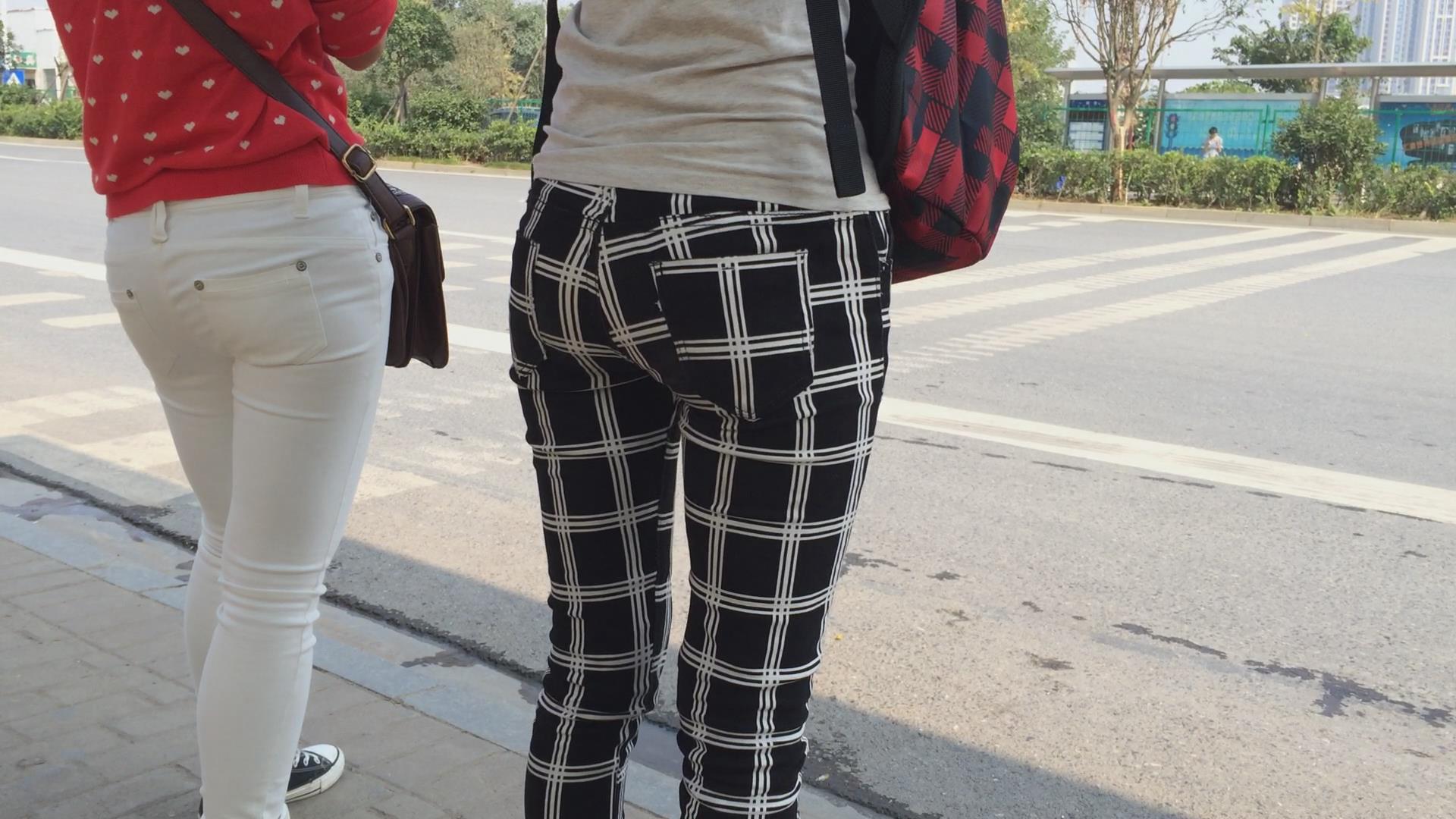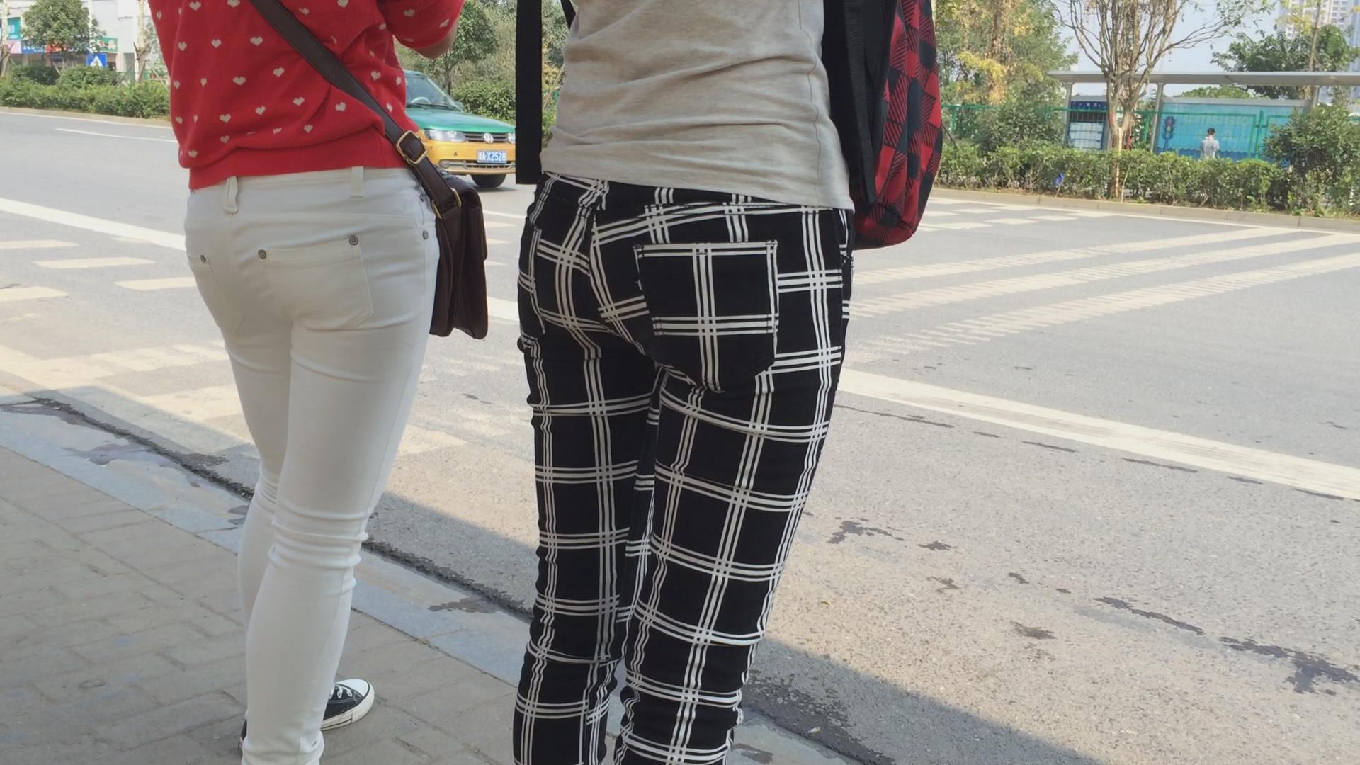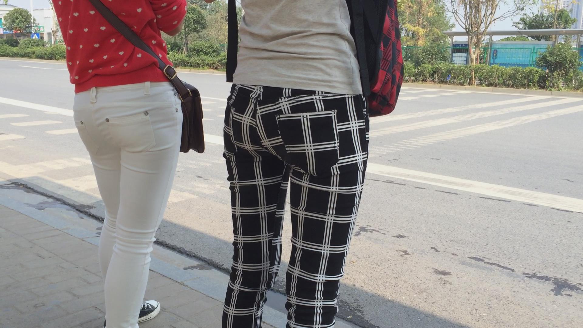 紧身翘臀白裤姐妹花等车,不相上下的美 编号5774 |