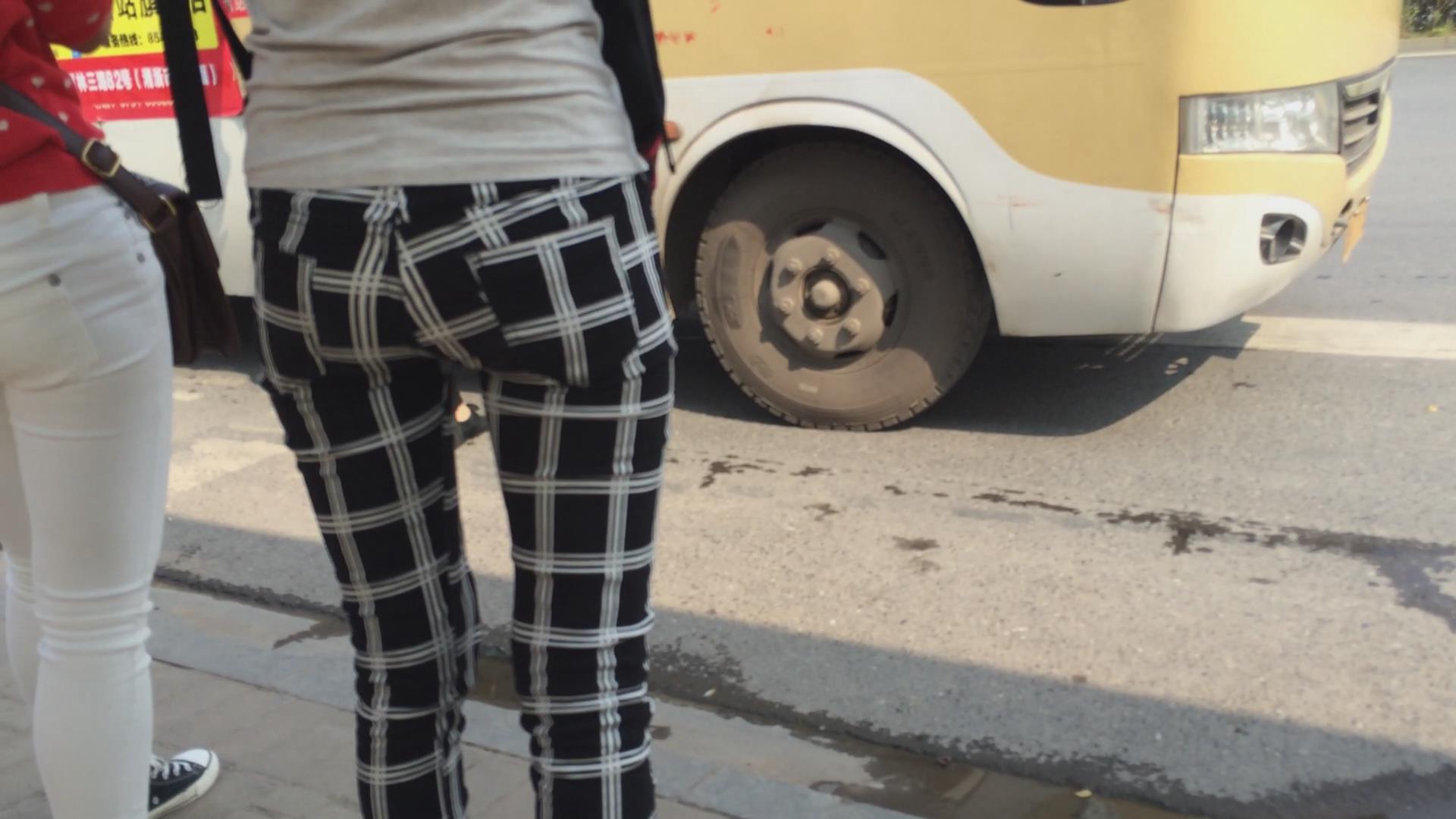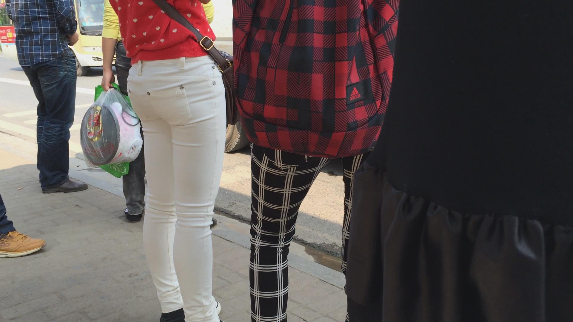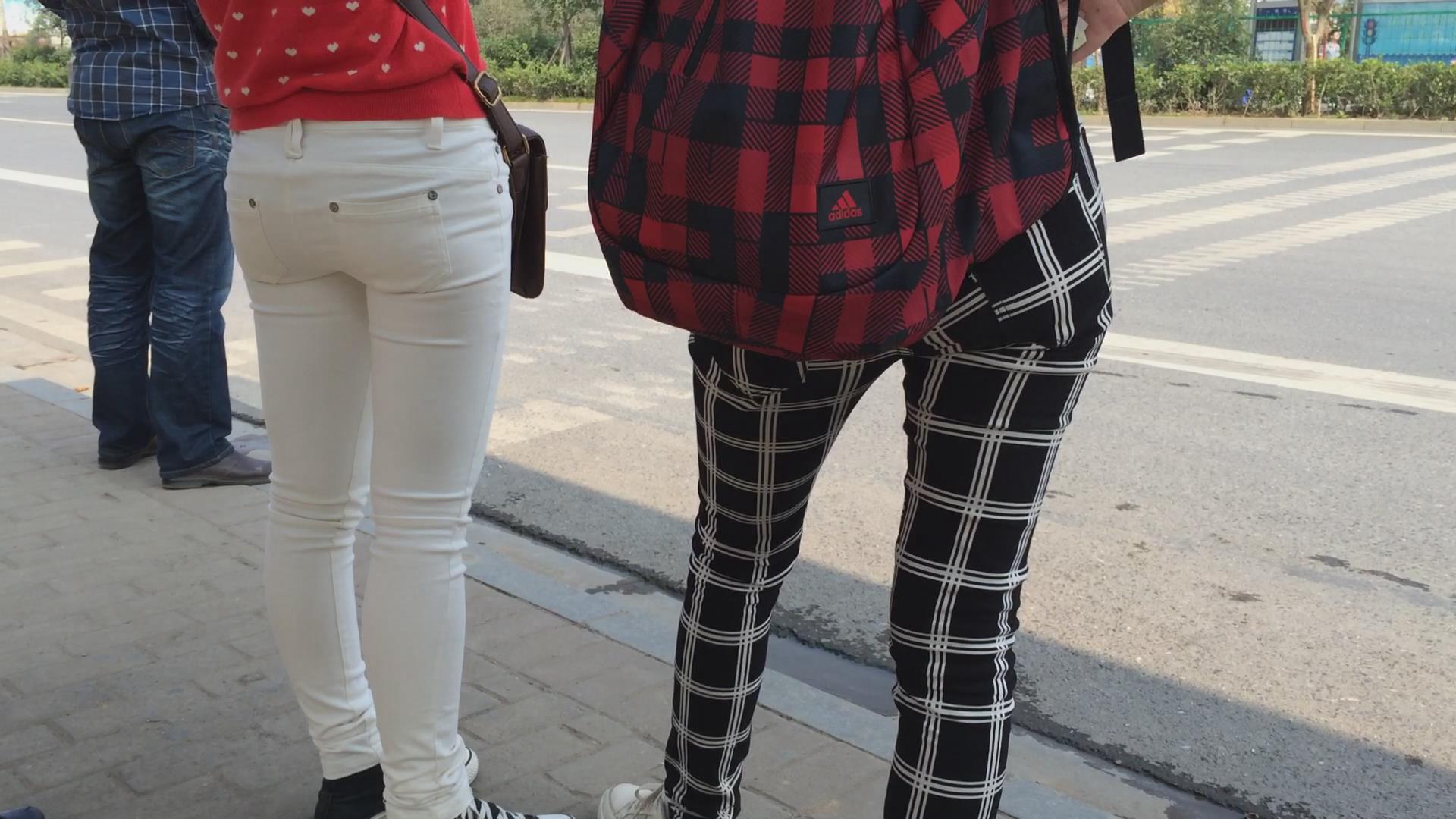 紧身翘臀白裤姐妹花等车,不相上下的美 编号5774 |