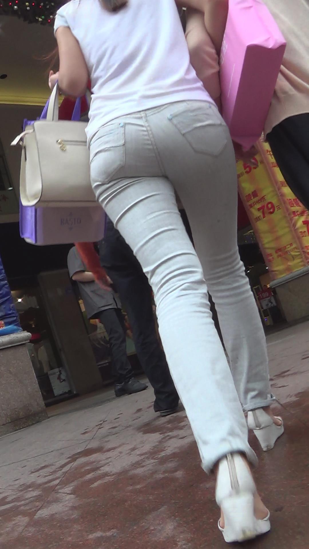 | 街拍紧身牛仔裤白T恤高挑美女姐姐 编号5791 |