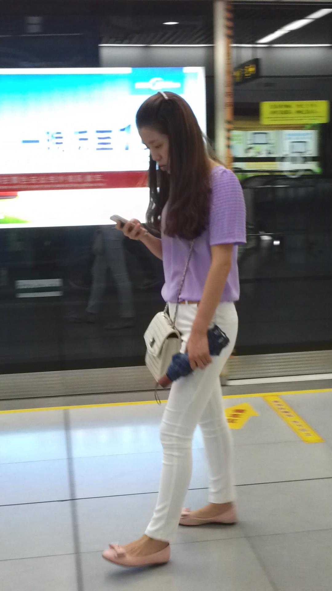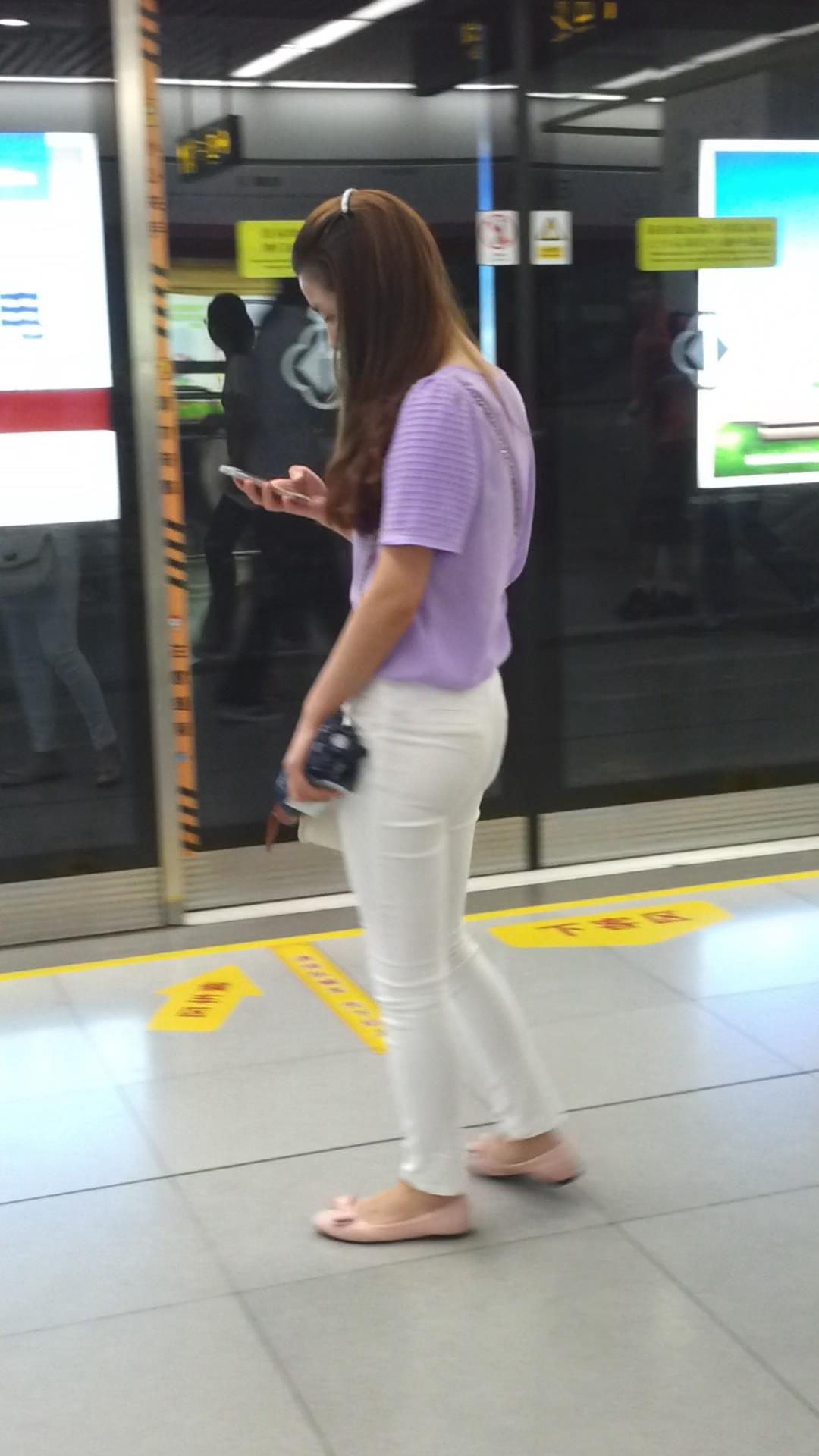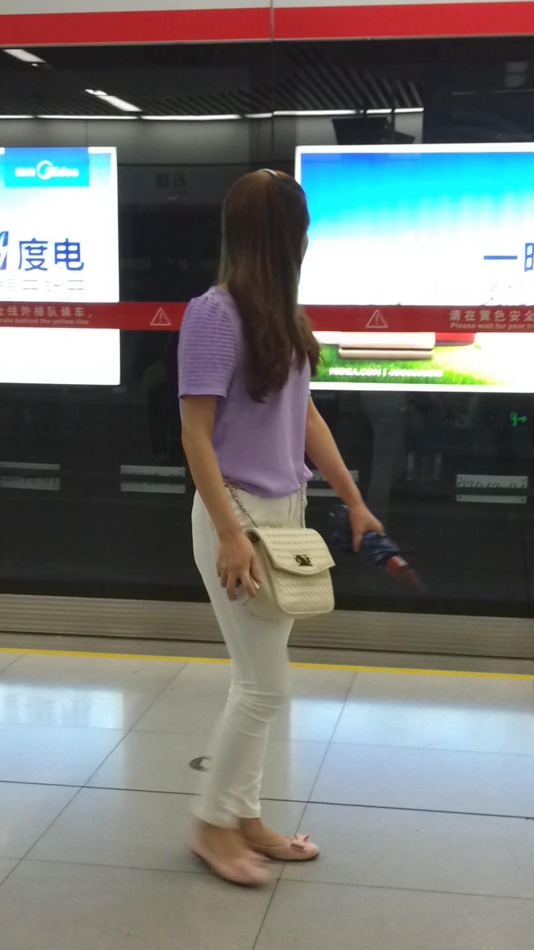 | 街拍等地铁的紧身白裤平底鞋美眉 编号5796 |