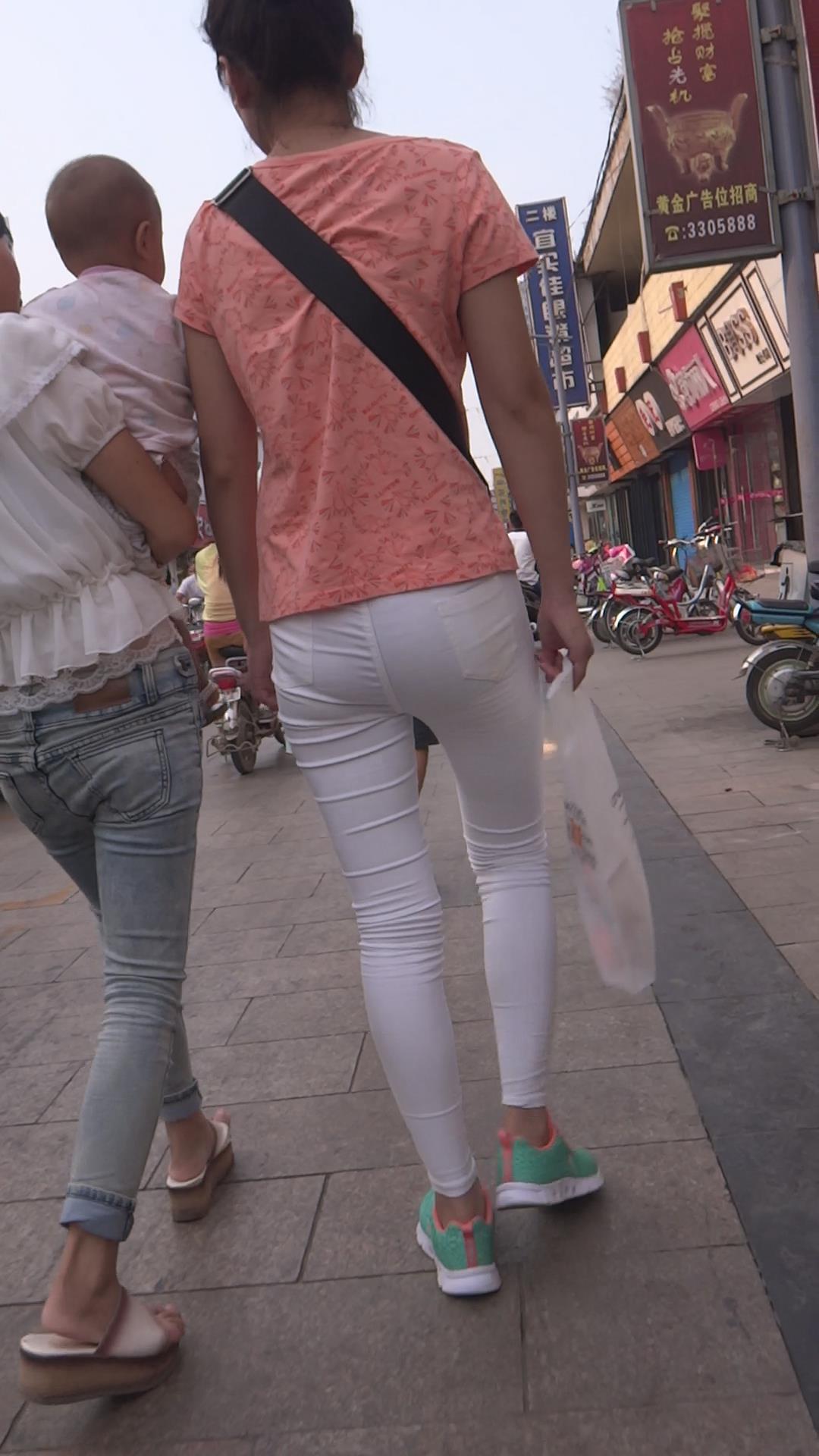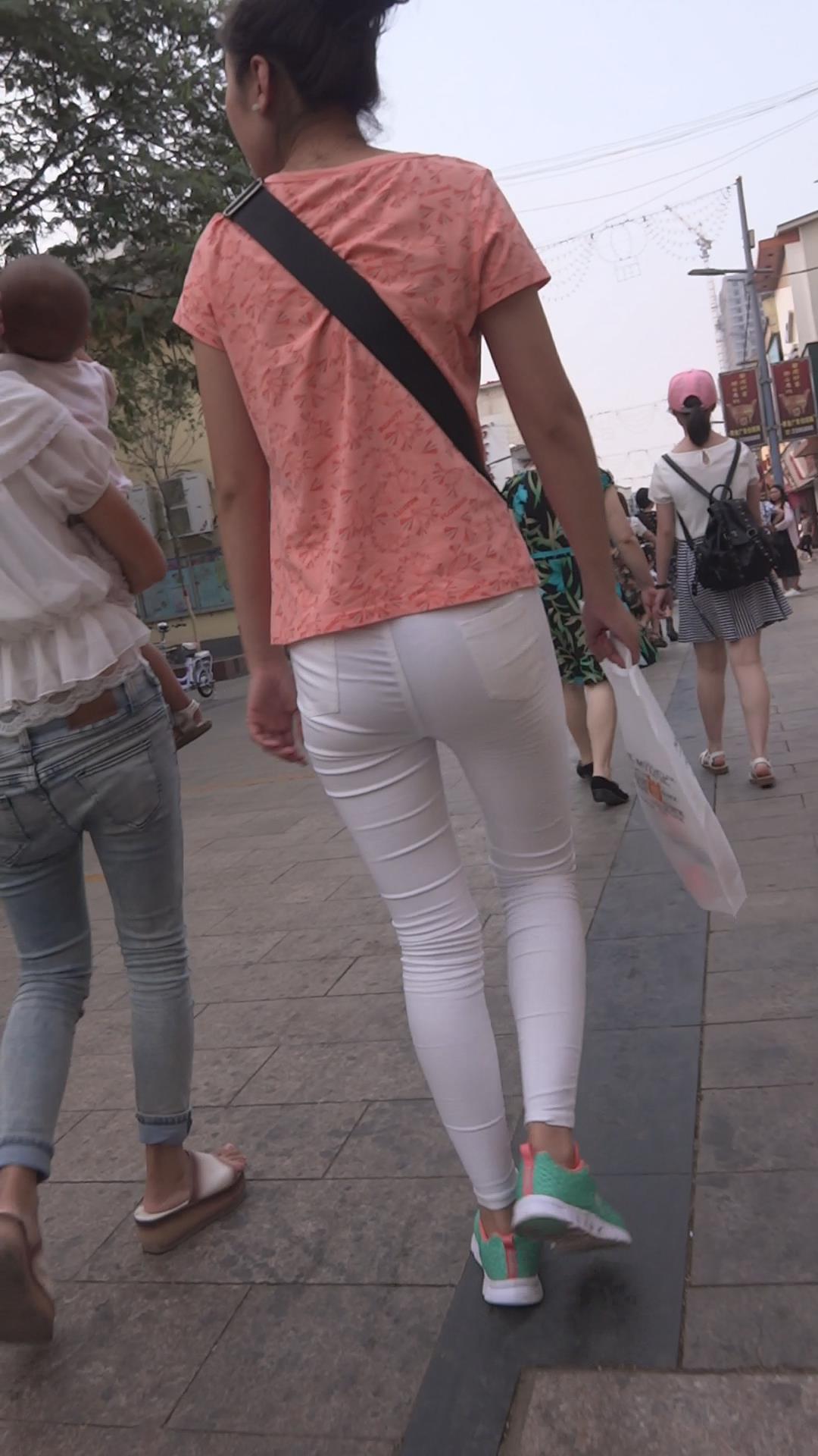 紧身白裤娇小身材丸子头美女 编号5861 |