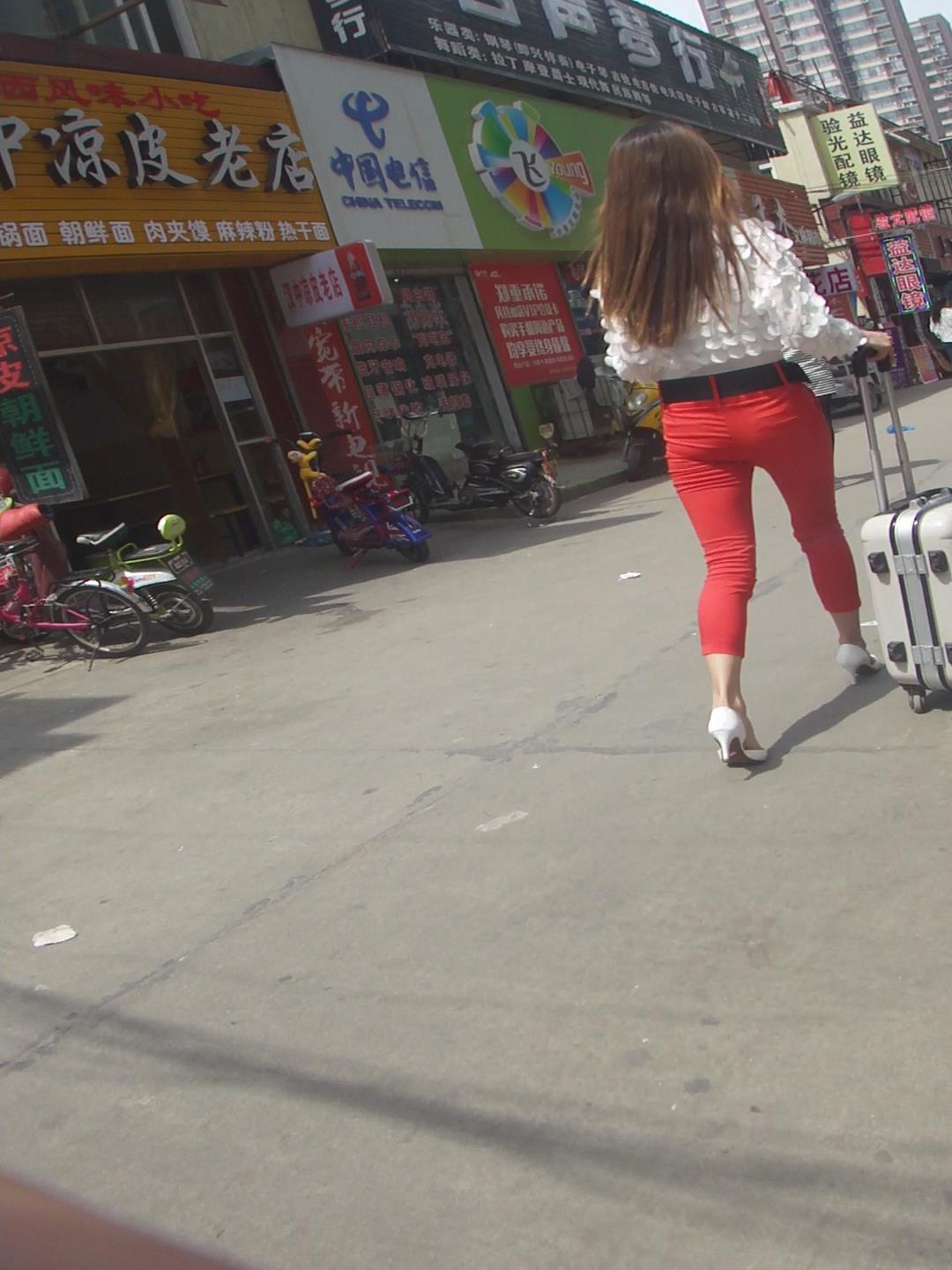 | 街拍紧身红裤高跟鞋美女 编号5873 |