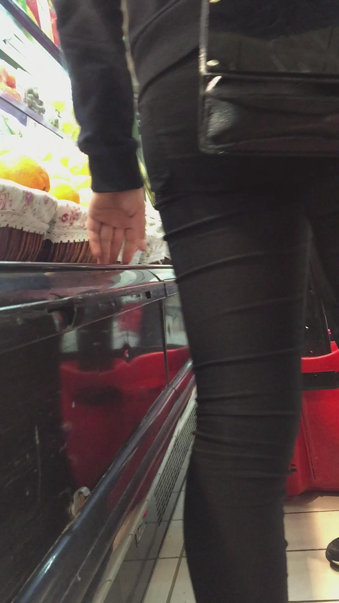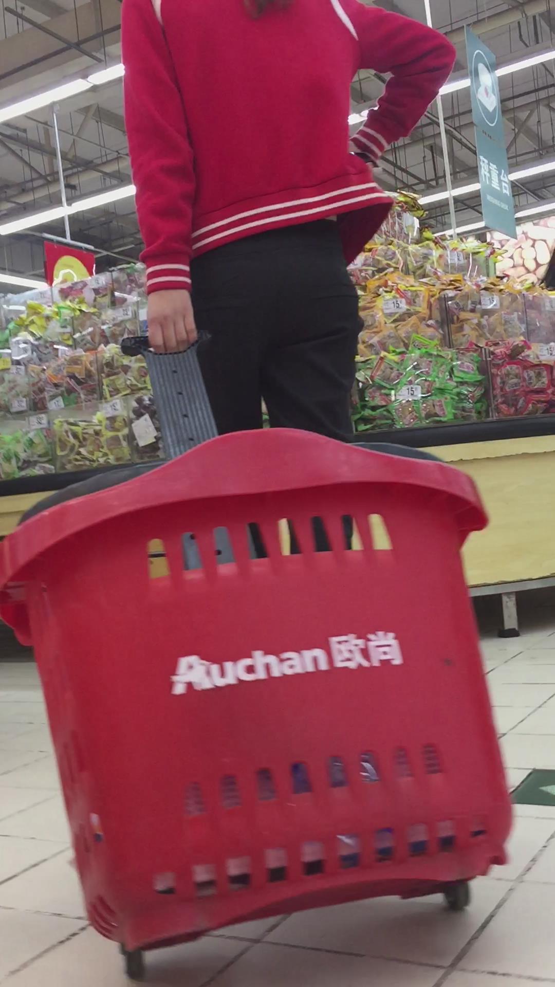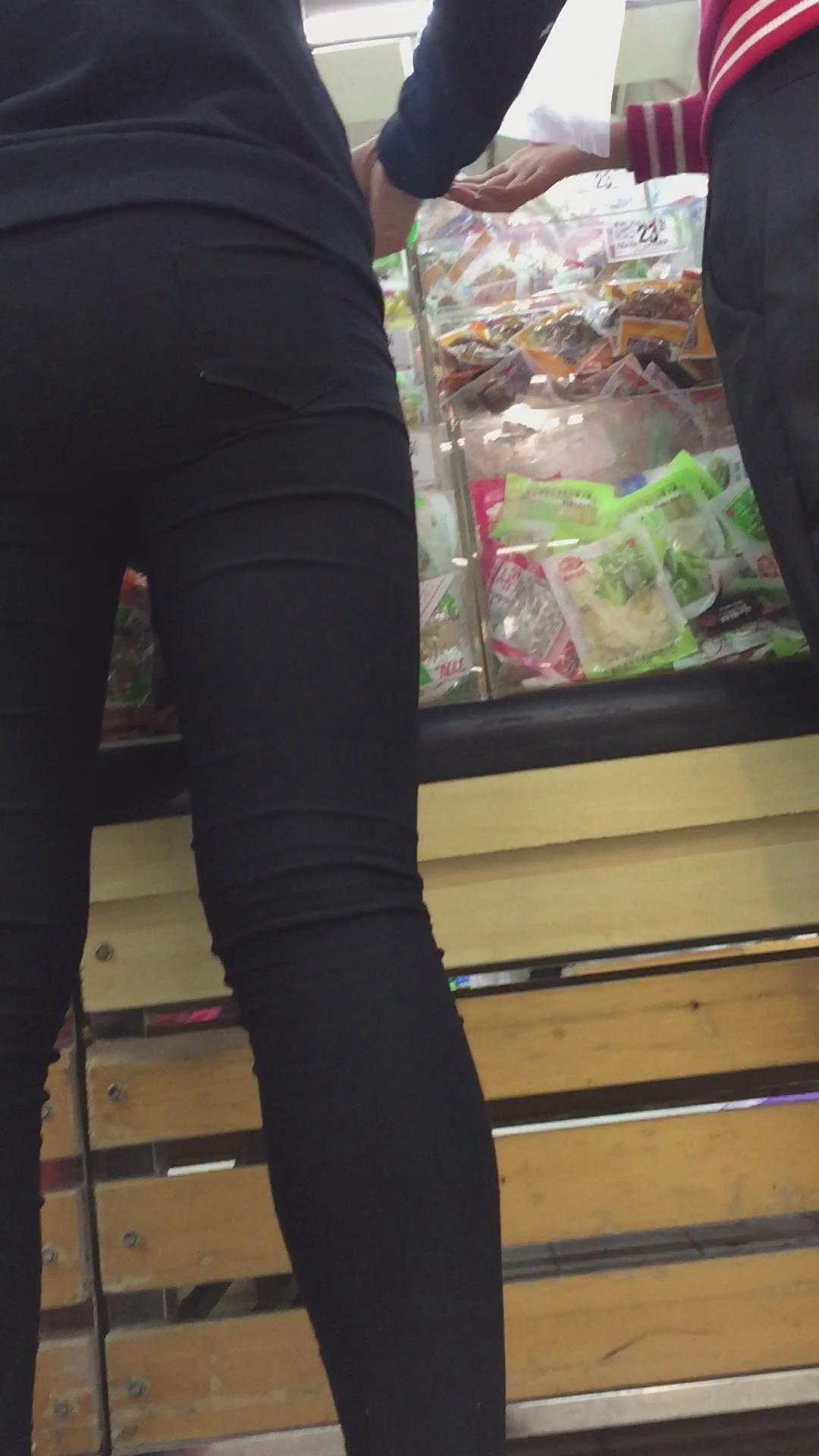 | 黑色紧身裤肥妹跟密友逛超市。 编号5874 |