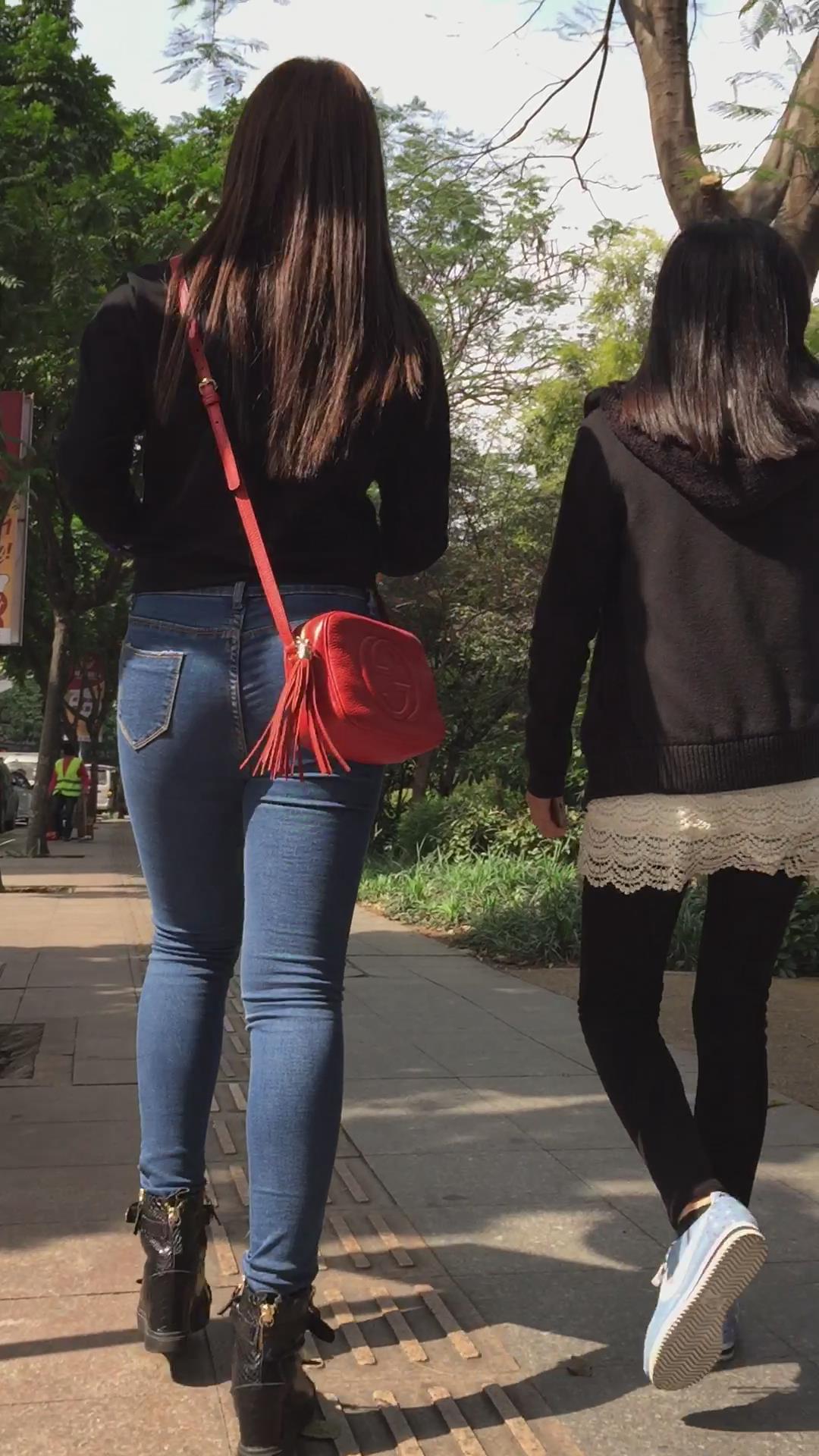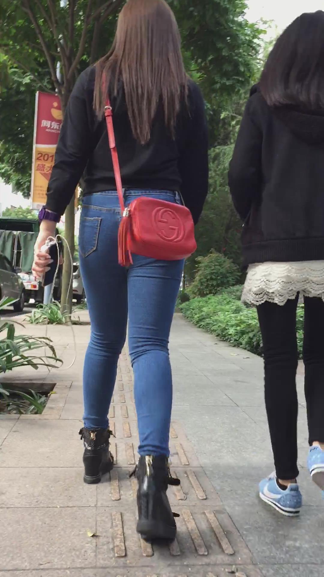 | 街拍紧身蓝色牛仔裤美眉 编号5879 |