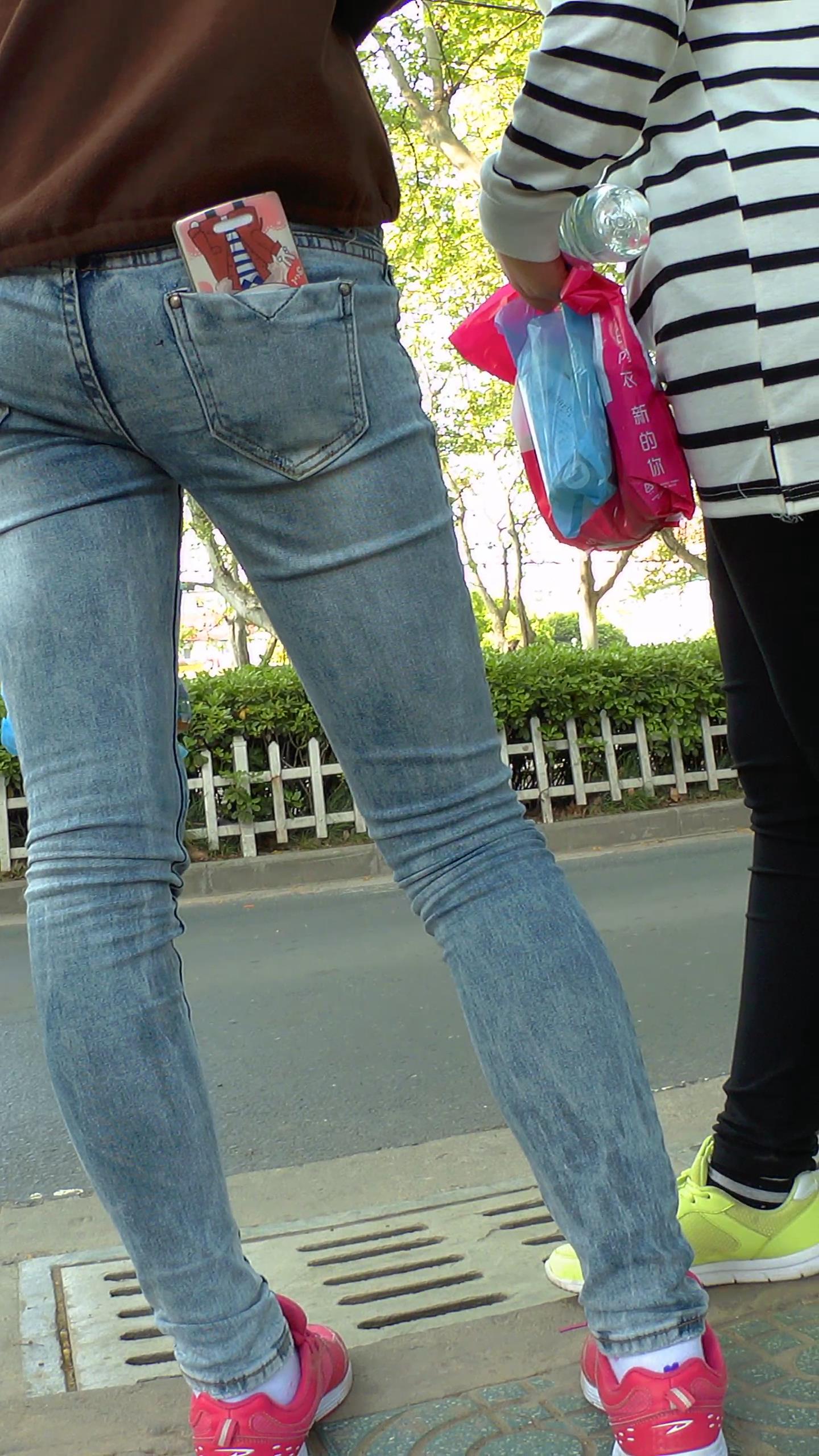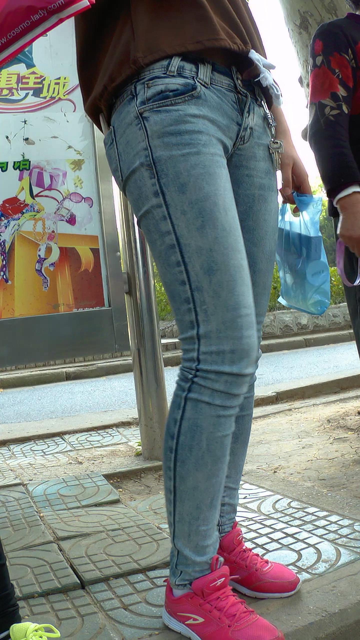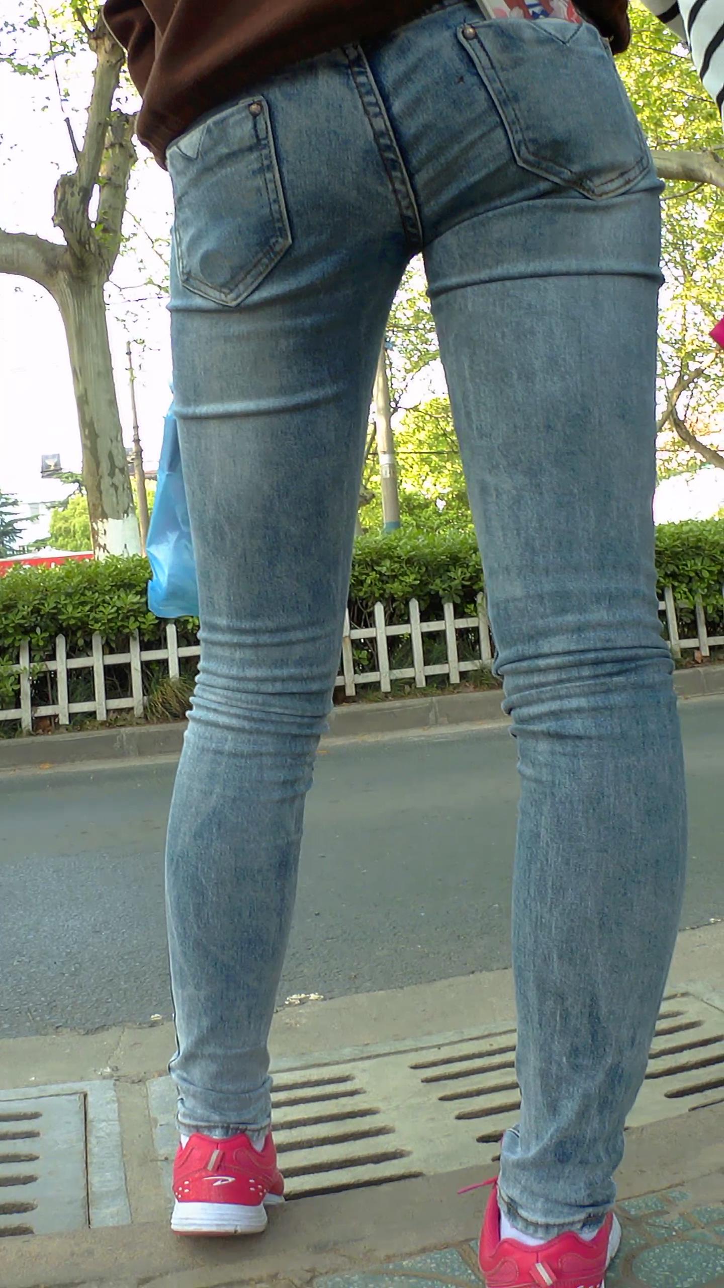 | 路边等公交的紧身蓝牛学生妹 编号5895 |