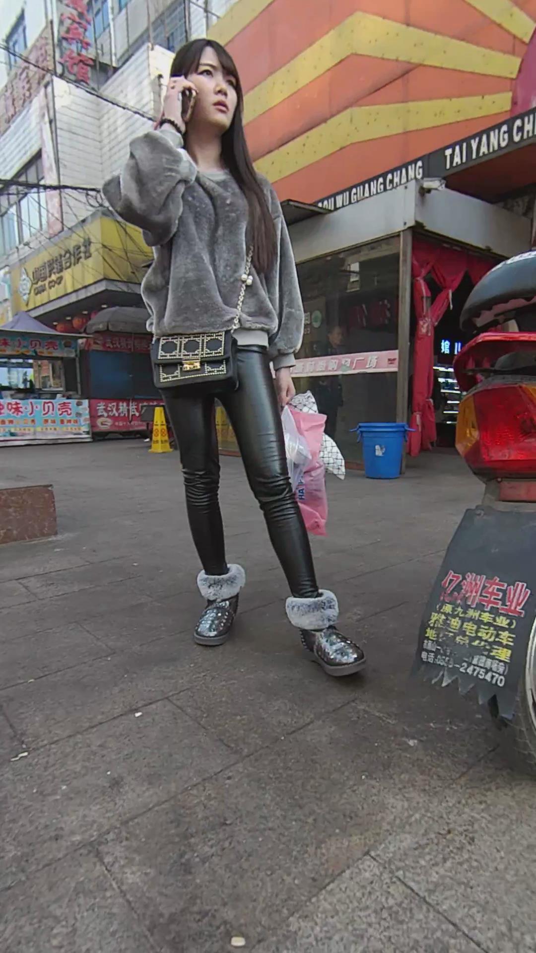 | 街拍黑色皮裤甜美小美女 编号5909 |