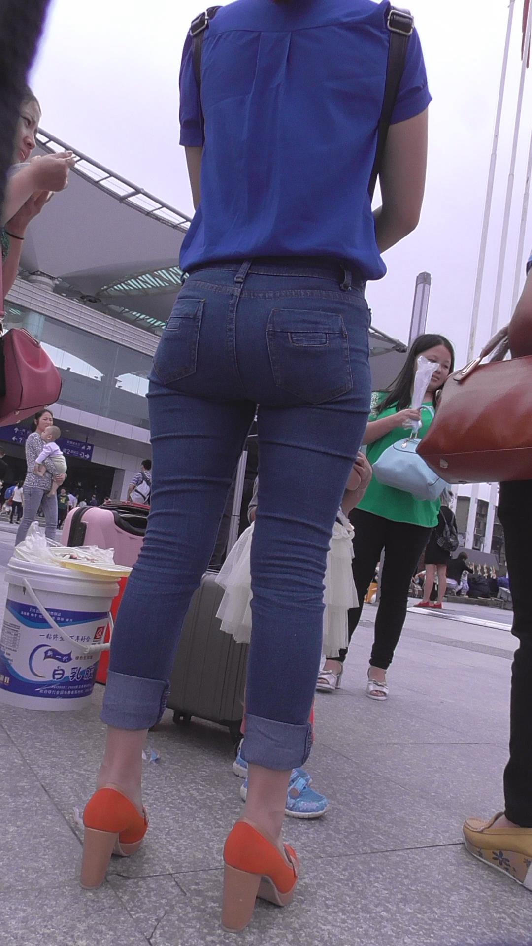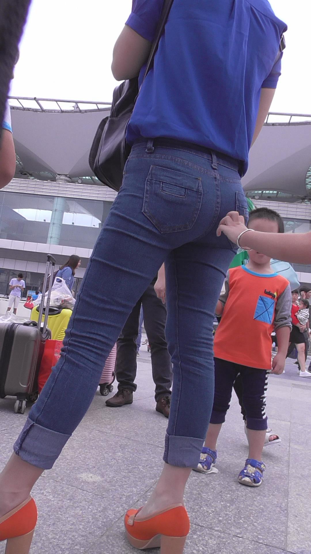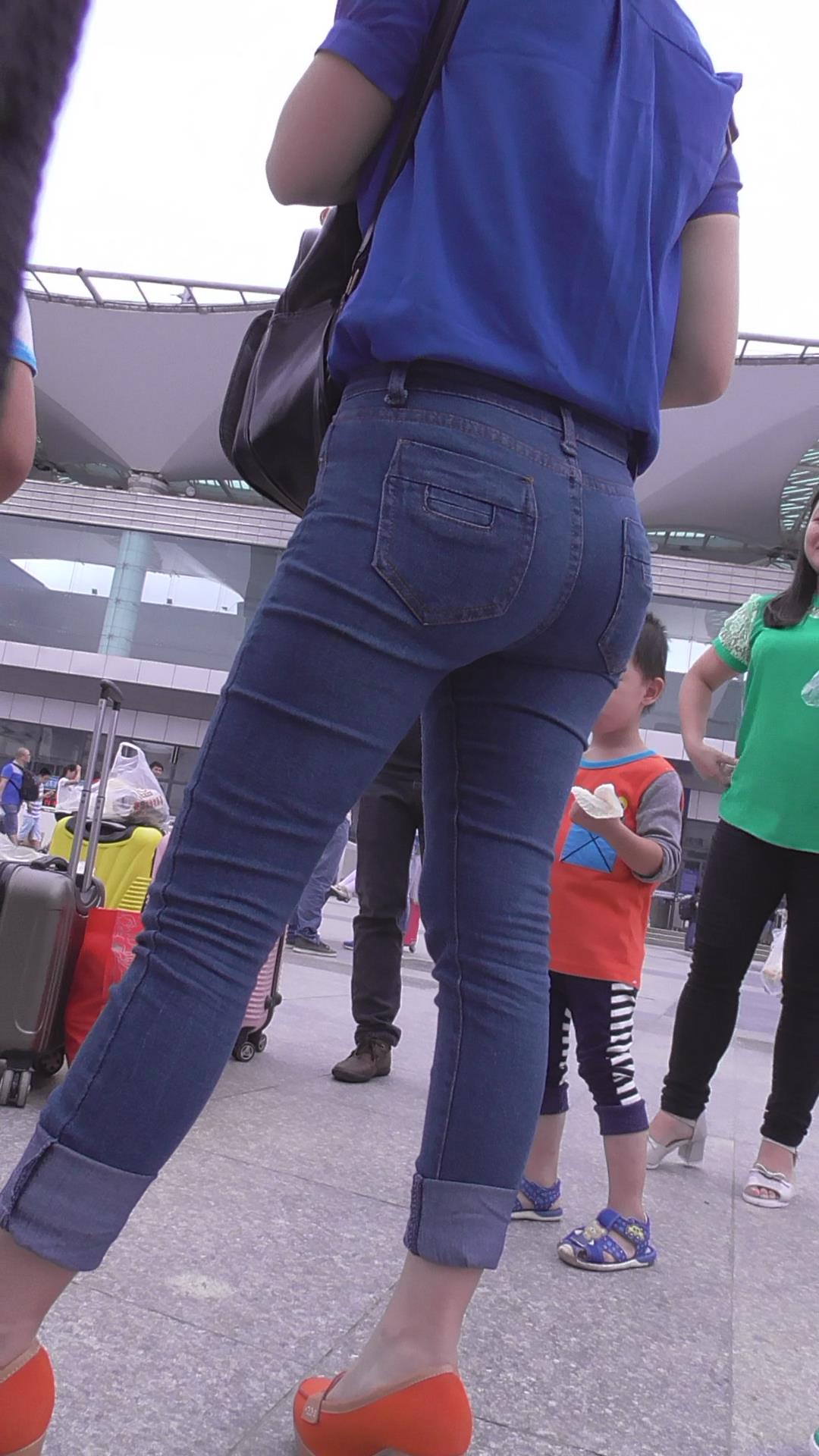 | 街拍极品宽臀紧身蓝色牛仔裤少妇 编号5919 |