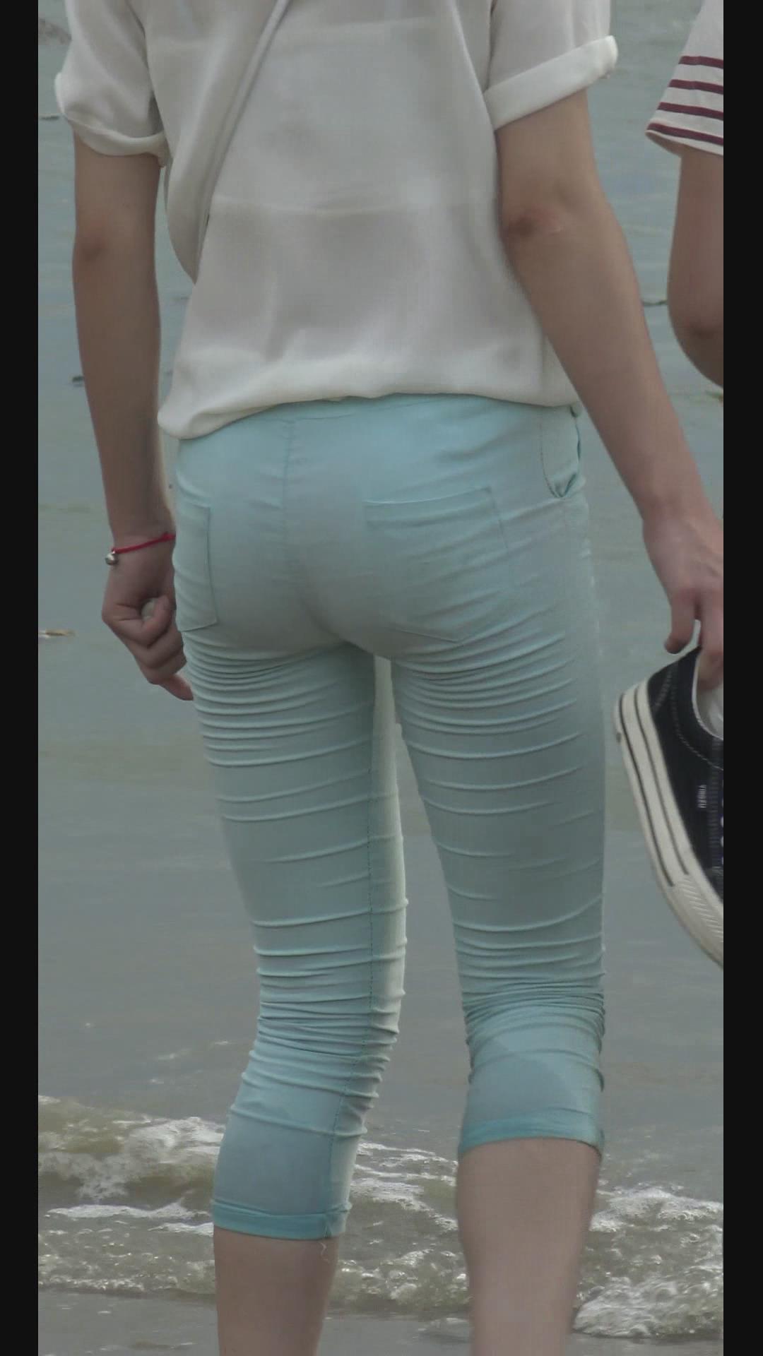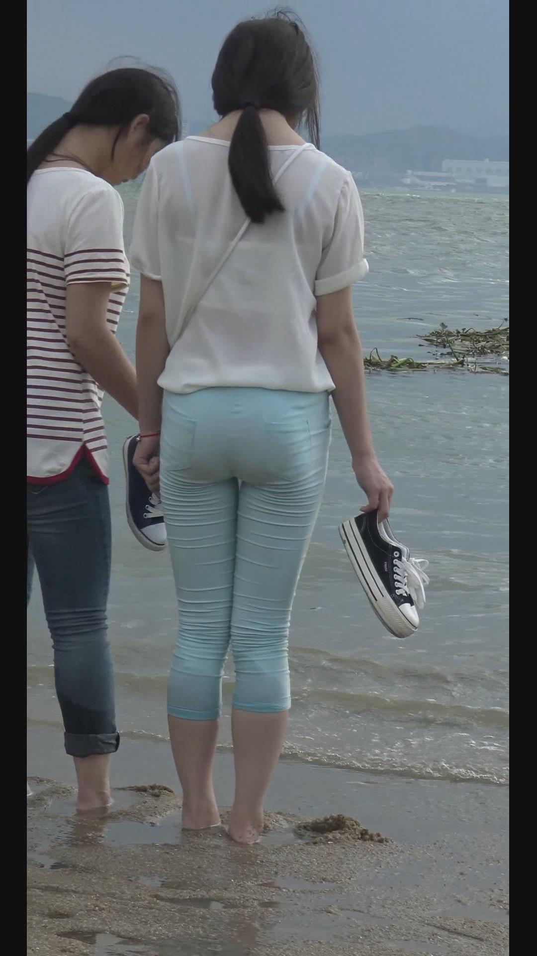| 海边戏水的美臀紧身裤少女 编号5940 |