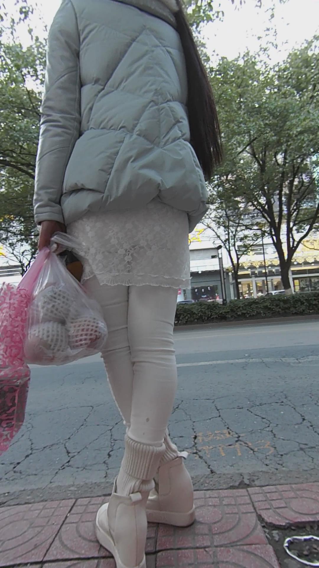 | 等公交车的紧身白裤马尾辫女孩。 编号5945 |