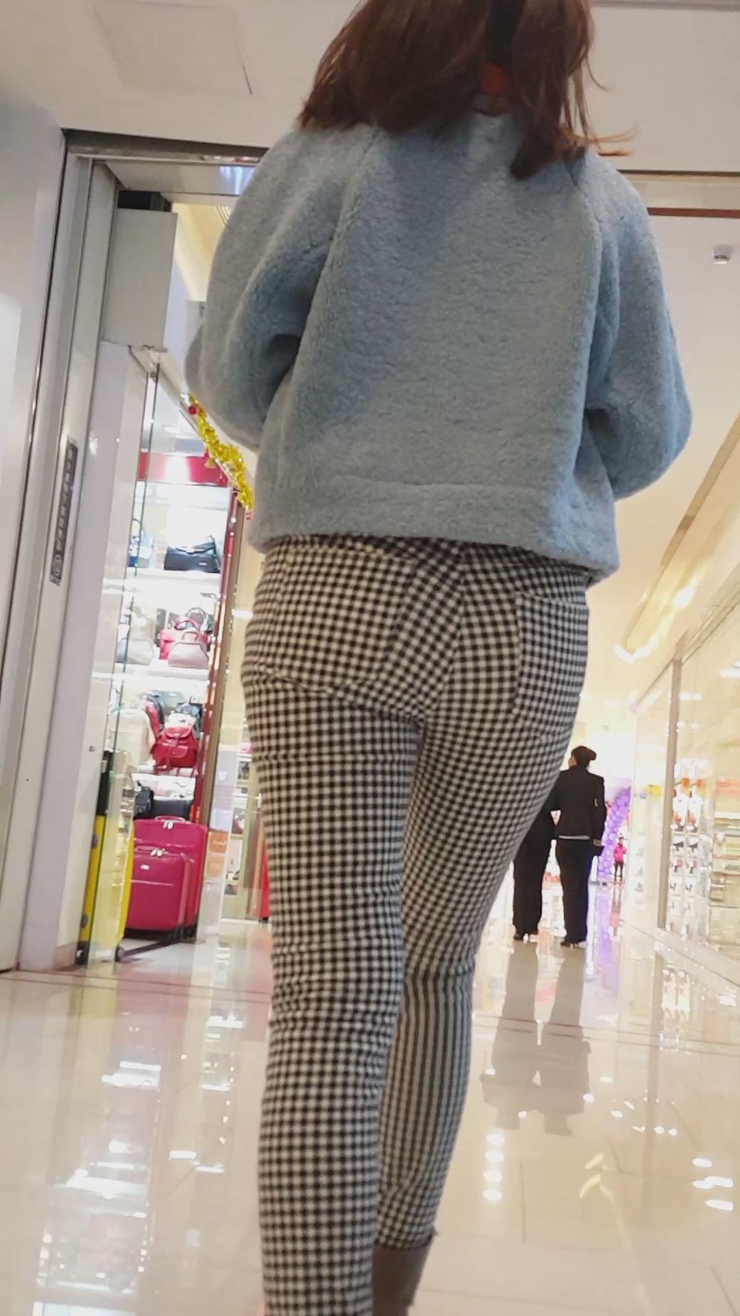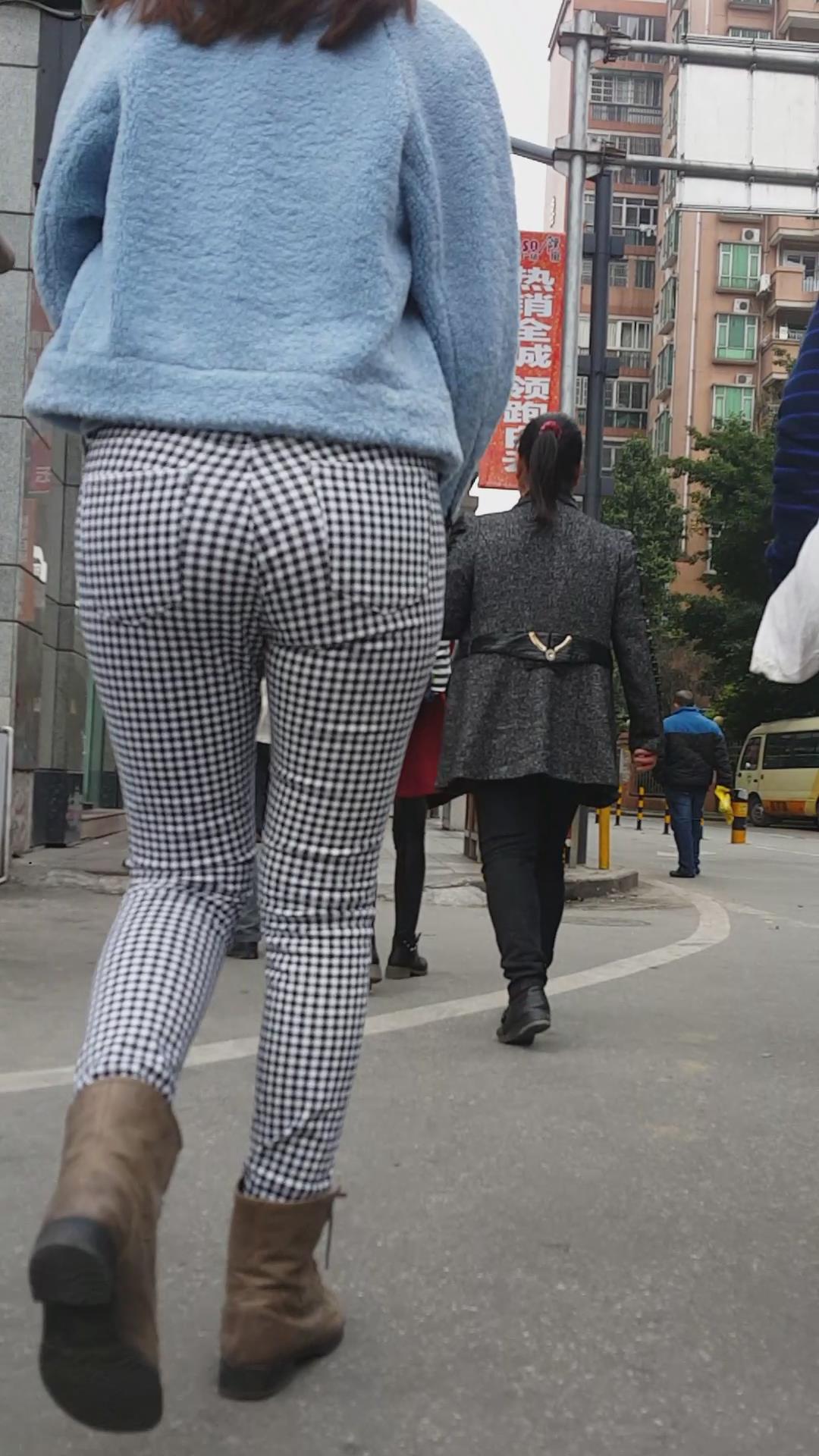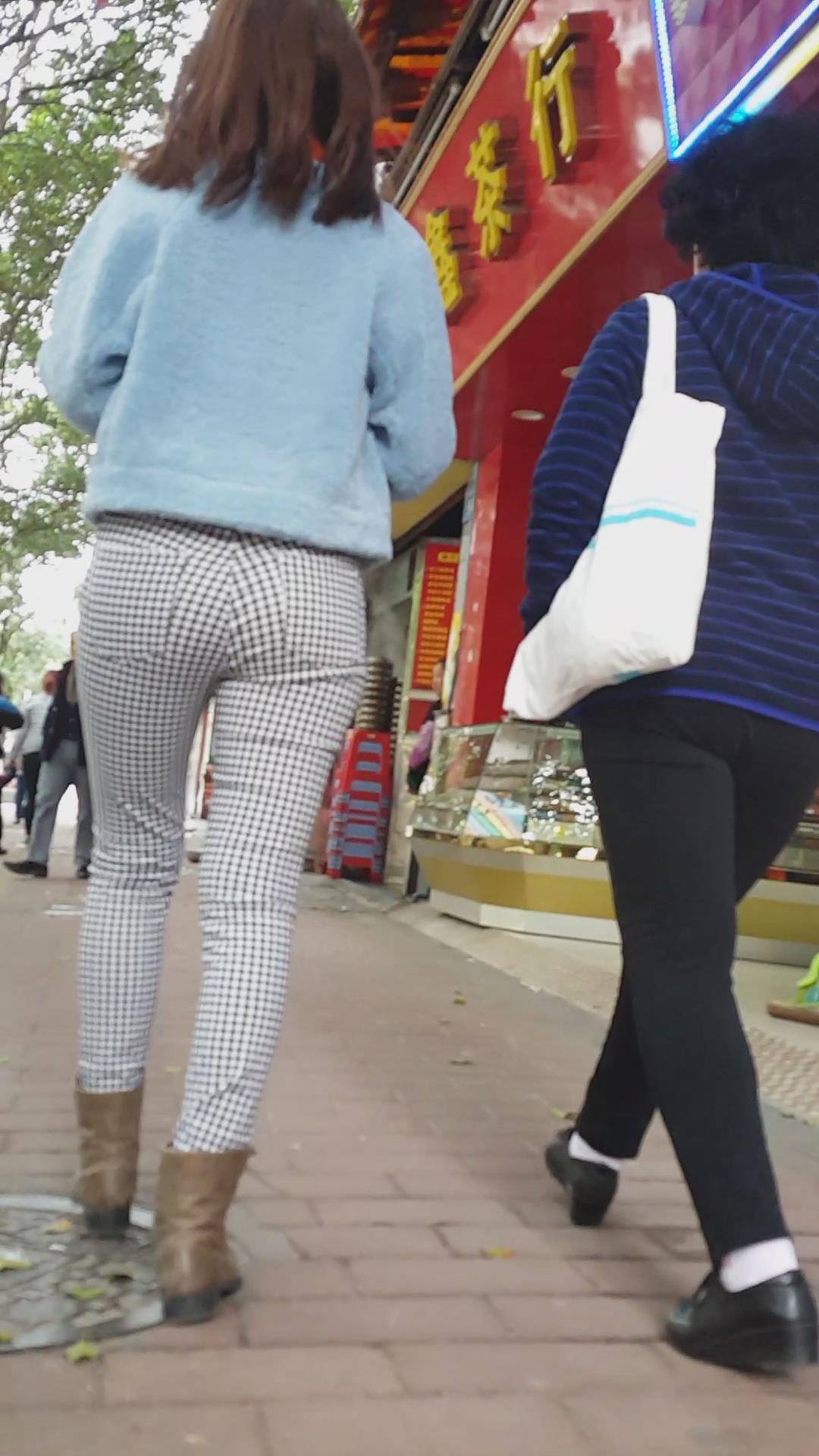 | 街拍格子紧身裤美腿美女 编号5947 |