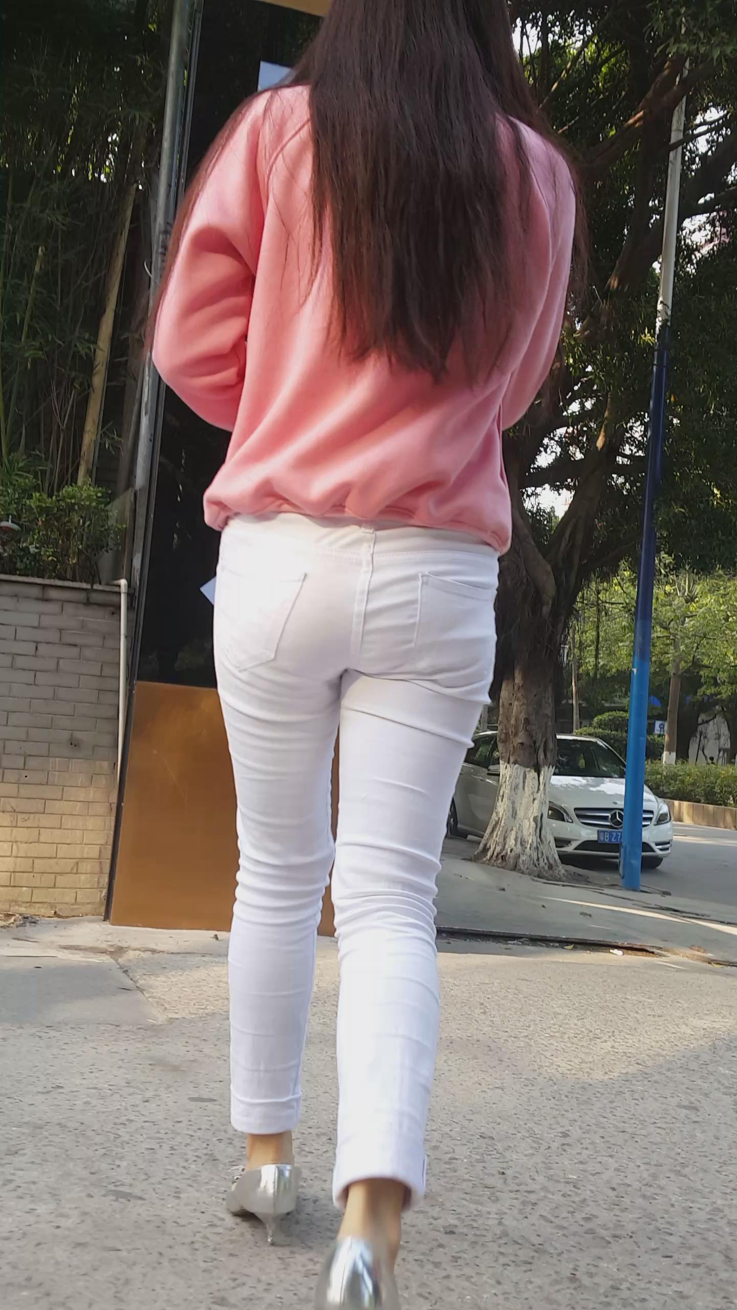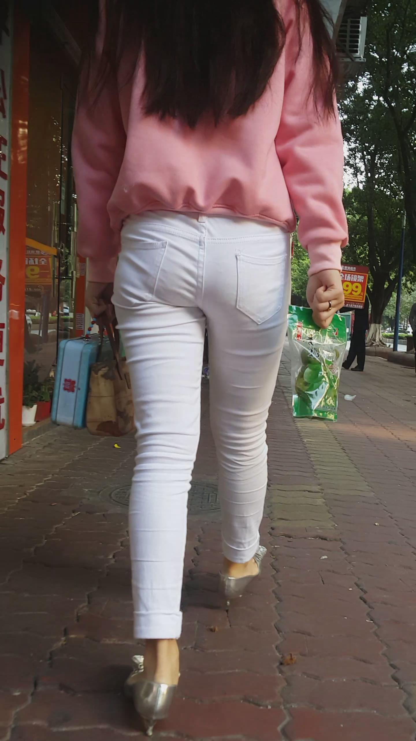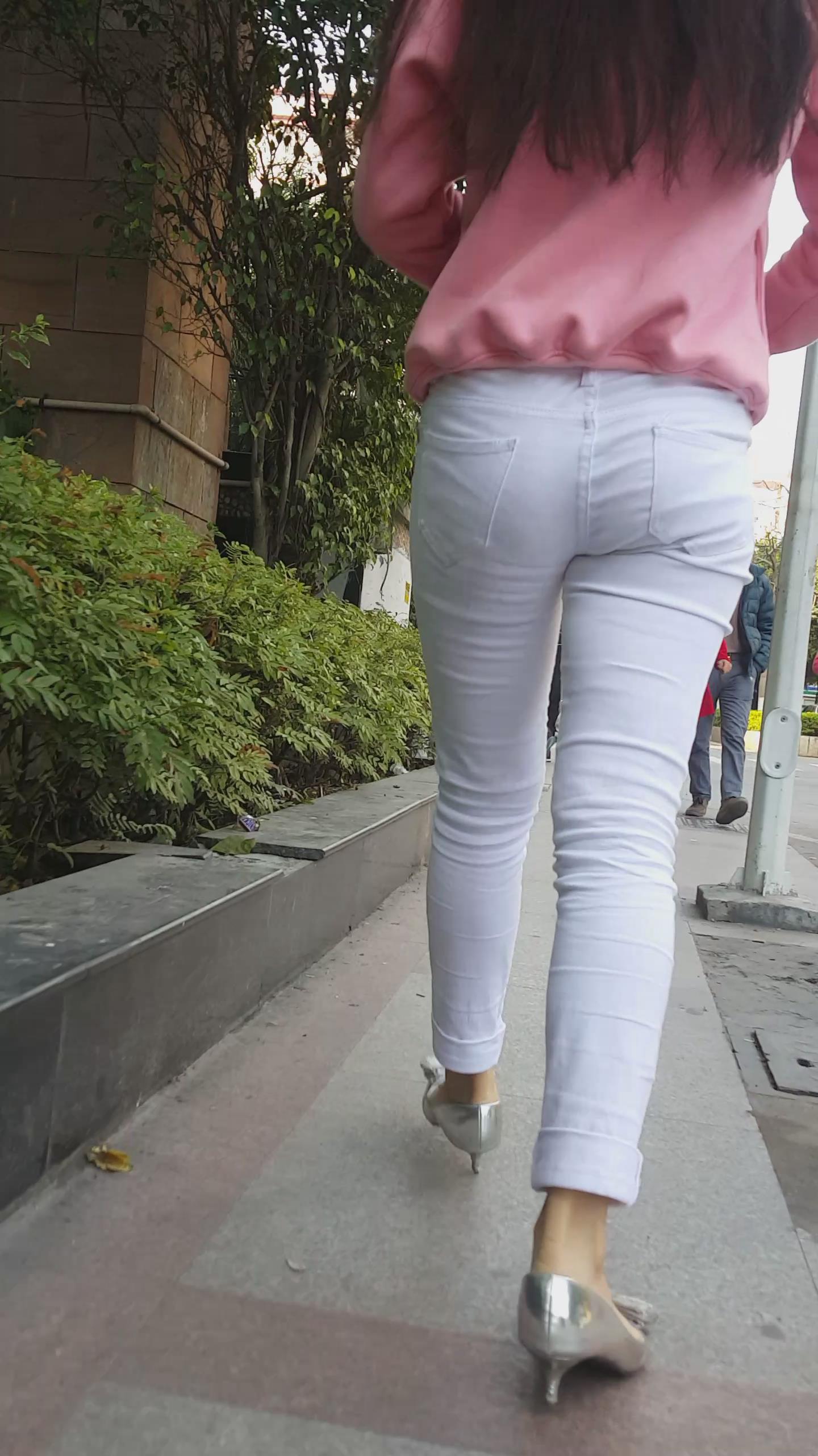 | 街拍紧身白裤银白高跟美女 编号5949 |