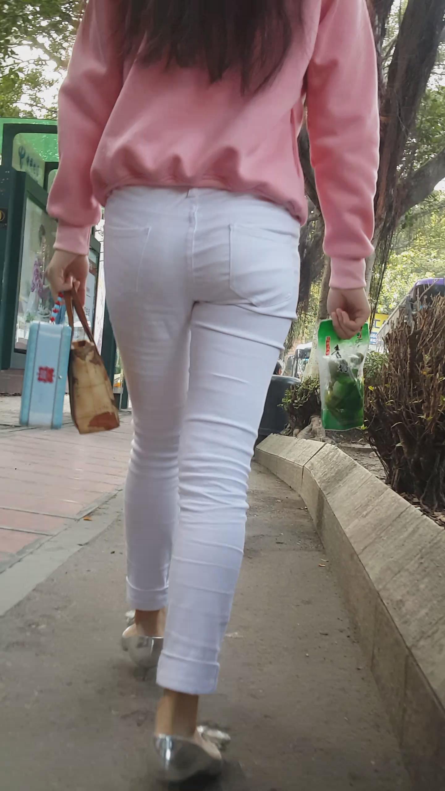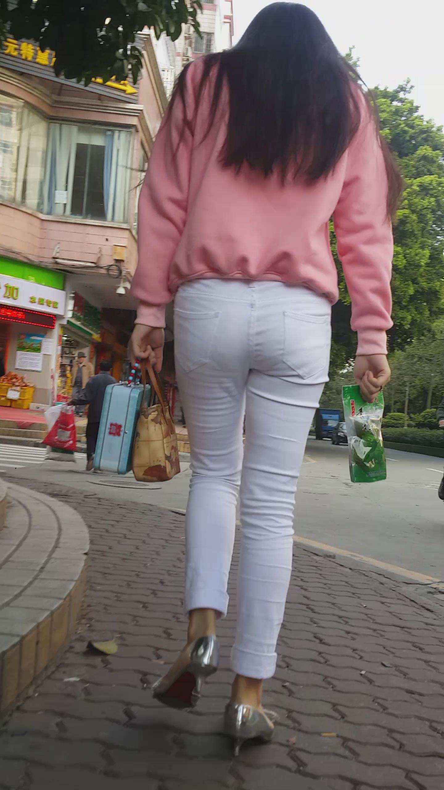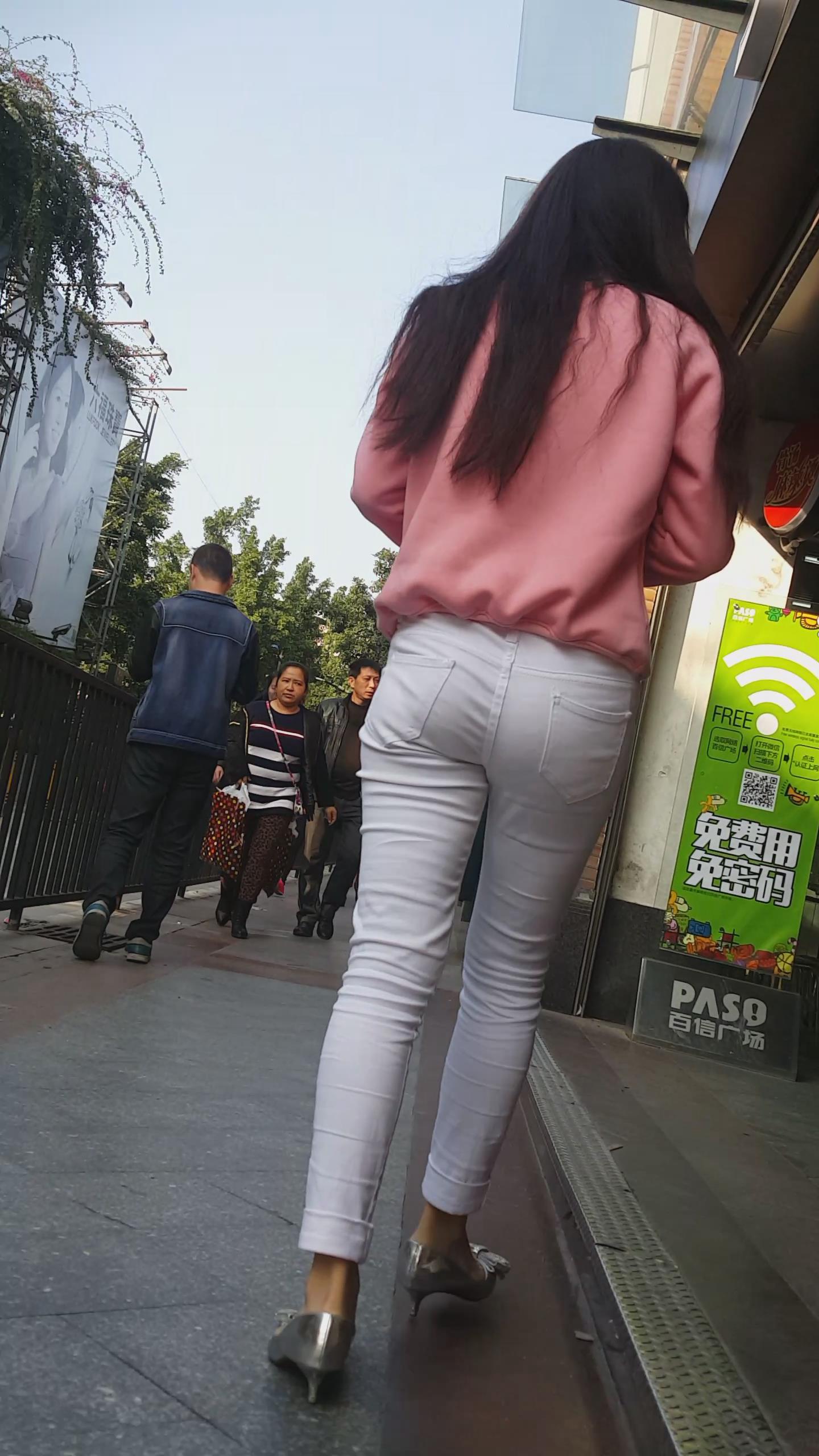 | 街拍紧身白裤银白高跟美女 编号5949 |