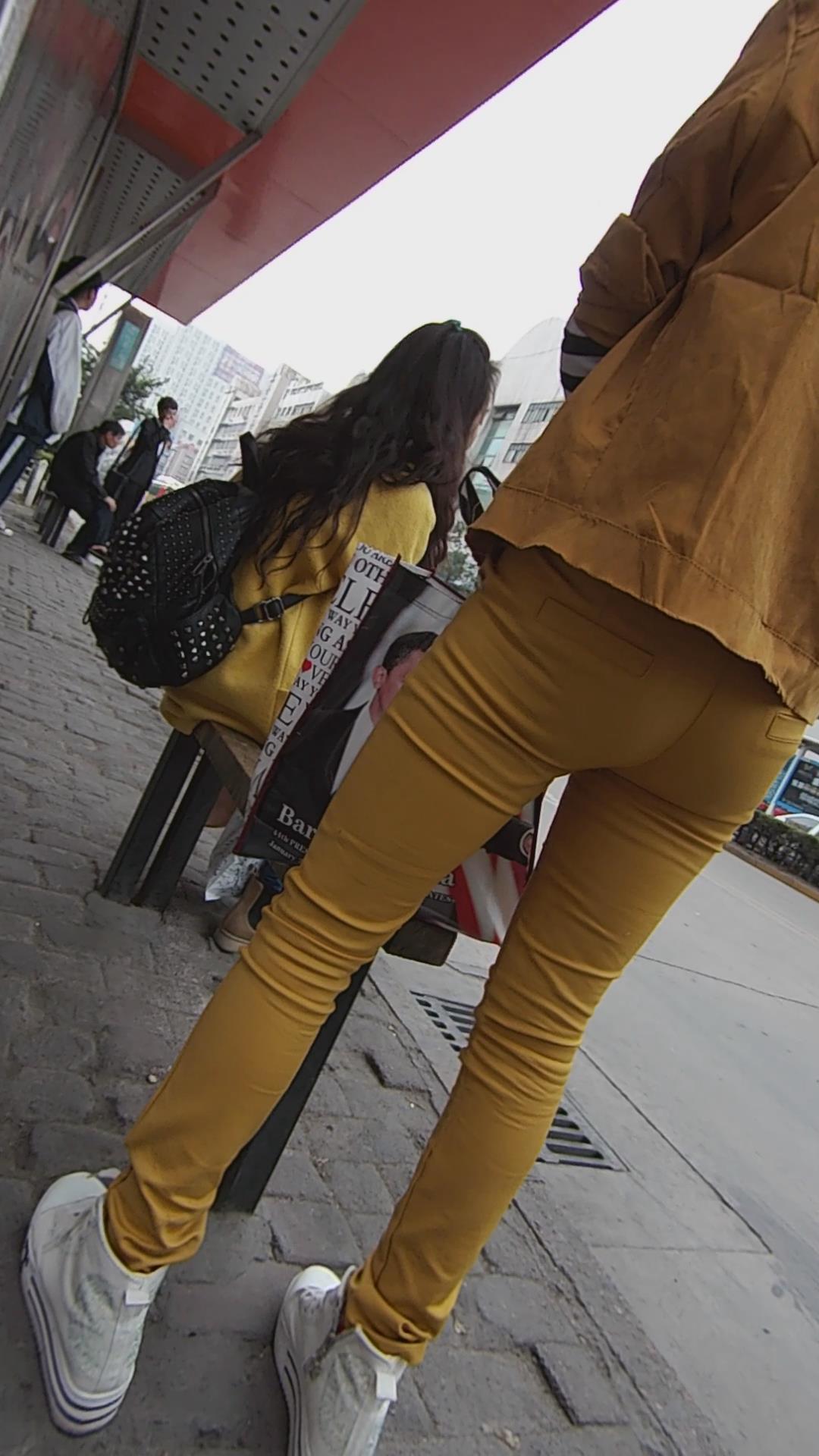 | 公车站娇小身材黄色紧身裤清新小美女。 编号5951 |