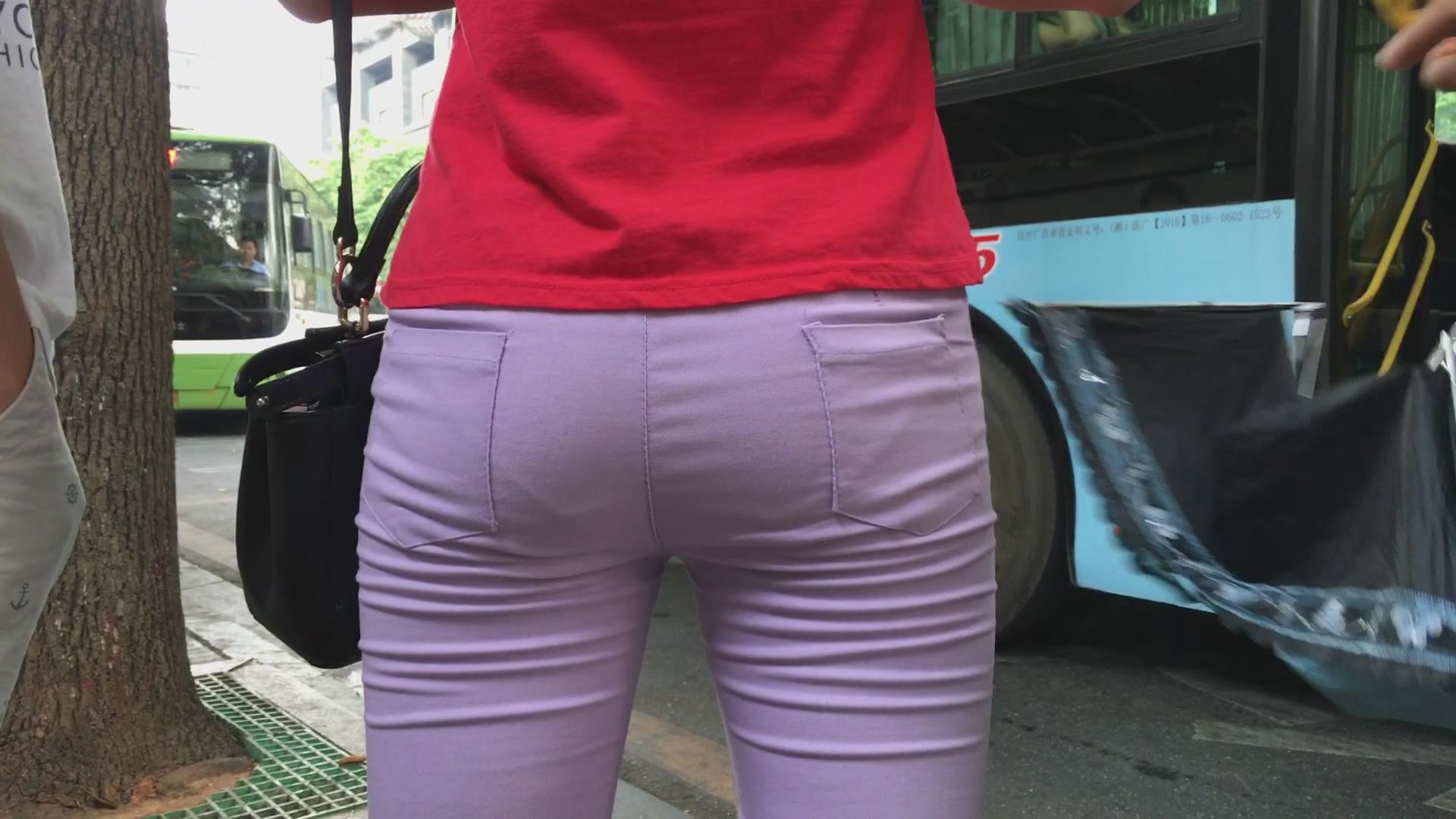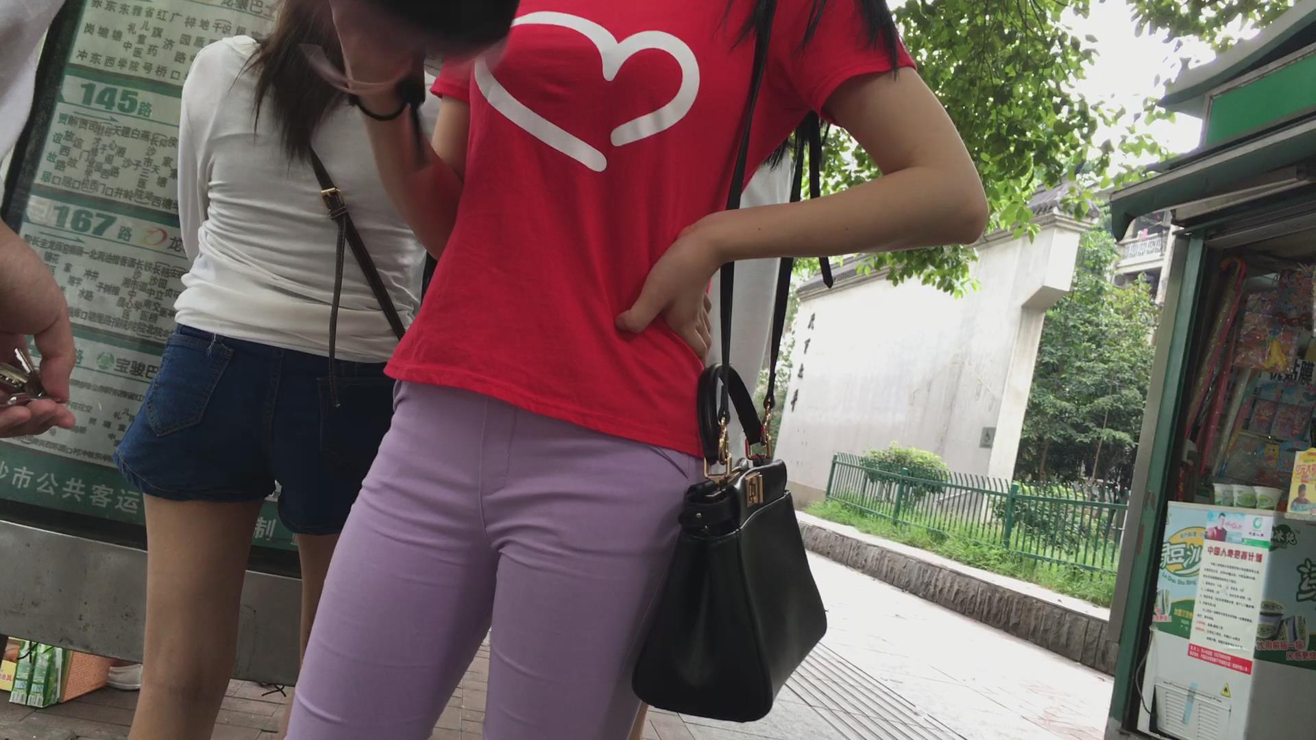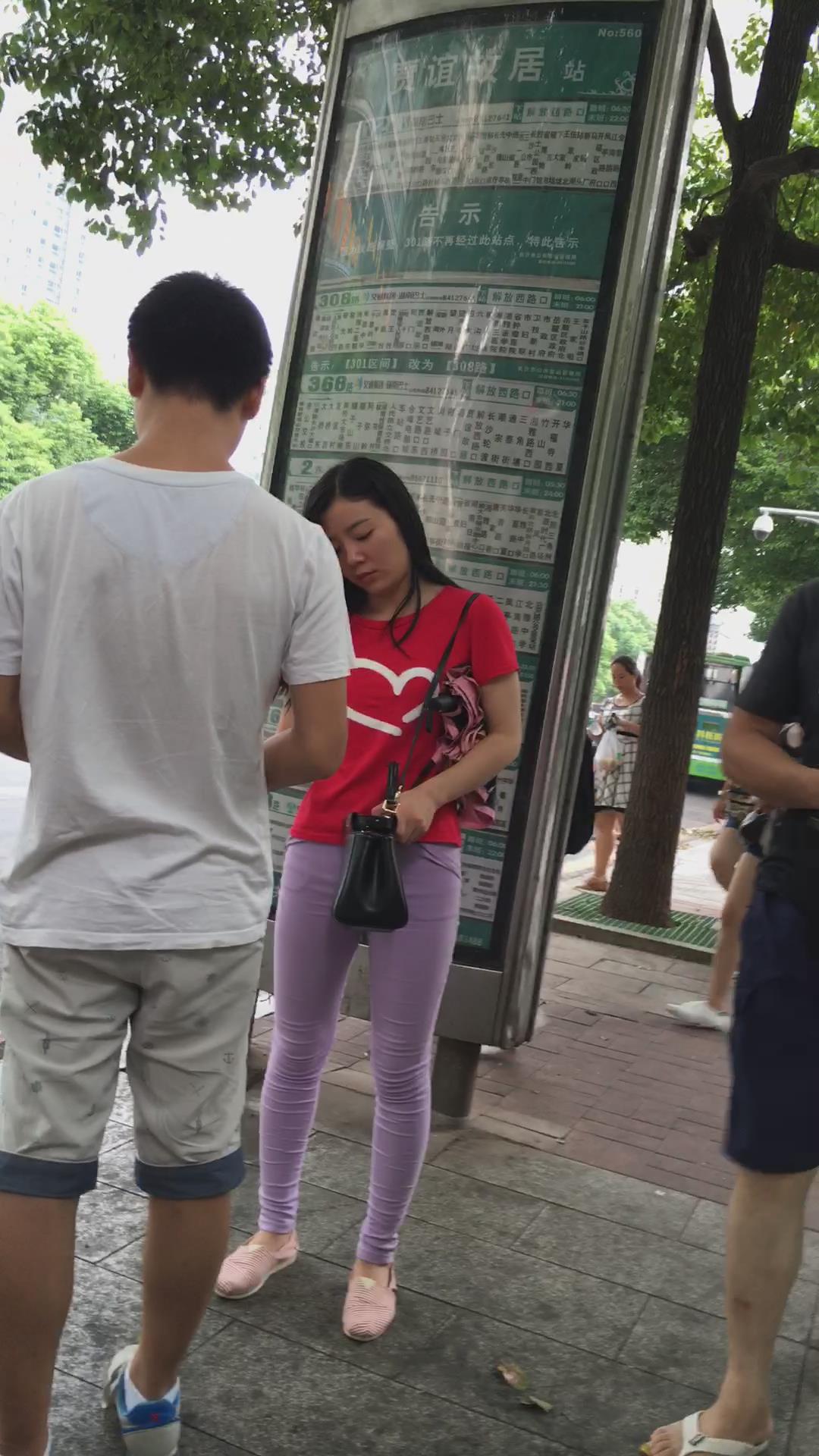 | 焦急等公交的红T恤紫色紧身裤苗条小妹。 编号5955 |
