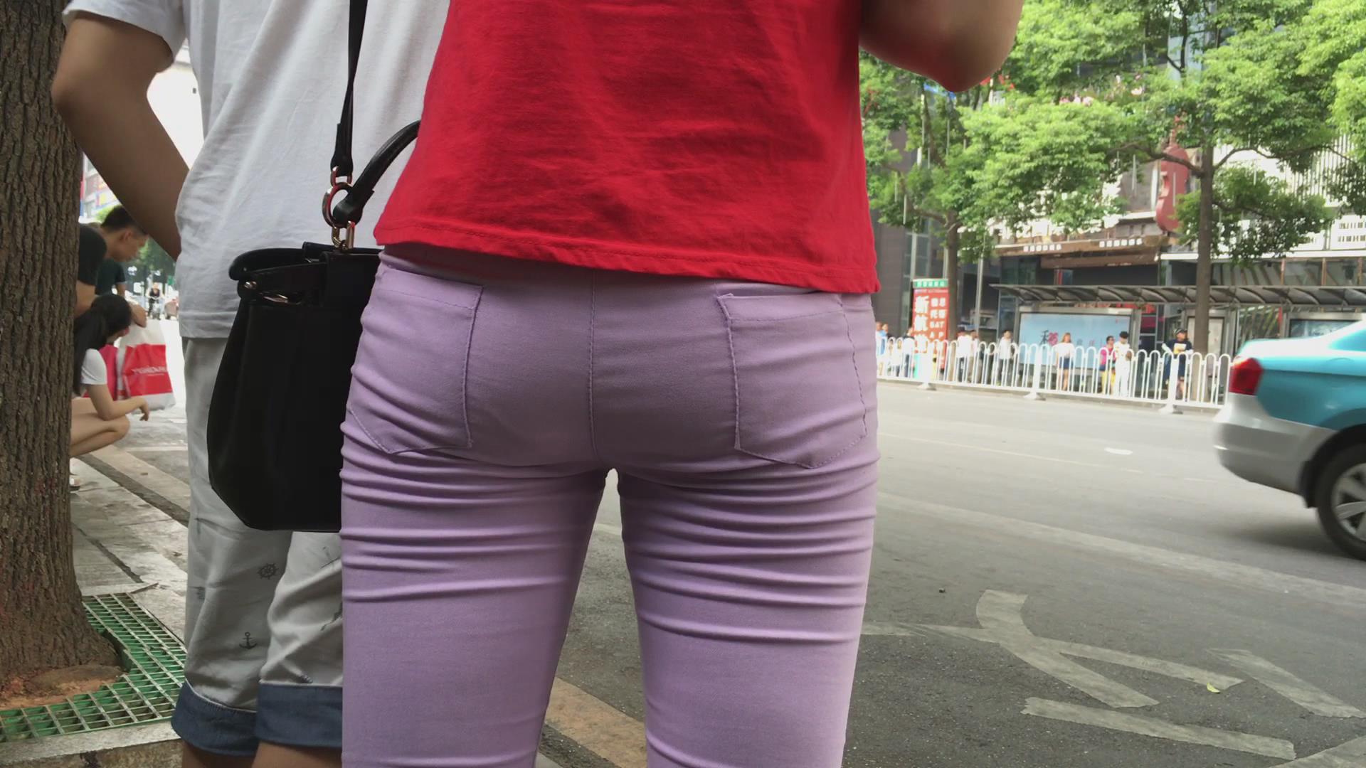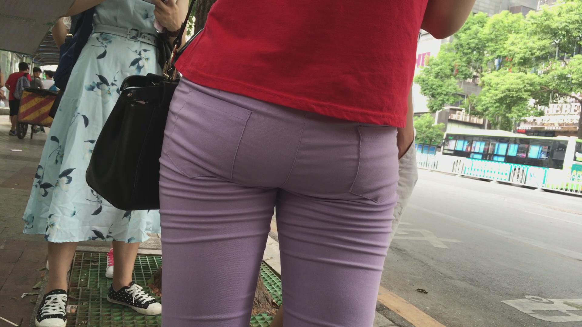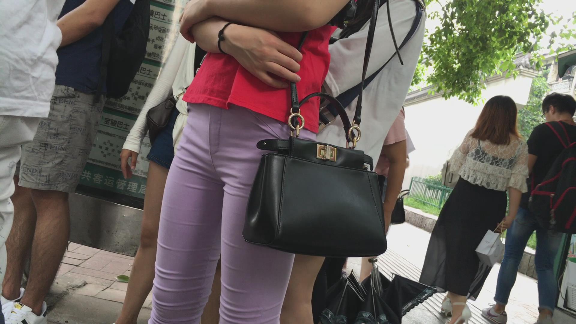| 焦急等公交的红T恤紫色紧身裤苗条小妹。 编号5955 |