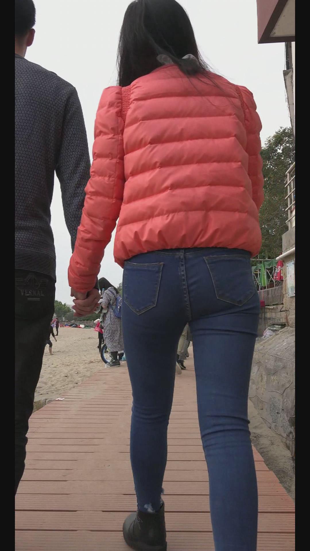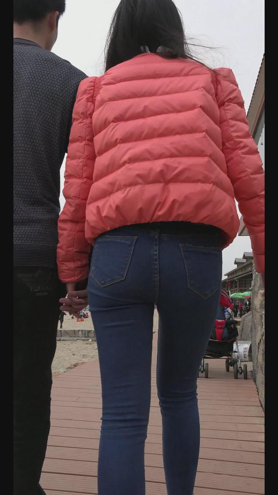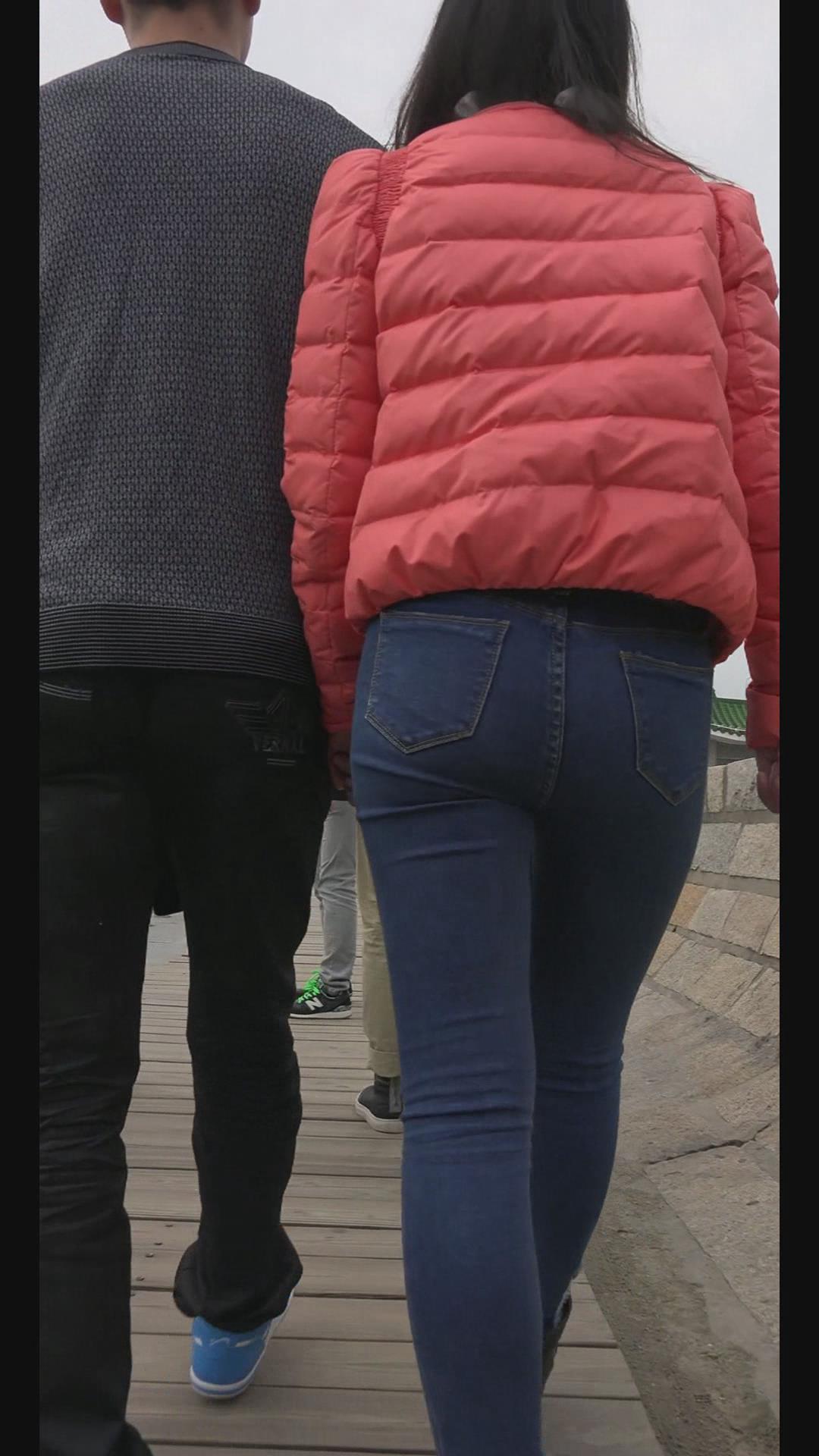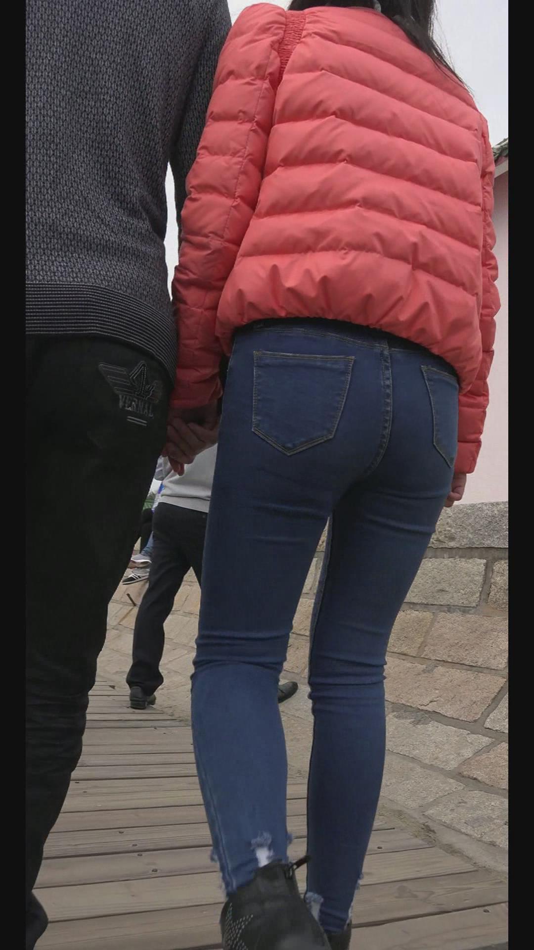 | 街拍蓝色紧身牛仔裤粉衣少女 编号5963 |