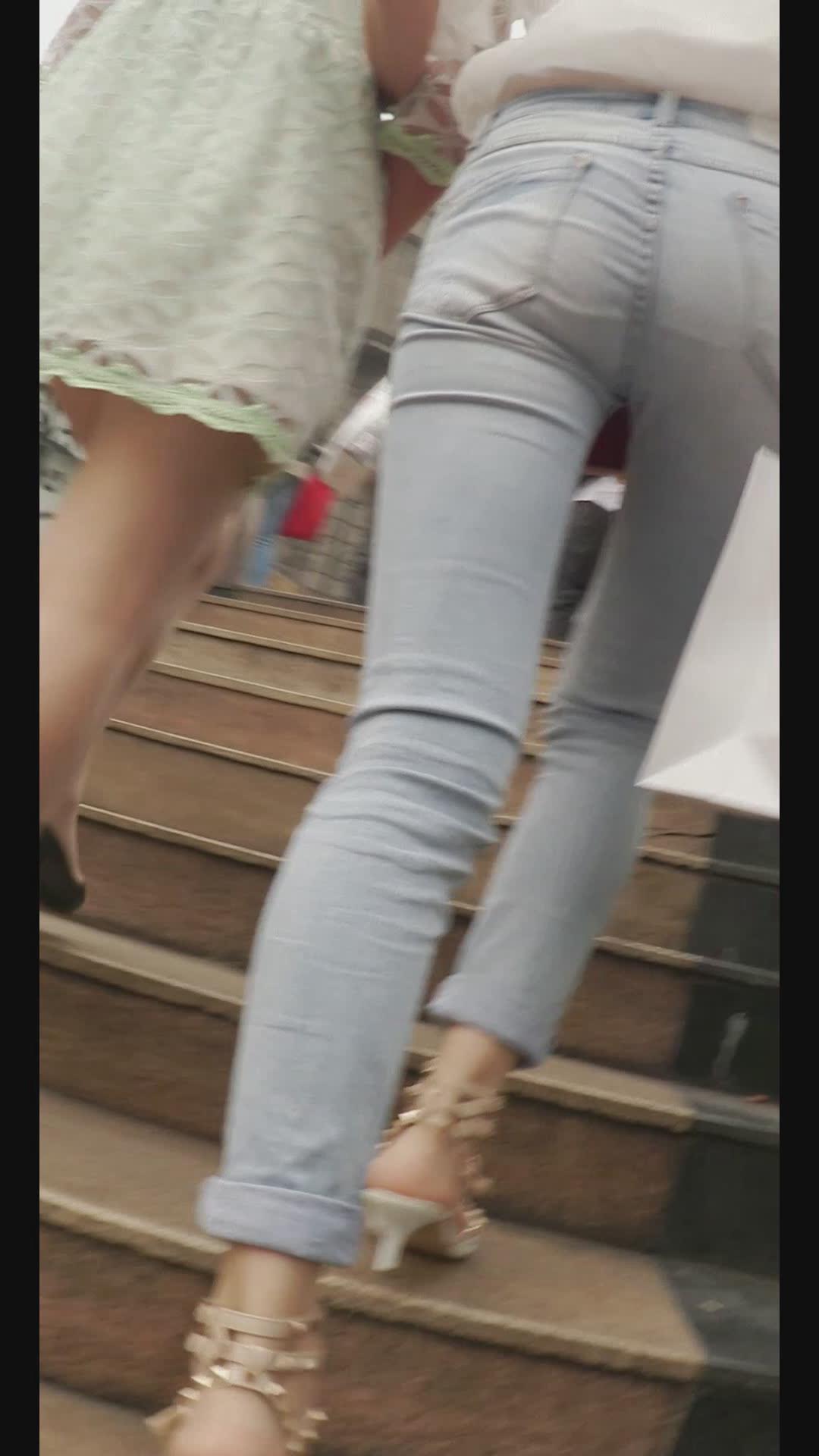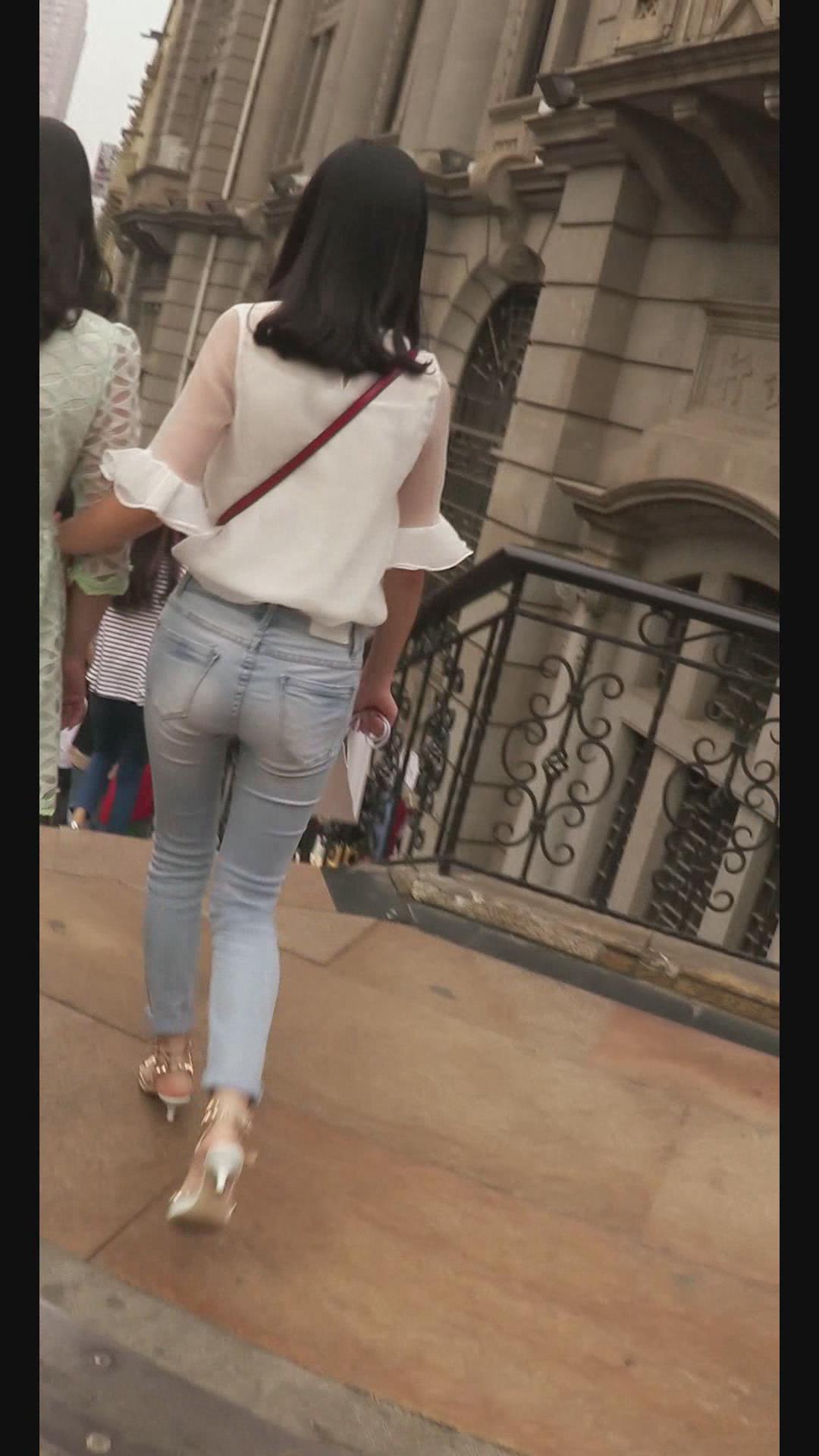 | 街拍极品紧身蓝色牛仔裤美女 编号5970 |