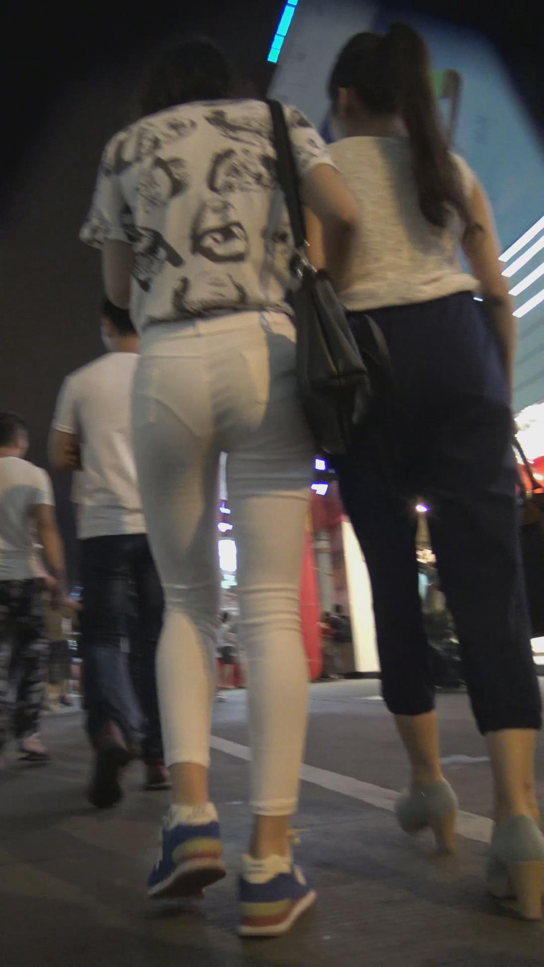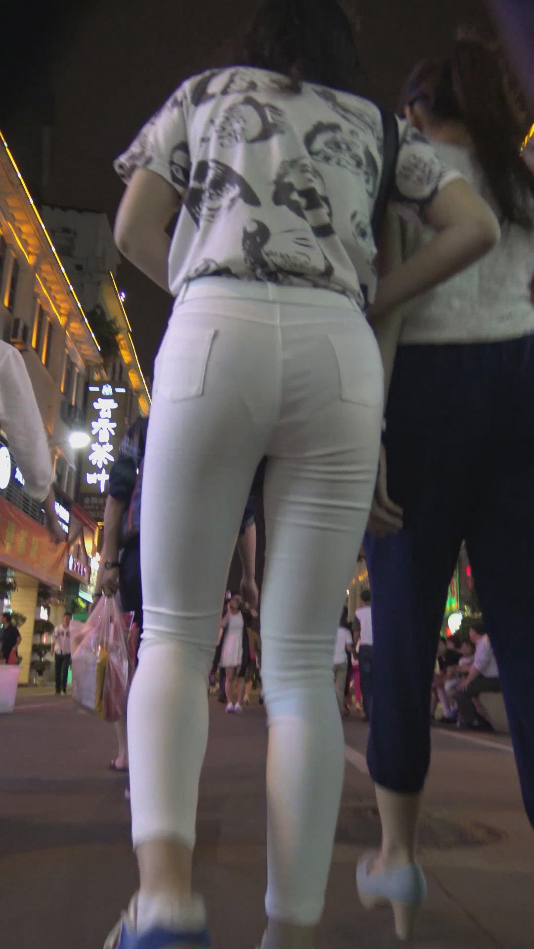 | 给力的超薄紧身白裤,内内印痕清晰可见 编号6007 |
