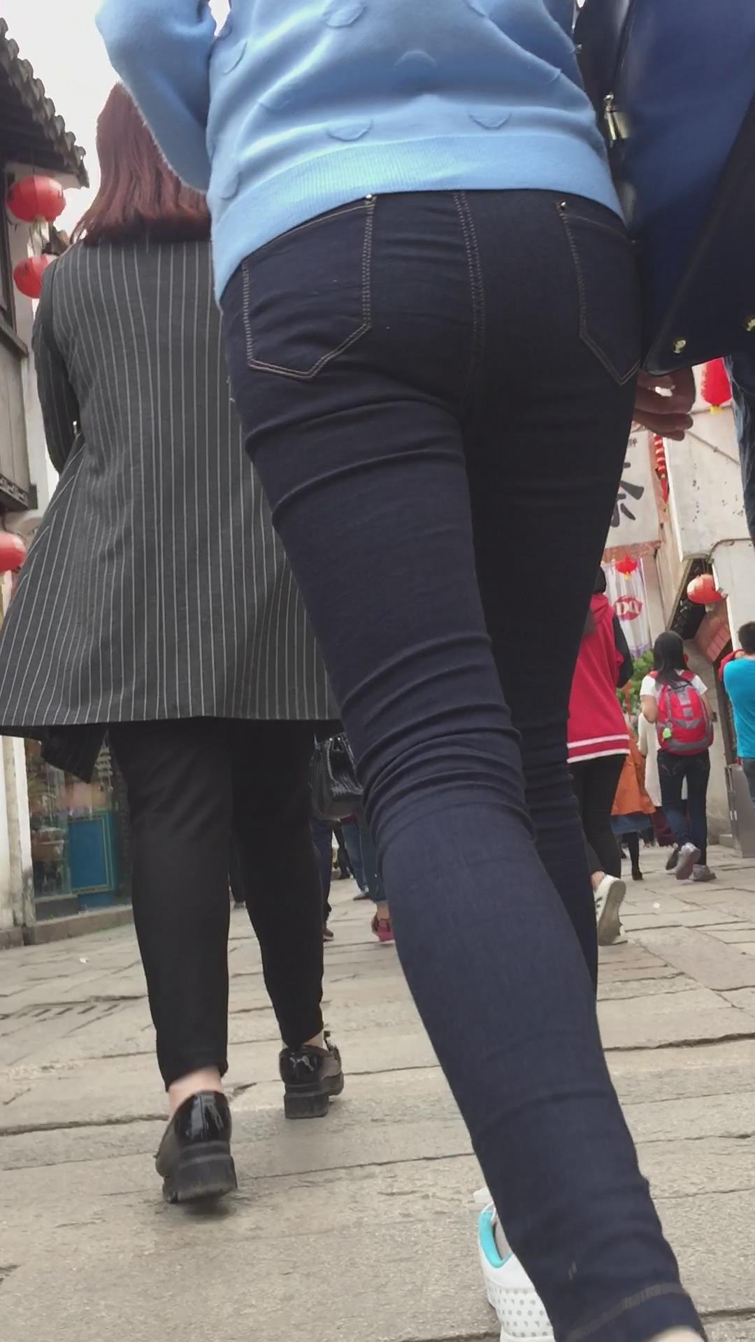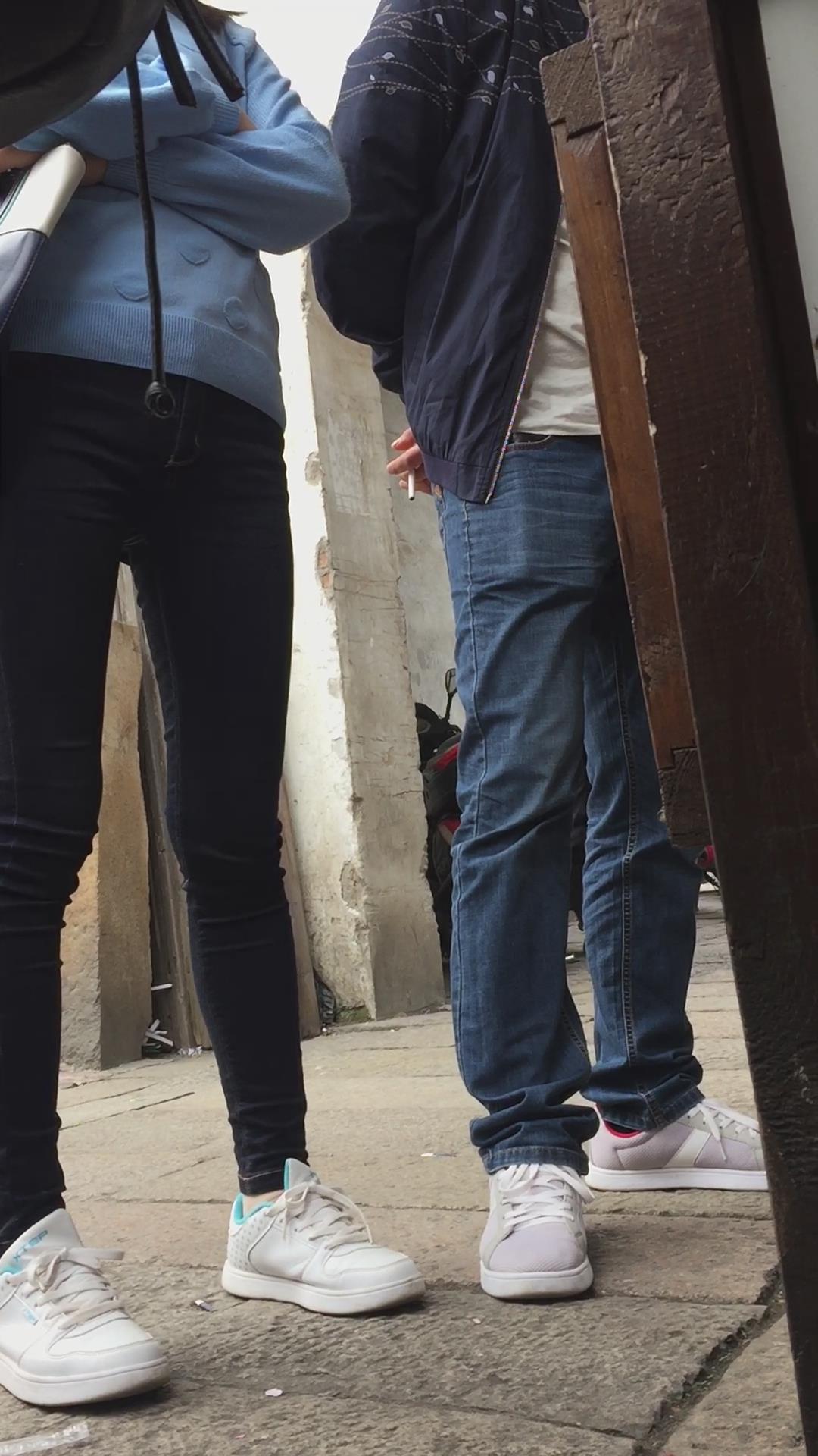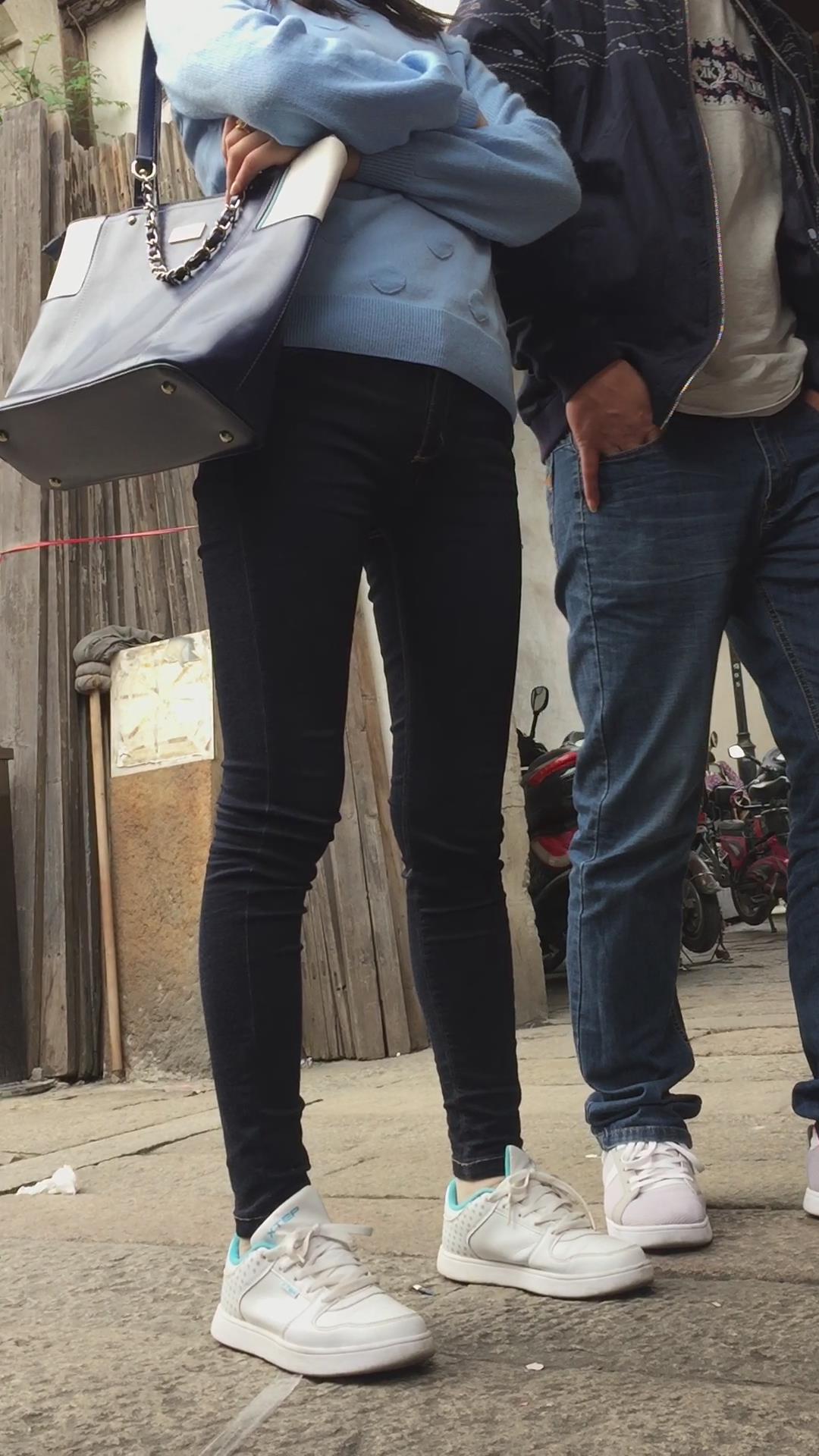 | 街拍紧身蓝牛运动鞋学生妹。 编号6038 |