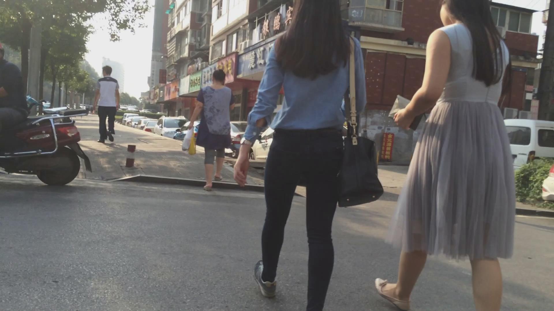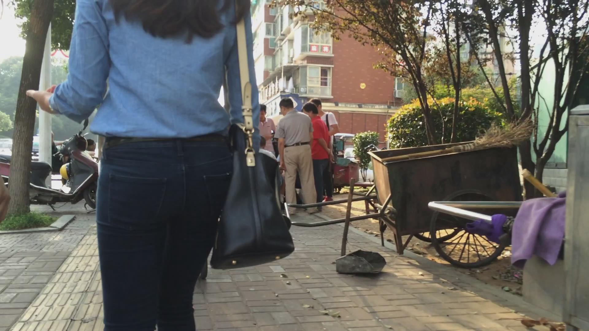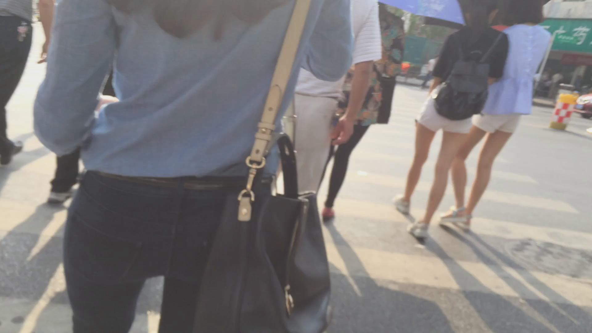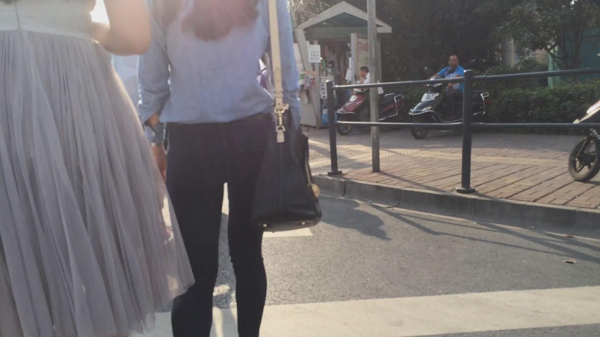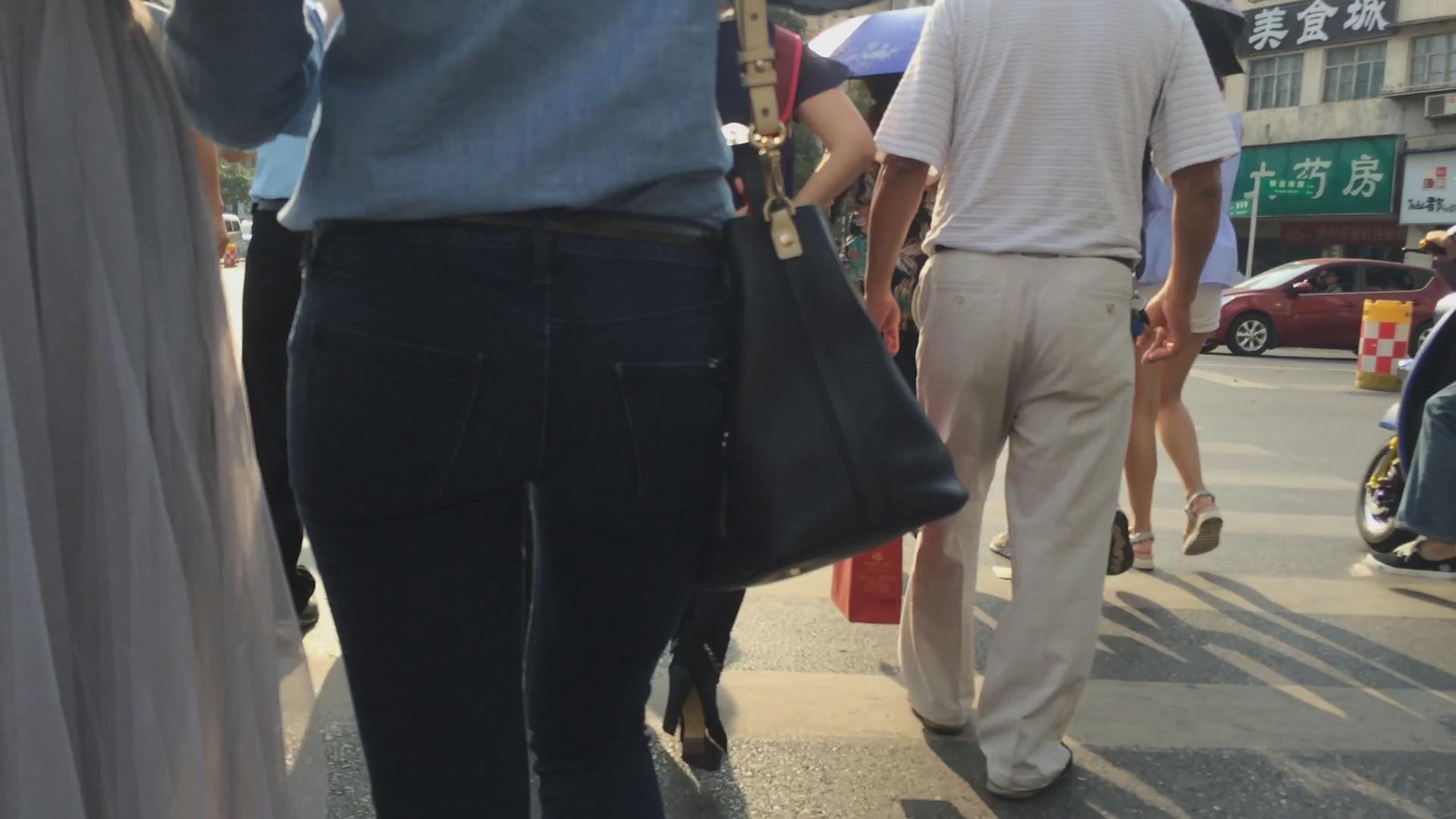 | 街拍紧身蓝色牛仔裤美女 编号6040 |