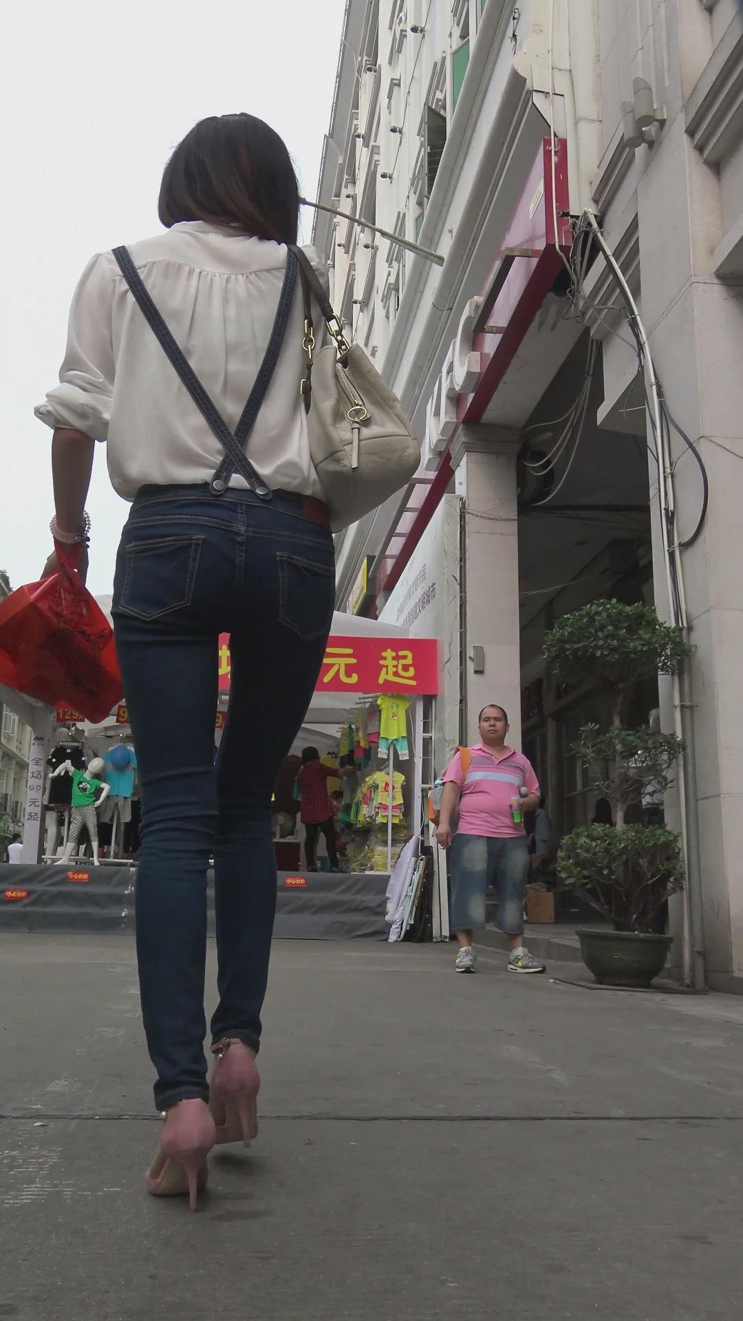 | 街拍极品长腿背带牛仔裤粉高跟气质美女姐姐 编号6045 |
