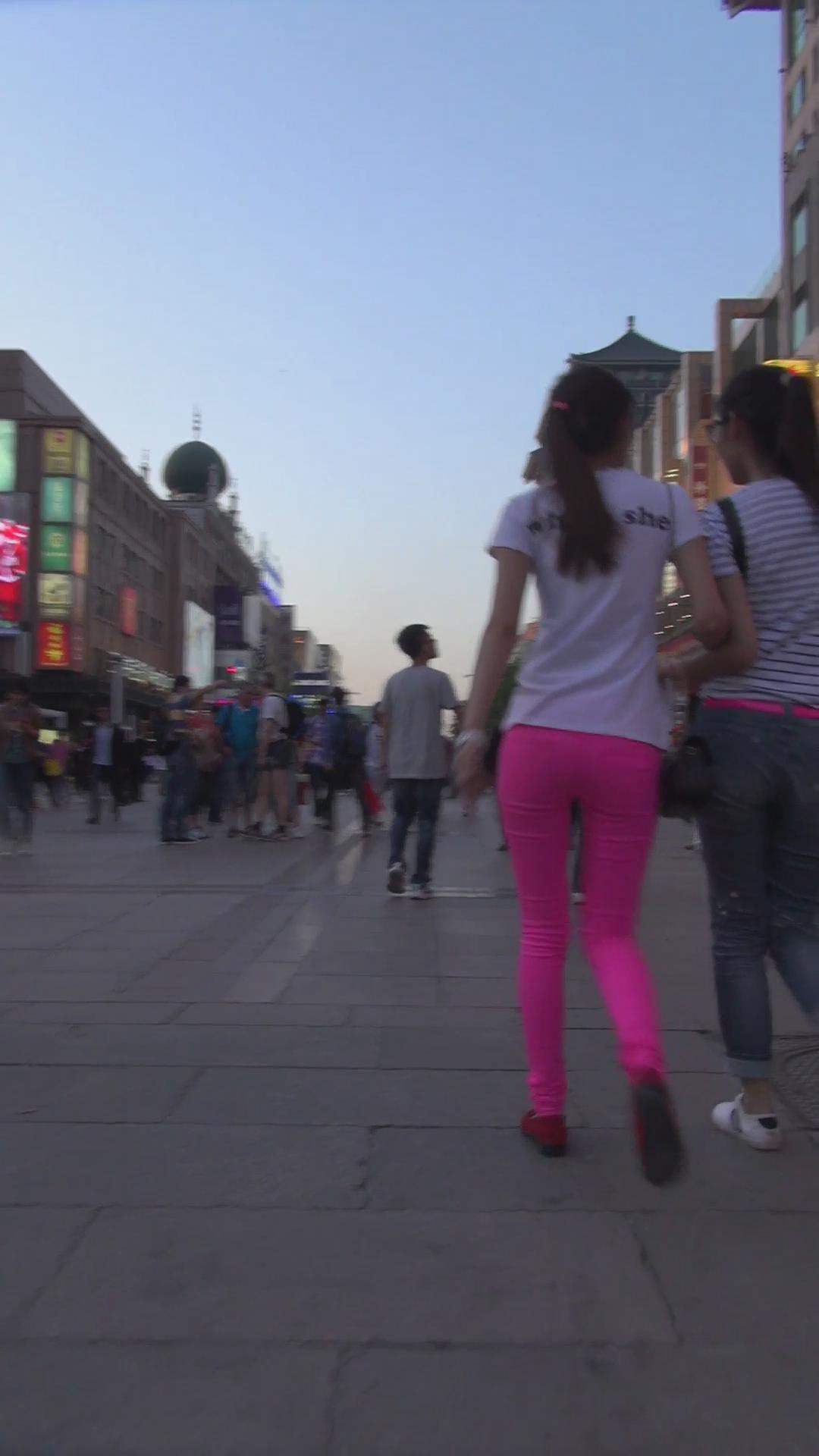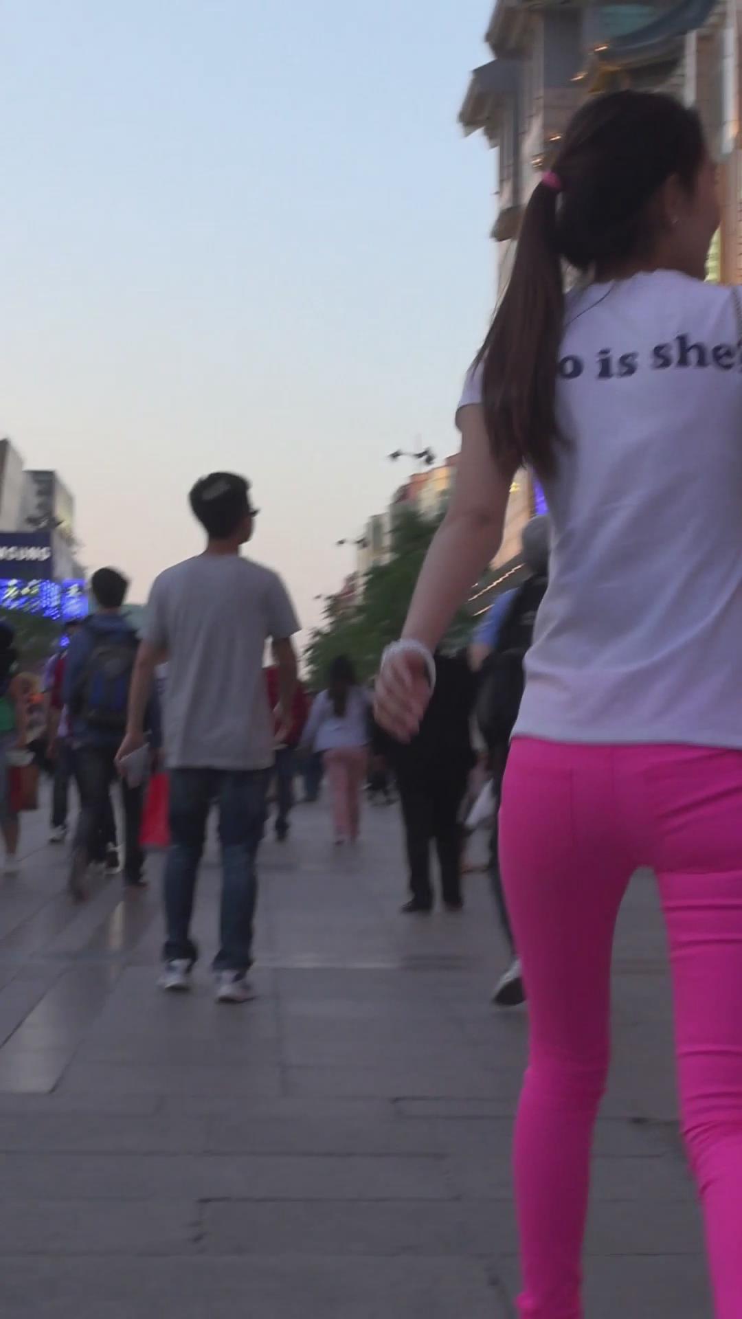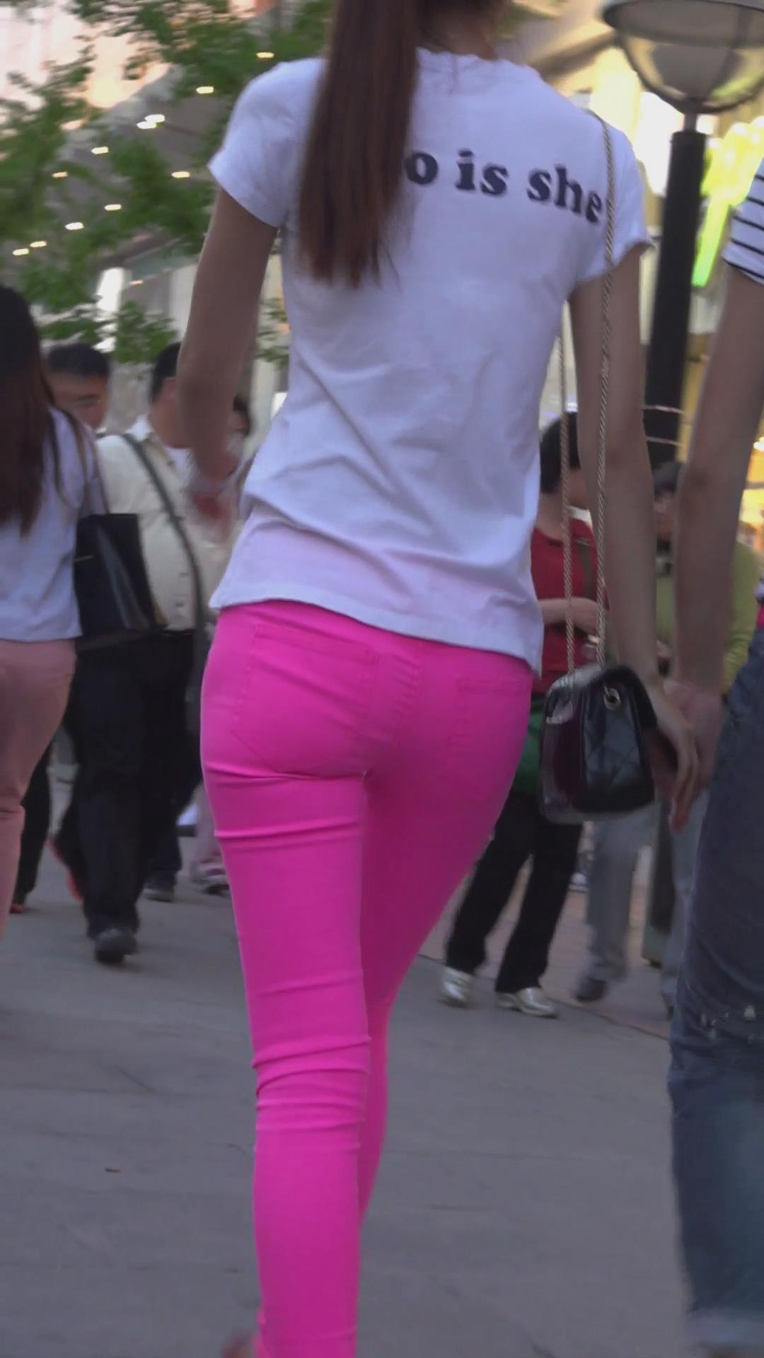 | 街拍粉色紧身裤苗条美女 编号6049 |