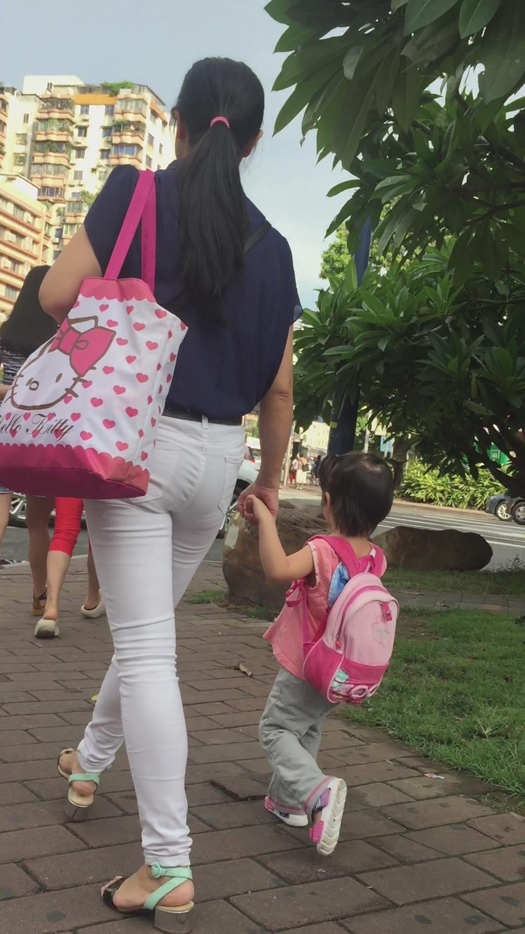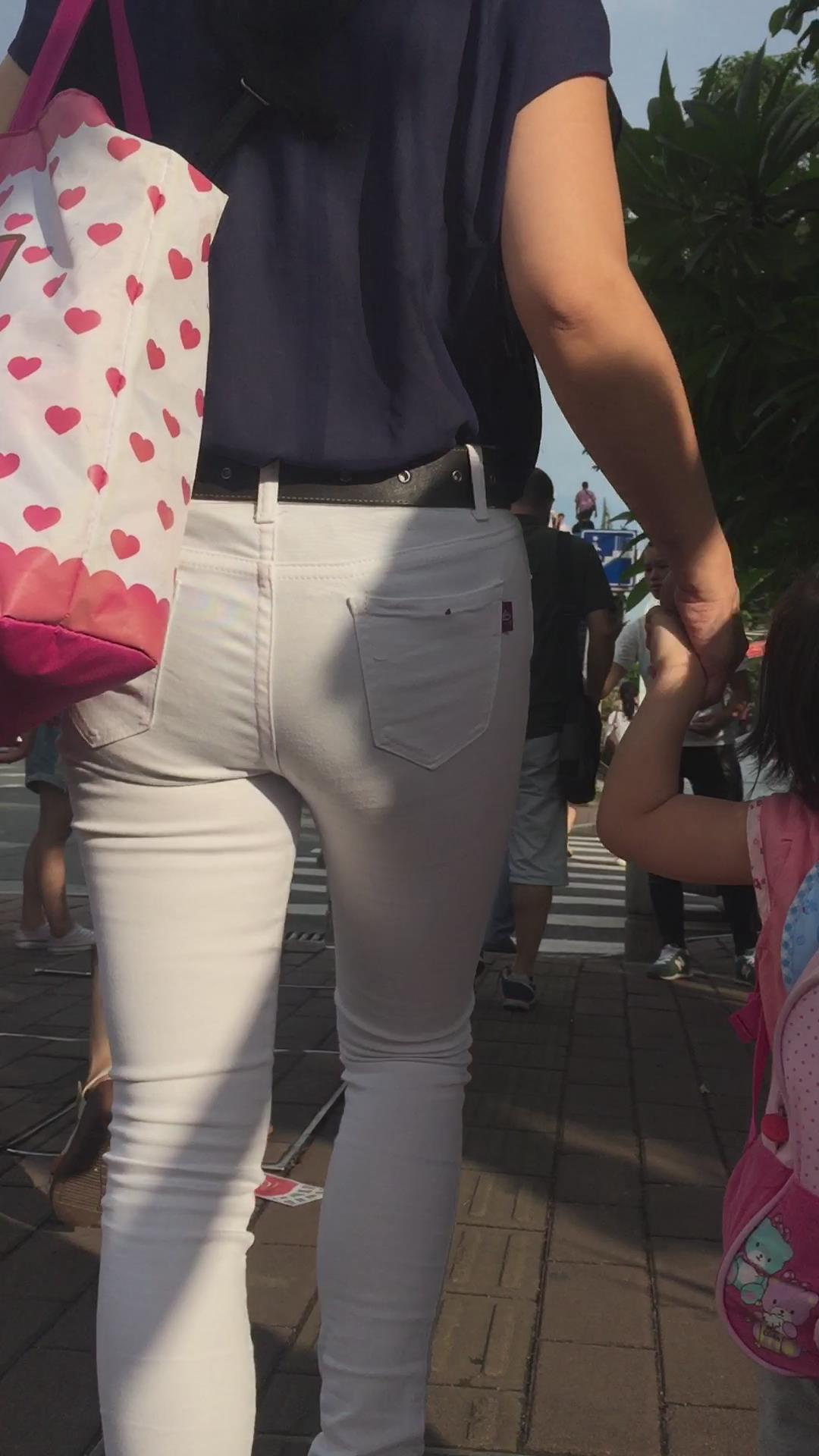 | 幼儿园刚接小孩回来的紧身白裤少妇 编号6056 |