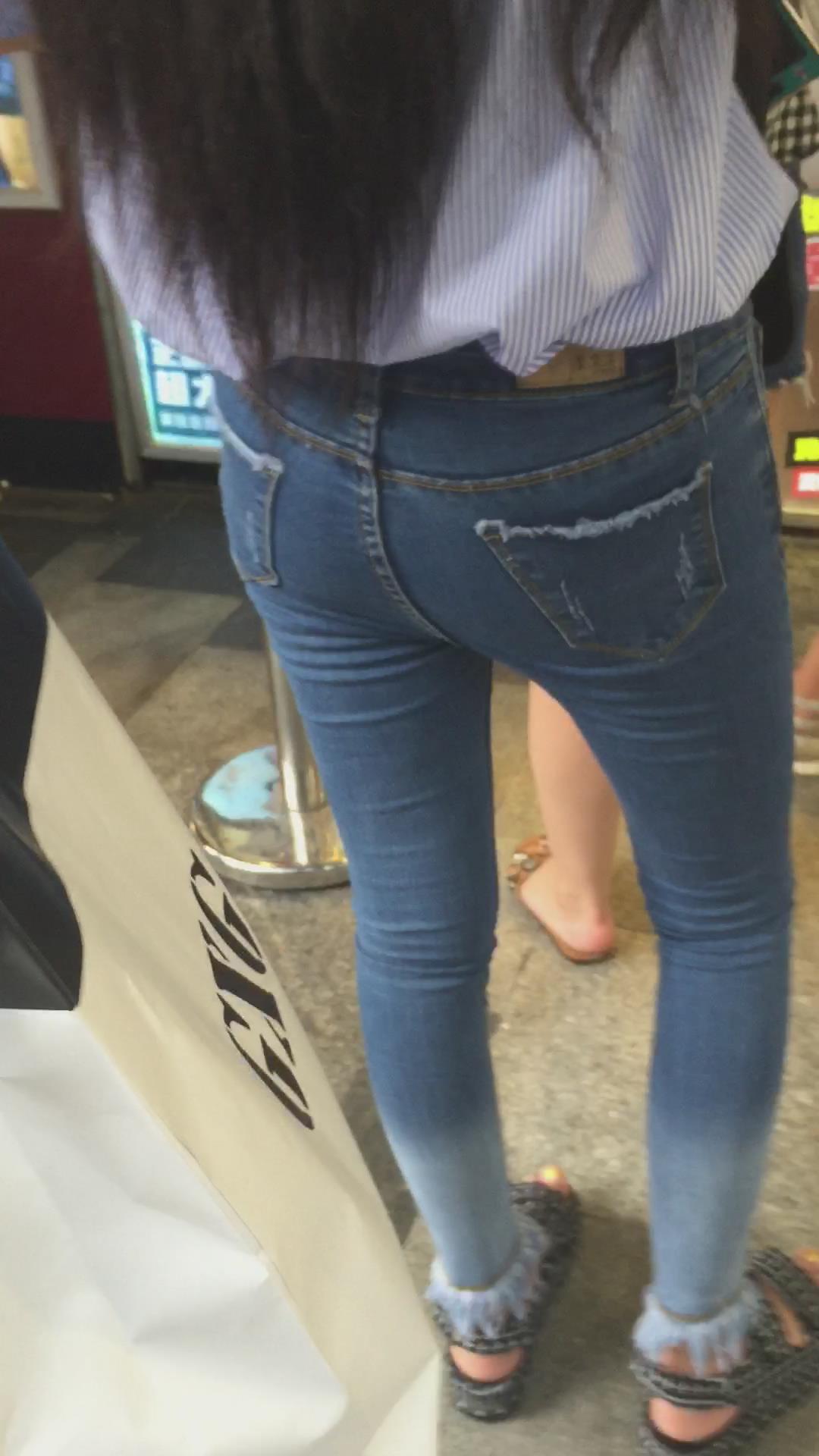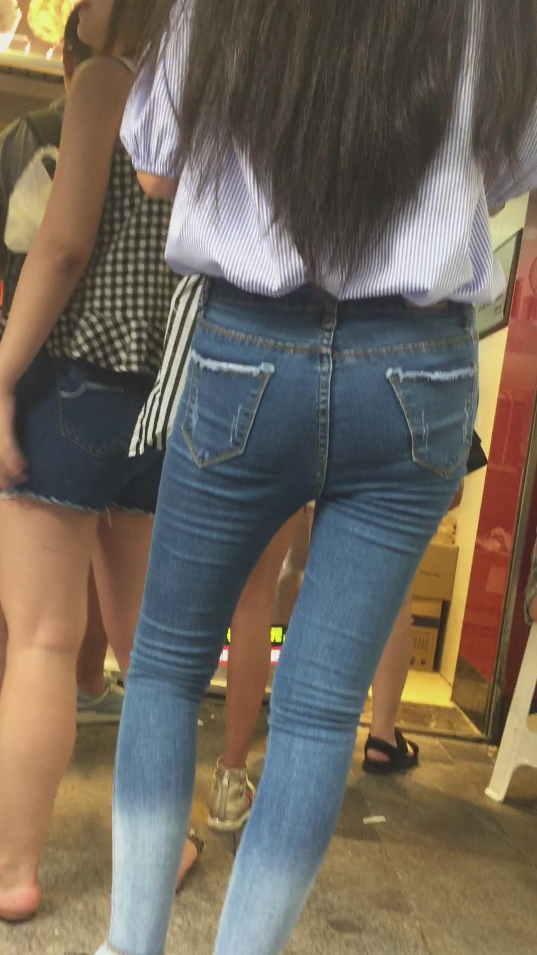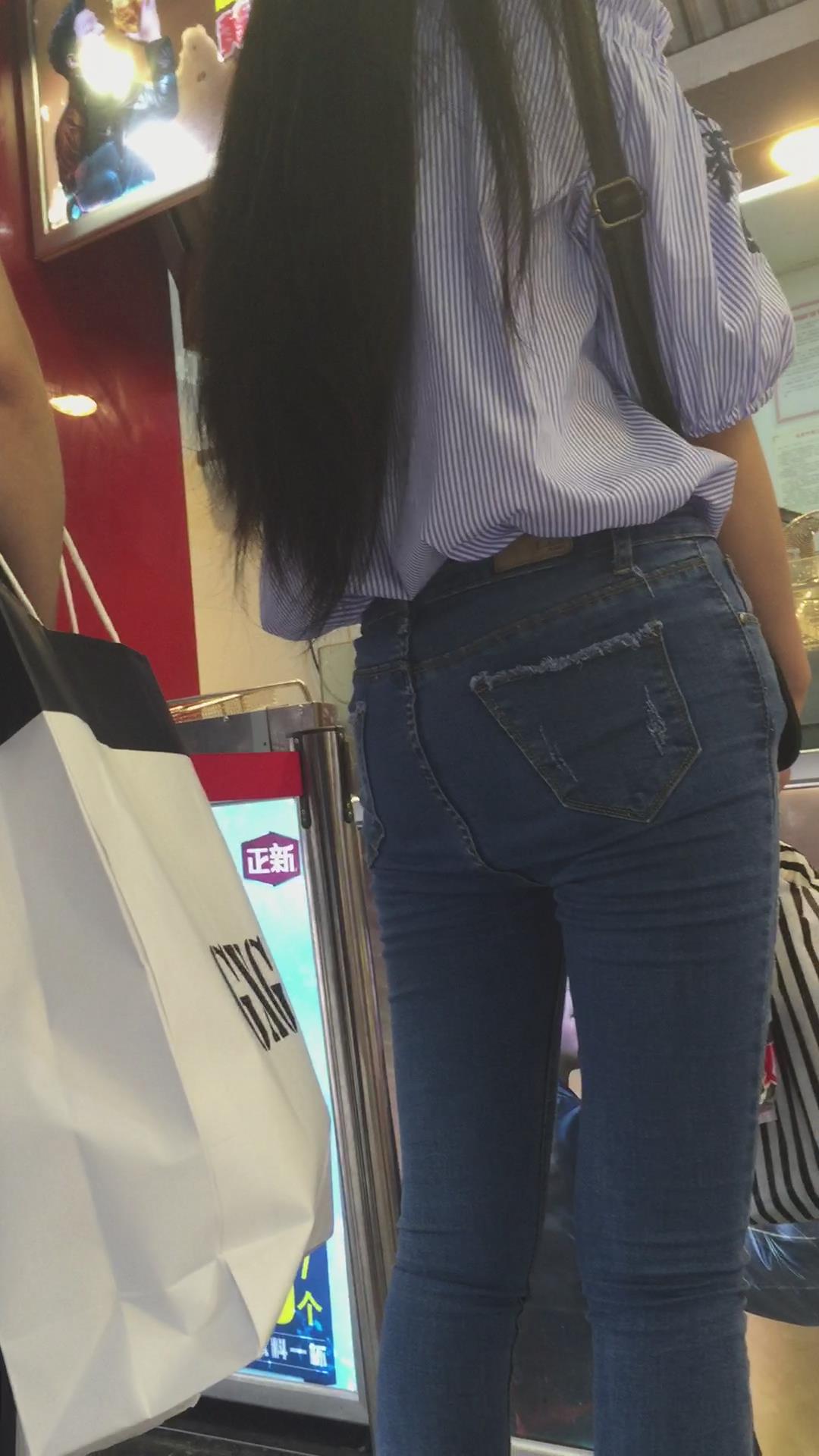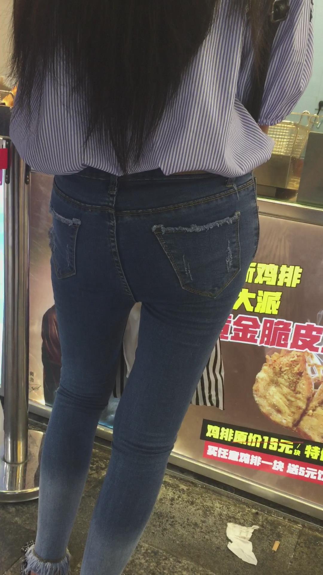 | 街拍蓝色衬衫牛仔裤小姐姐 编号6058 |