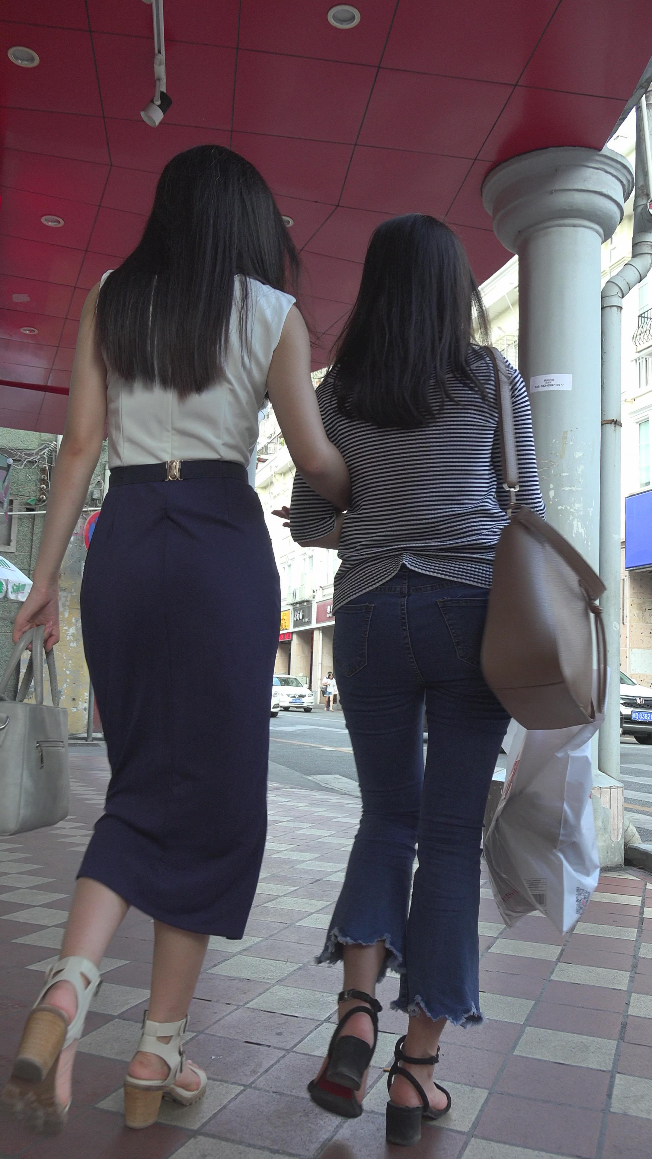 | 街拍紧身牛仔条纹T恤美女姐妹 编号6062 |