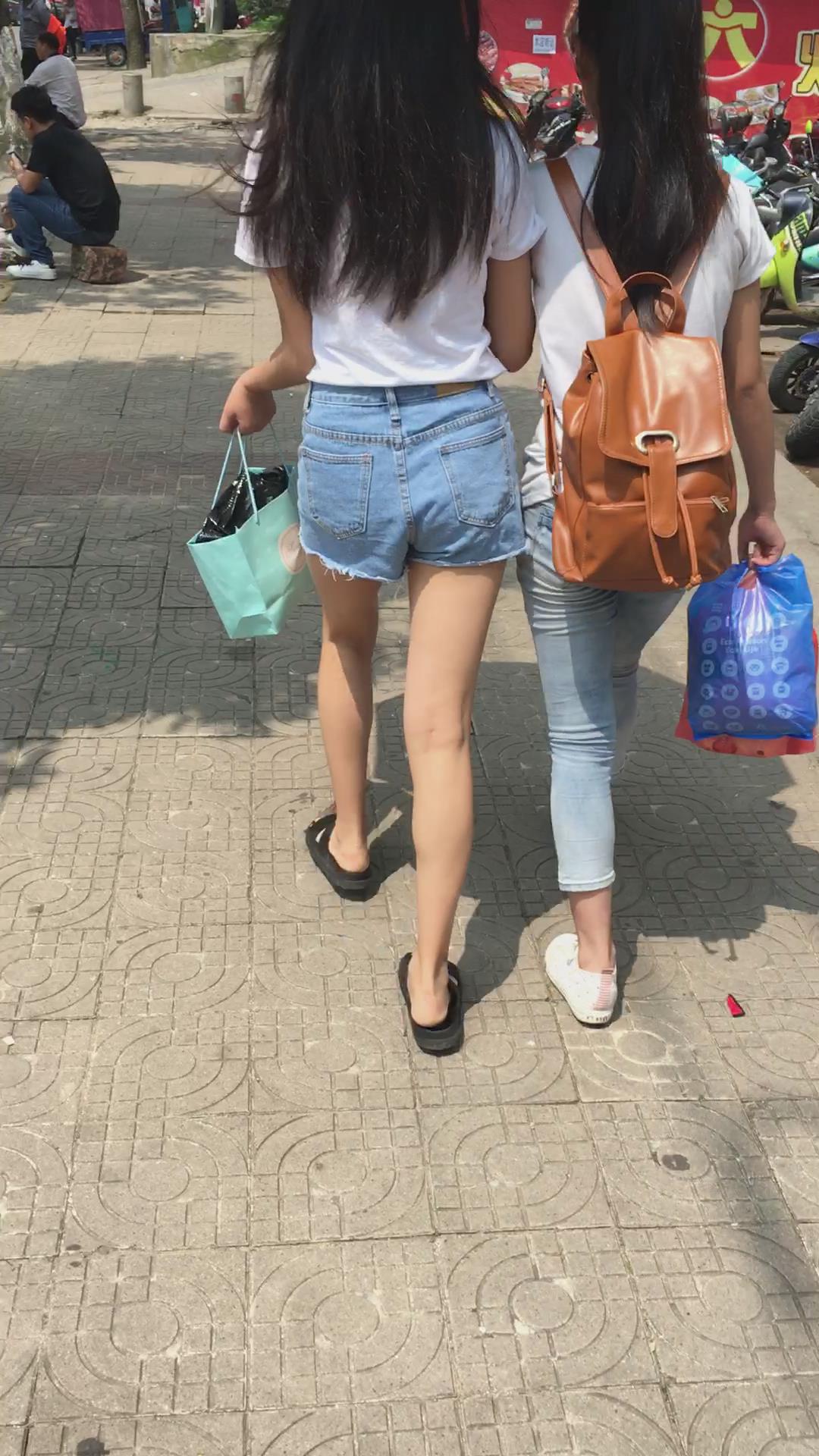 | 街拍小清新白T恤高腰热裤美女小姐姐 编号4502 |