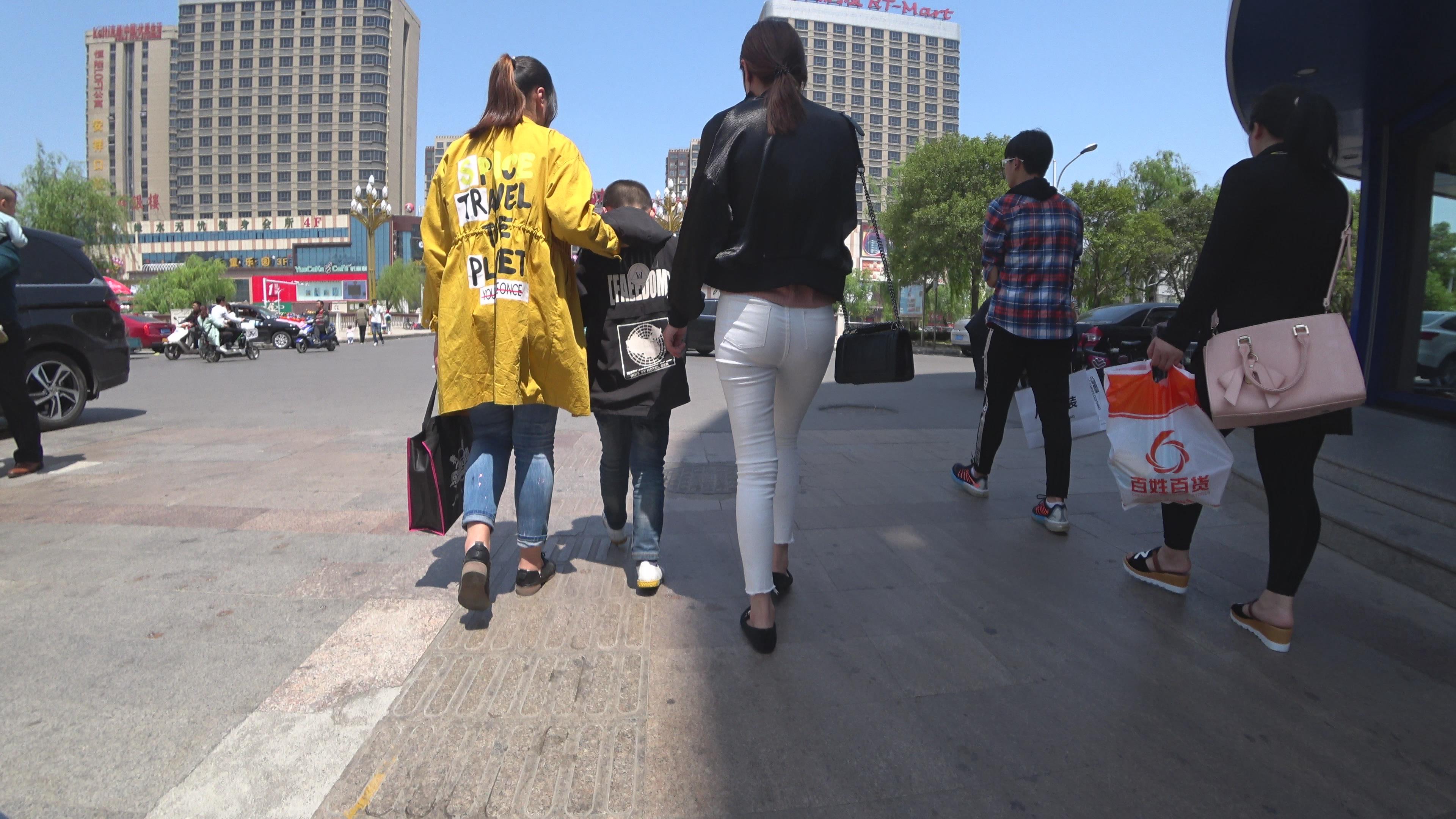 | 街拍皮衣紧身白裤美女 编号6066 |