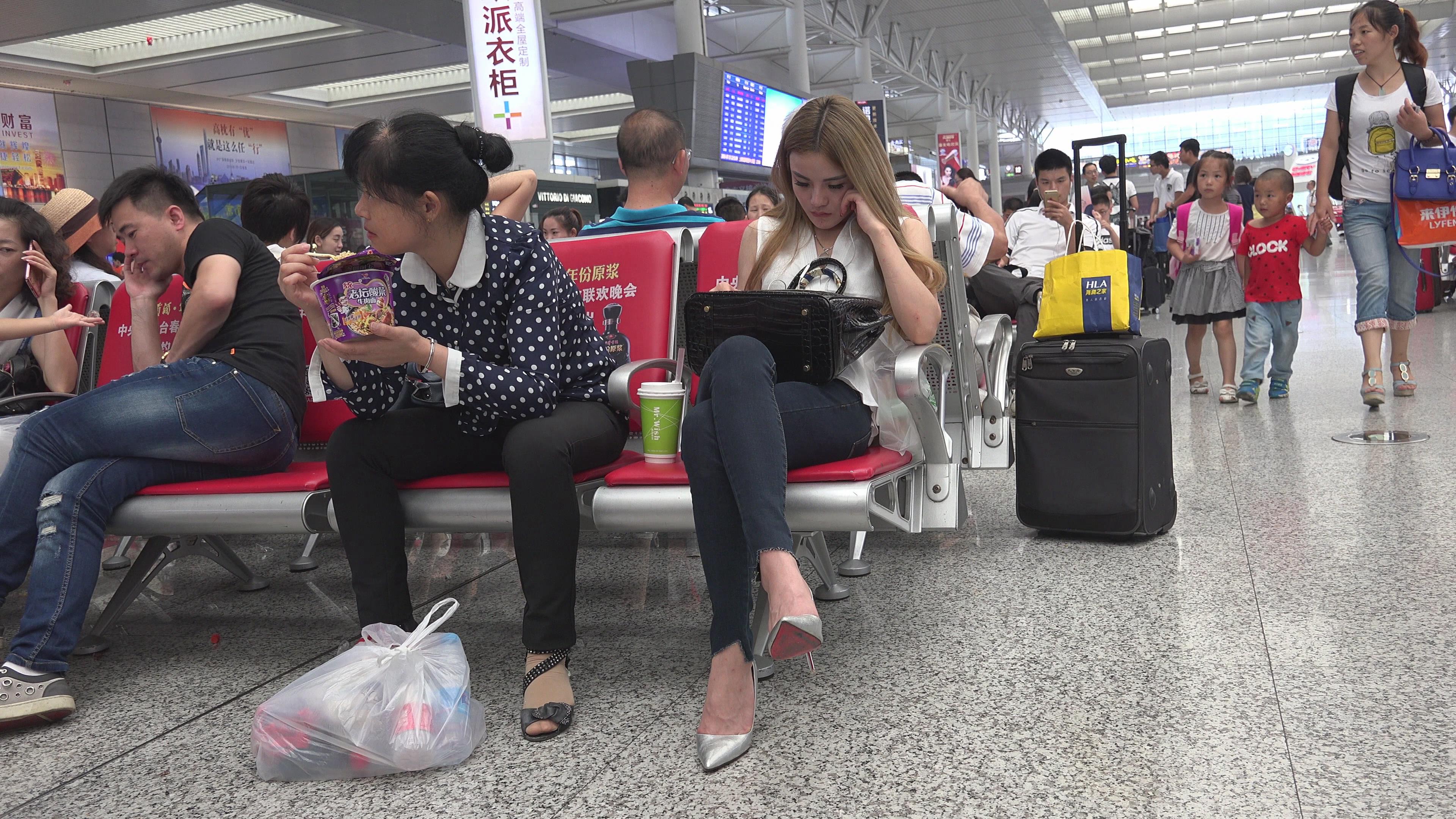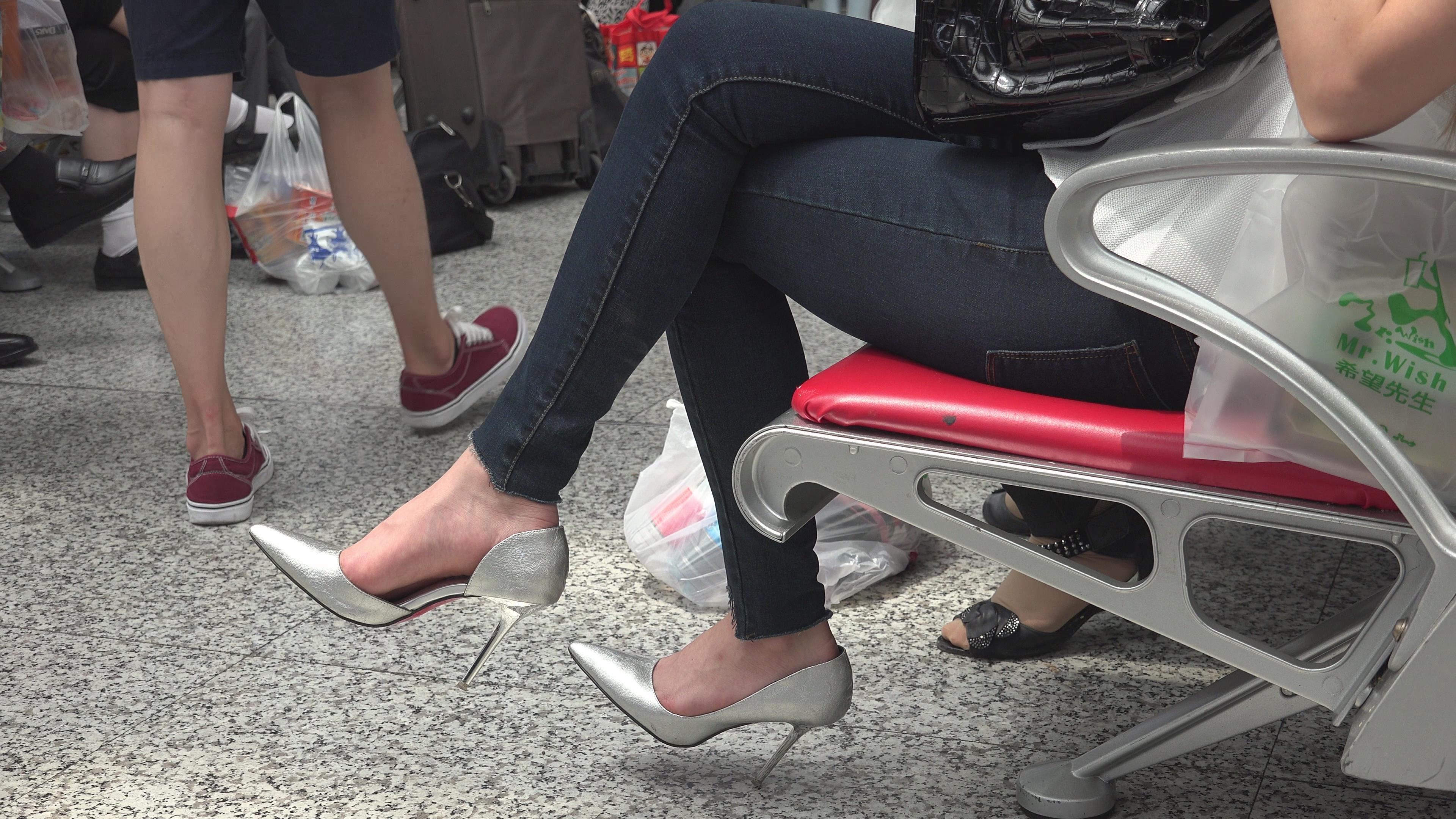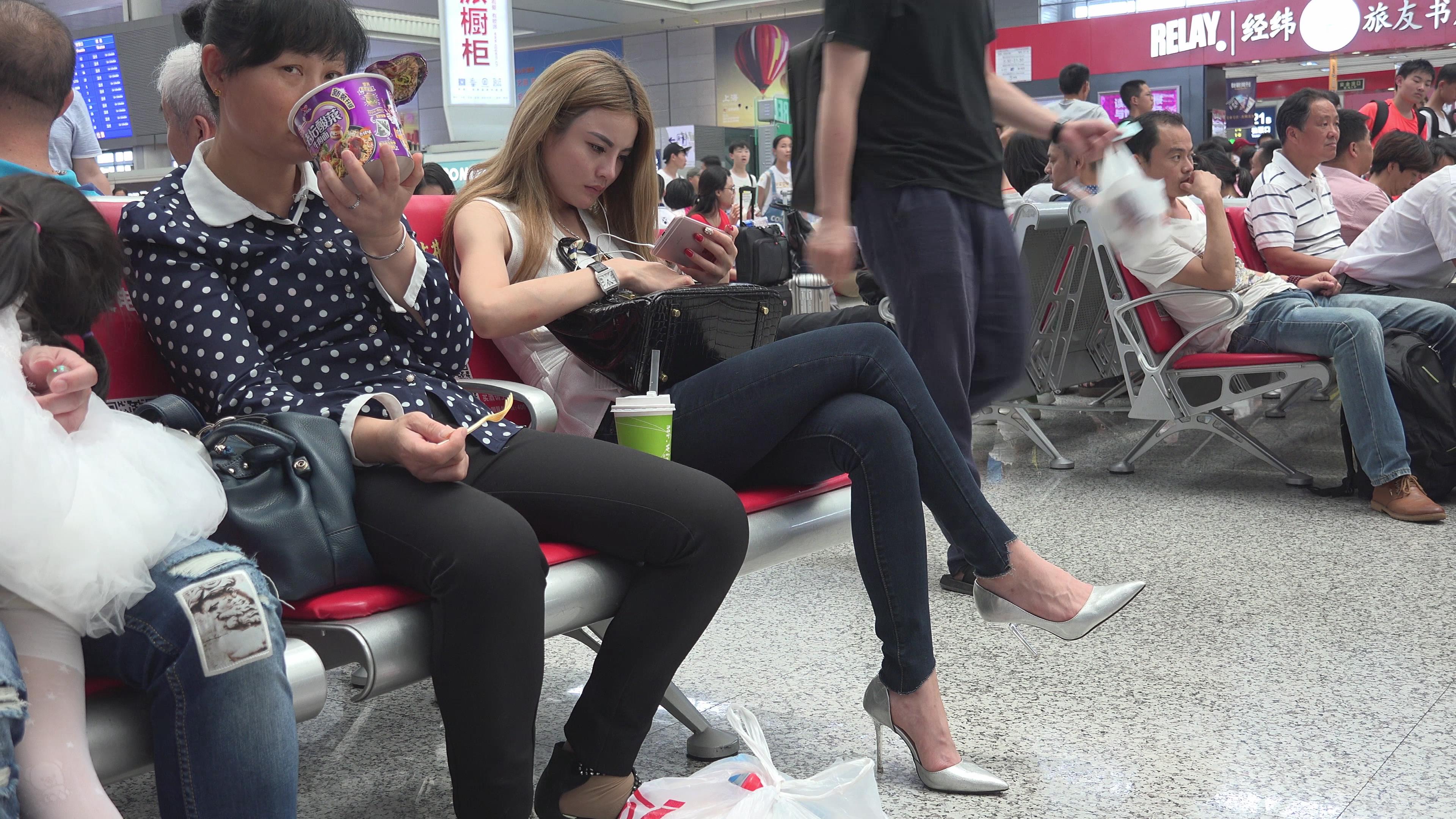 | 4K 候车室的银白尖嘴高跟美女 编号2732 |