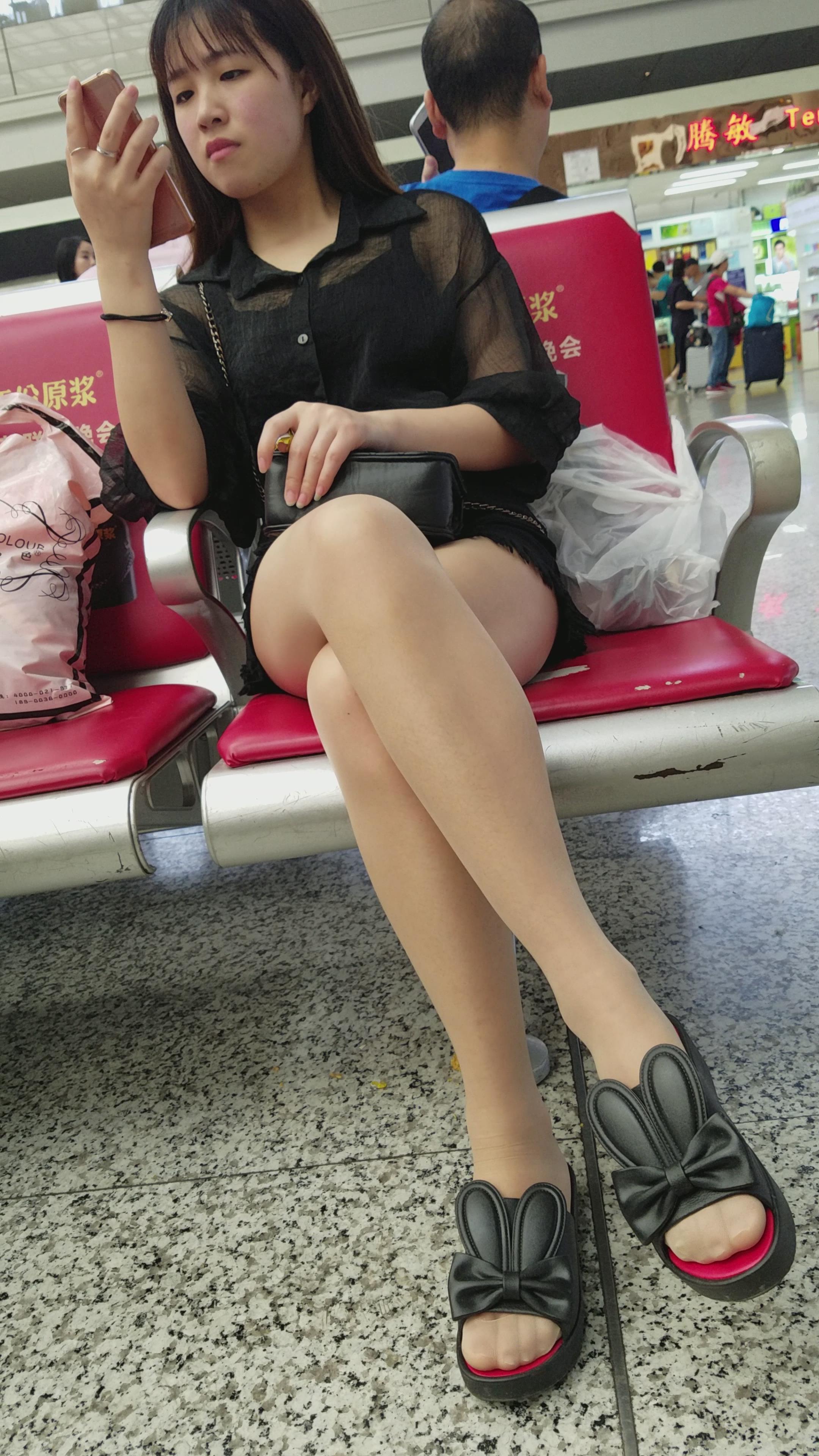 | 4K - 可爱兔子鞋街拍肉丝美腿气质漂亮美女 编号2746 |