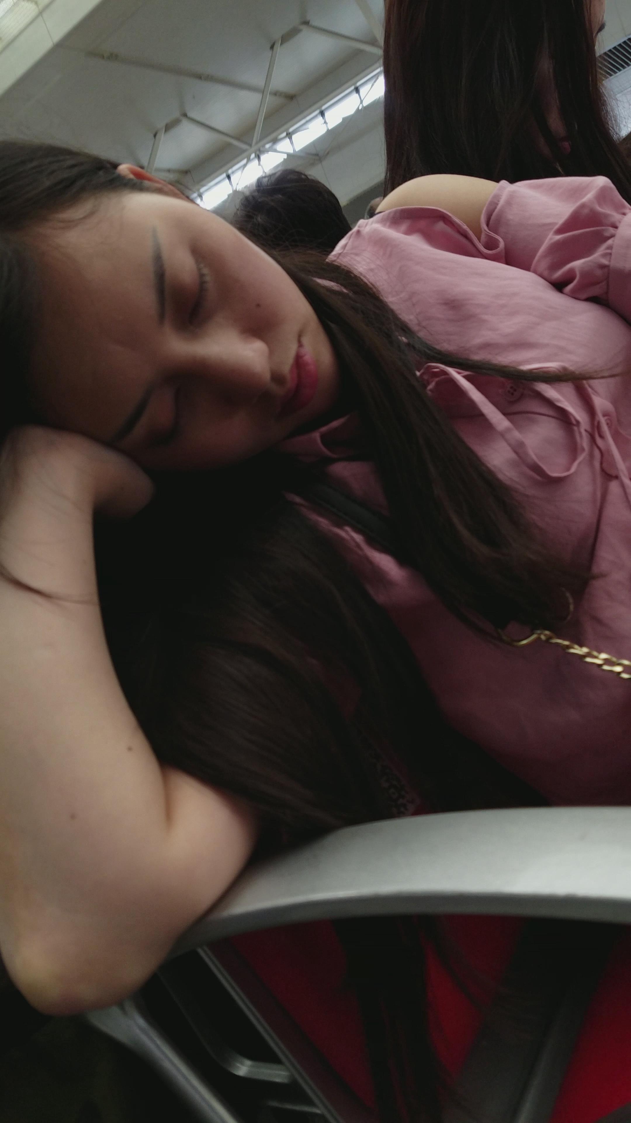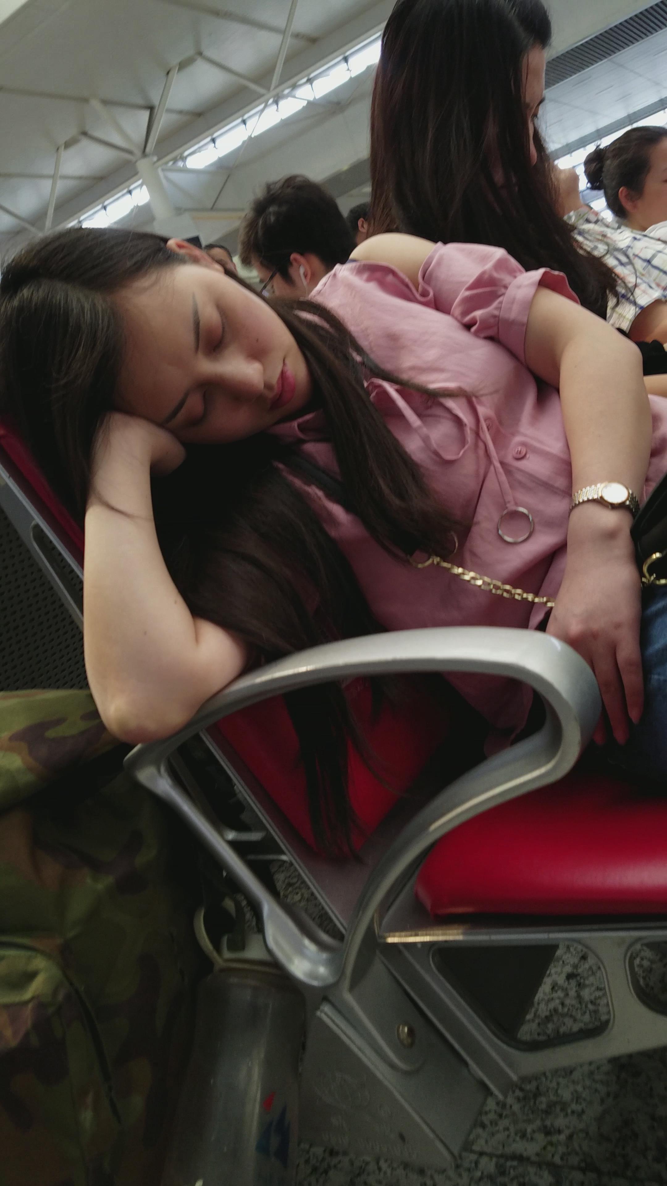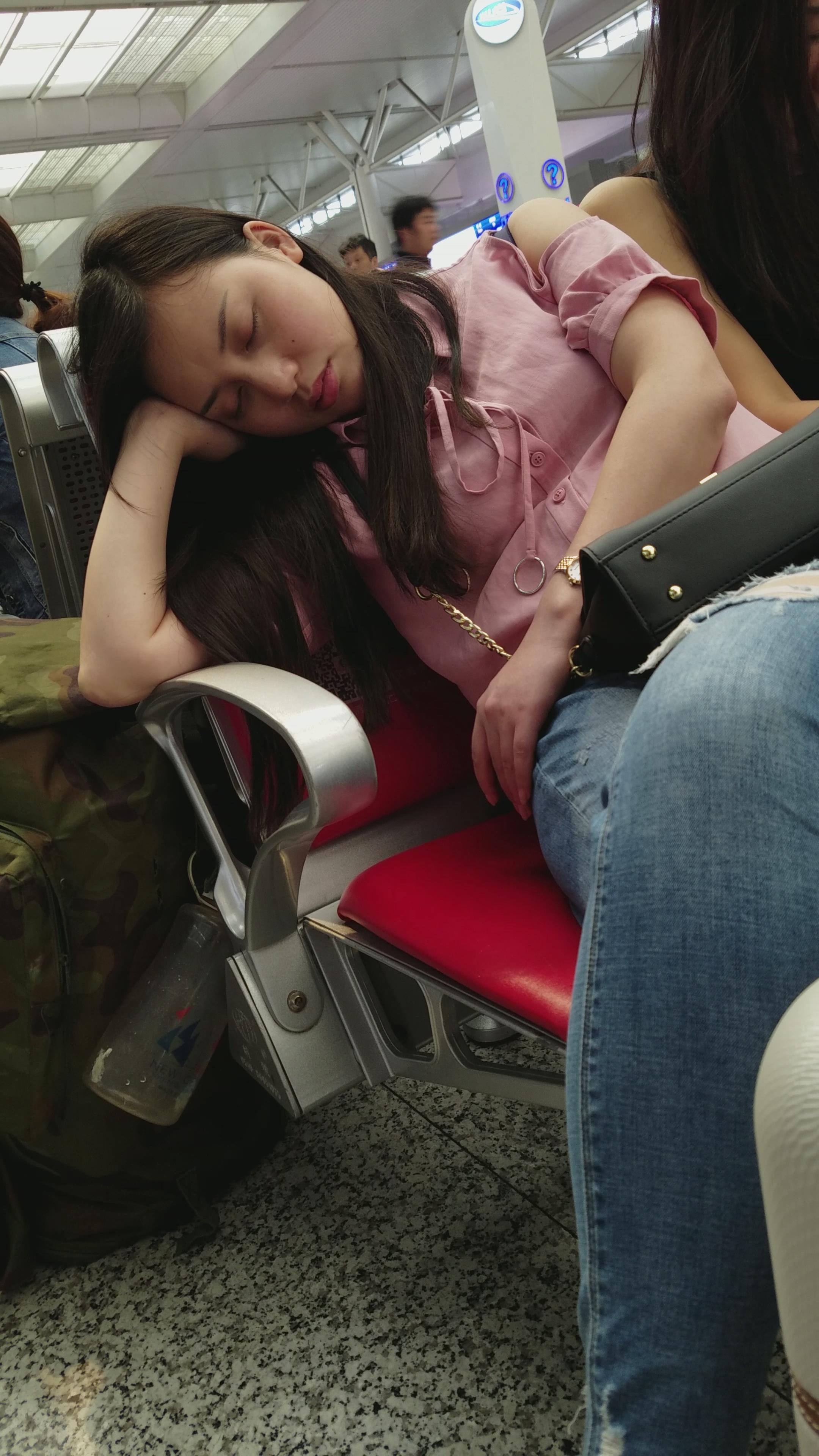 | 4K-候车室睡觉的粉色衬衫紧身牛仔裤妹纸 编号2752 |
