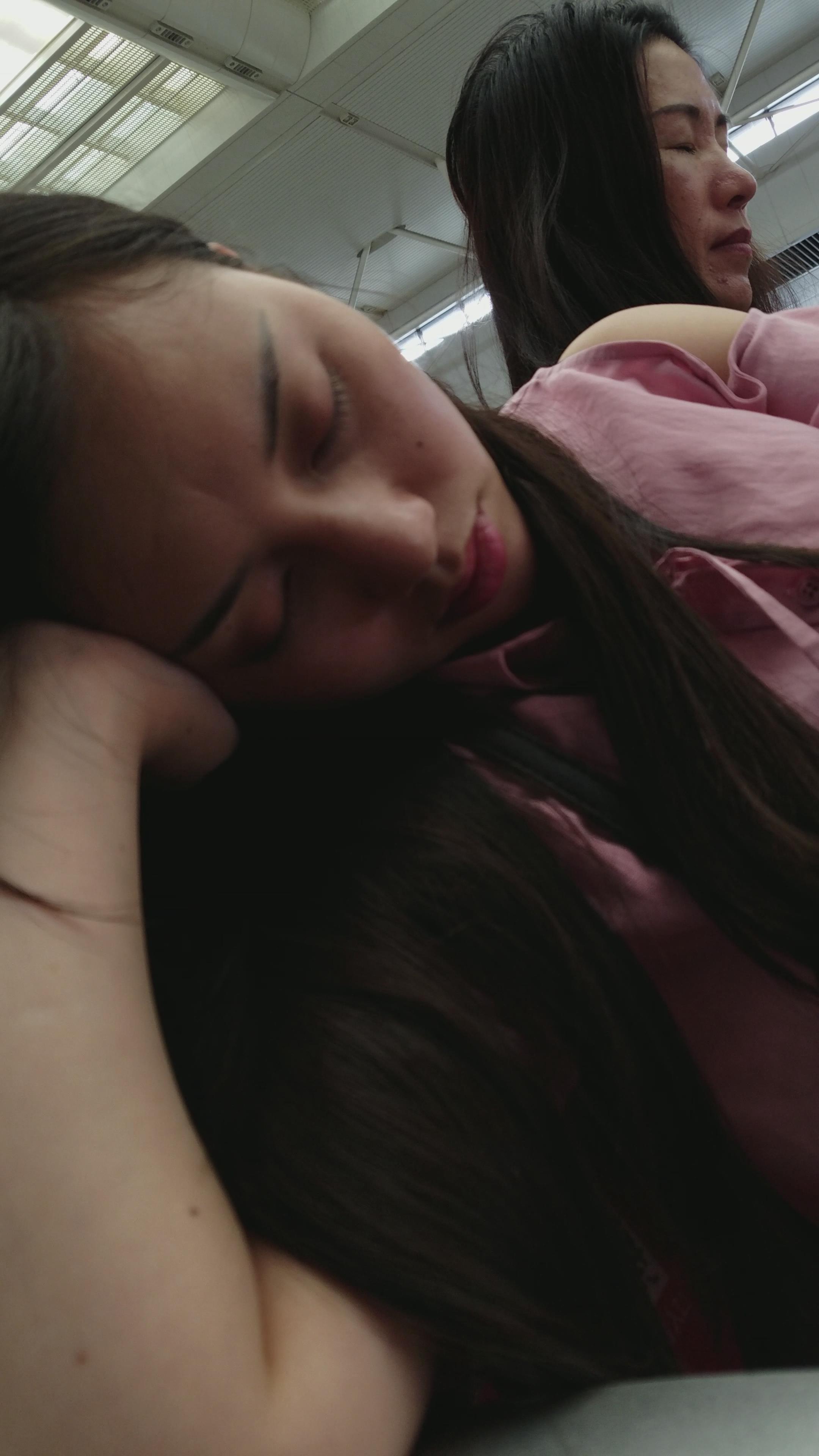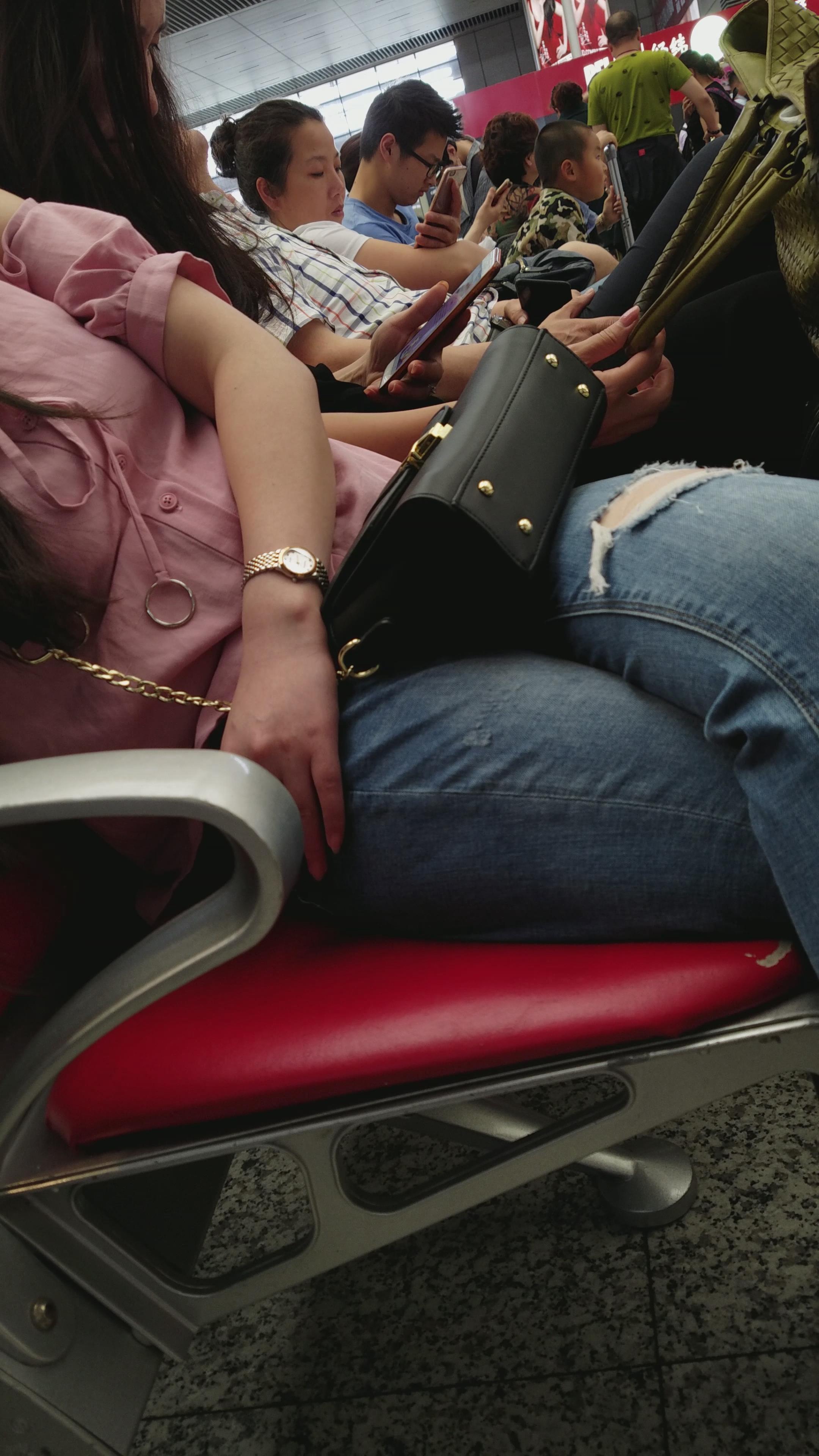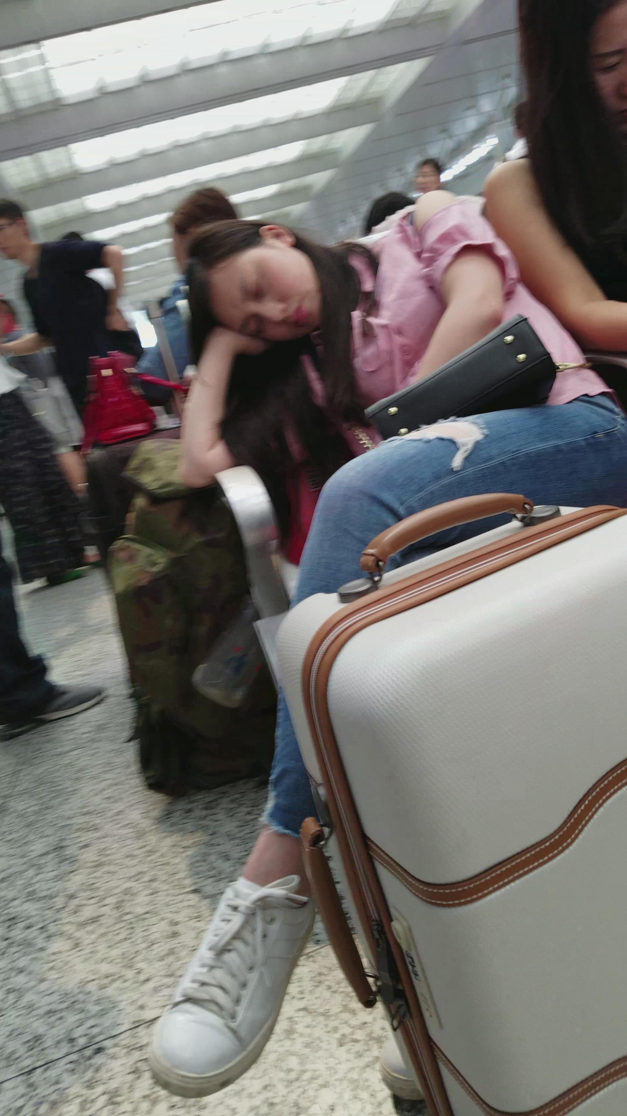 | 4K-候车室睡觉的粉色衬衫紧身牛仔裤妹纸 编号2752 |