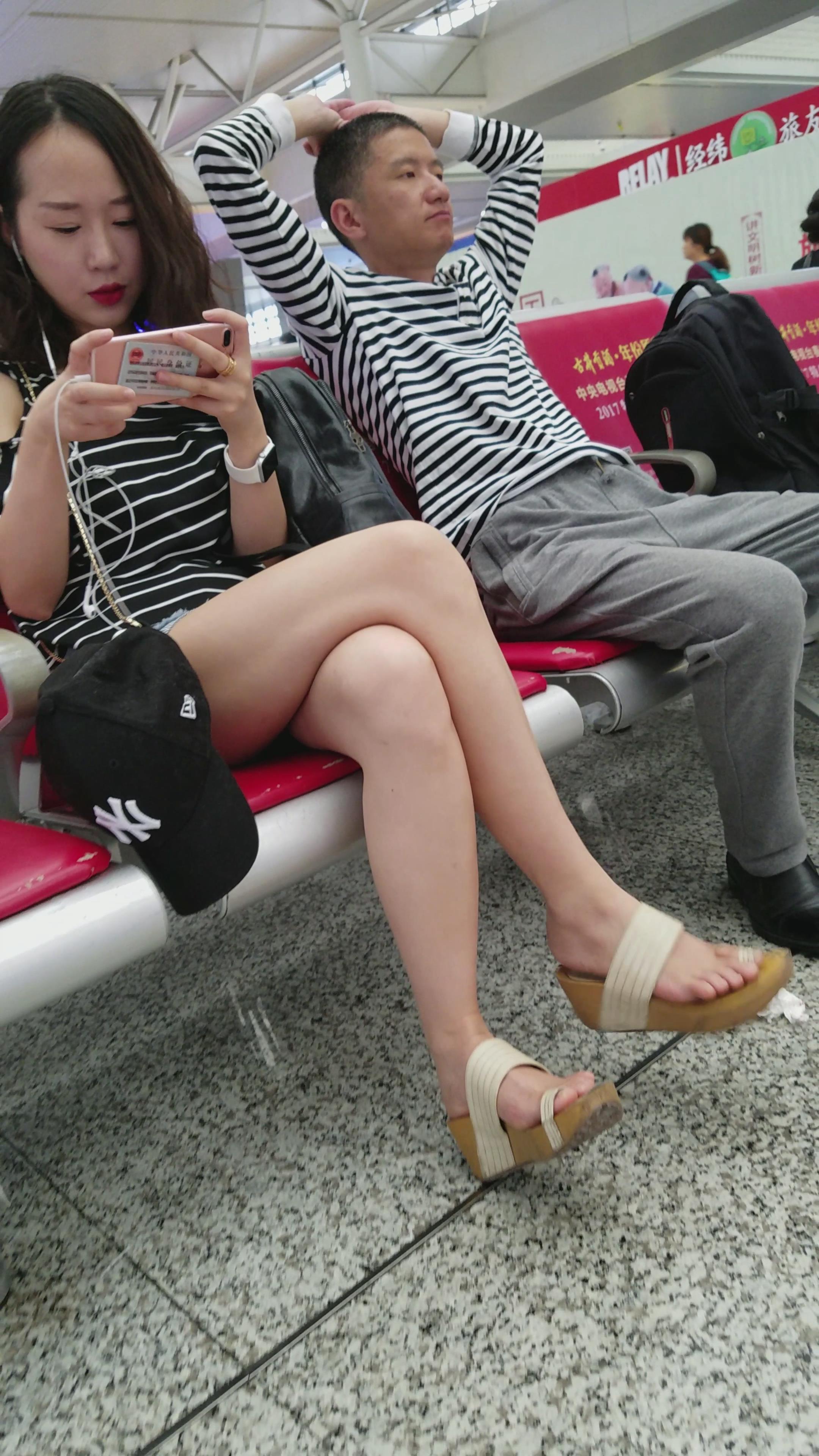 | 4K-低头玩手机的条纹衫牛仔超短裤街拍美腿姐姐 编号2772 |