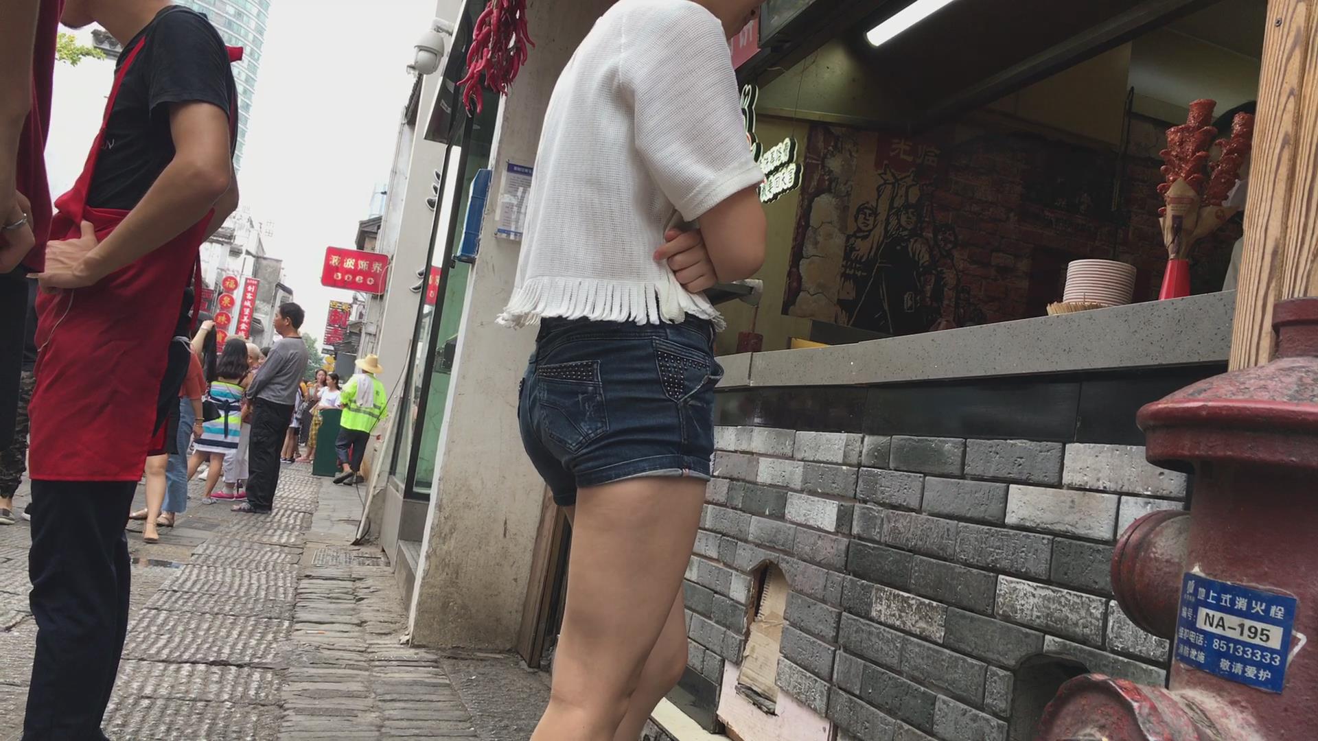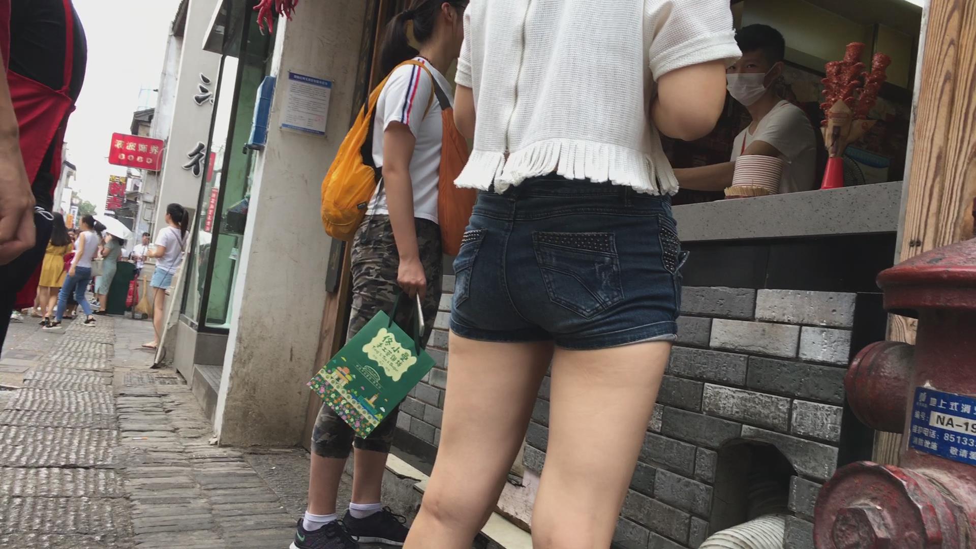 | 街拍牛仔短裤苹果臀美眉 编号4519 |