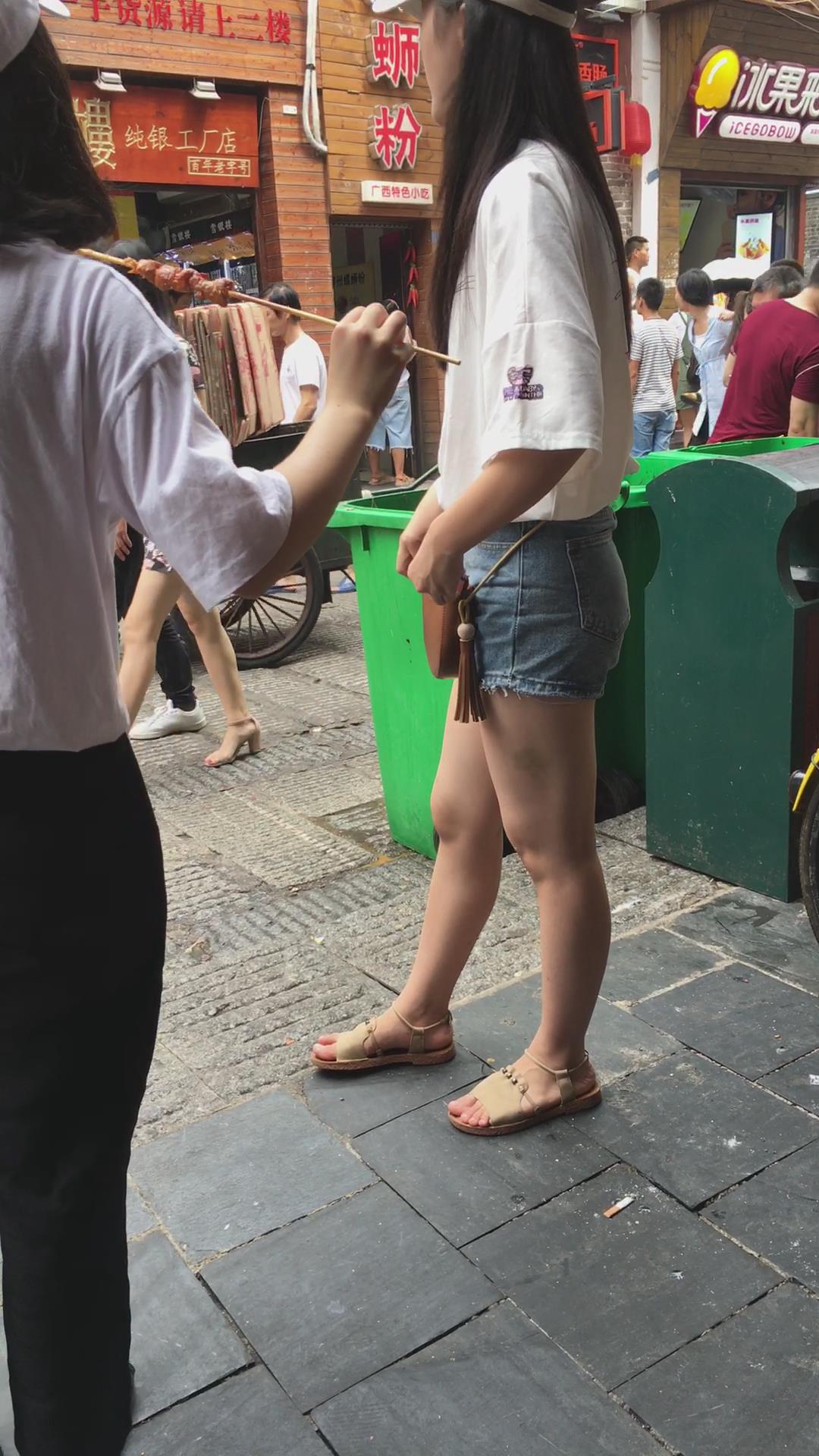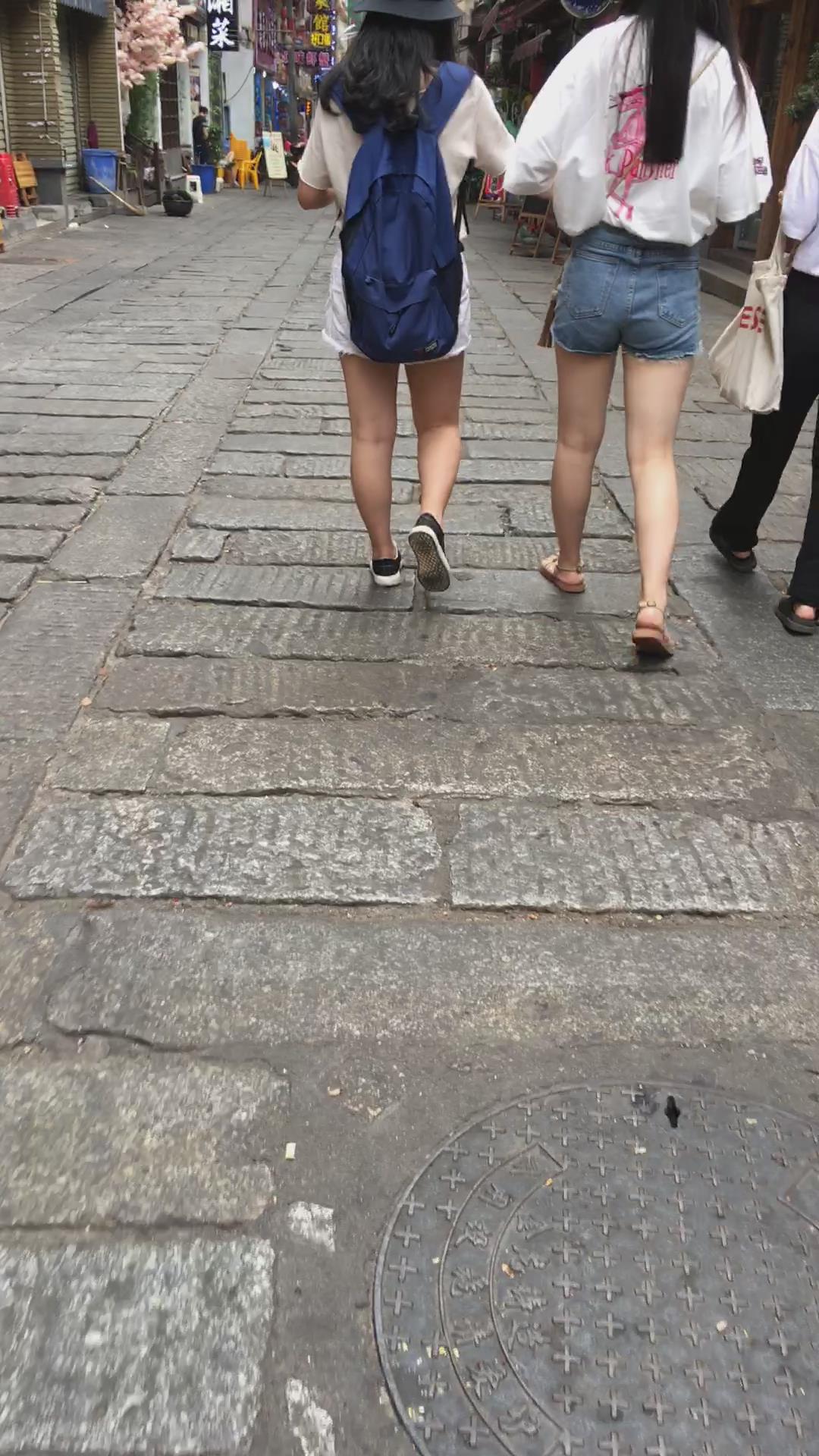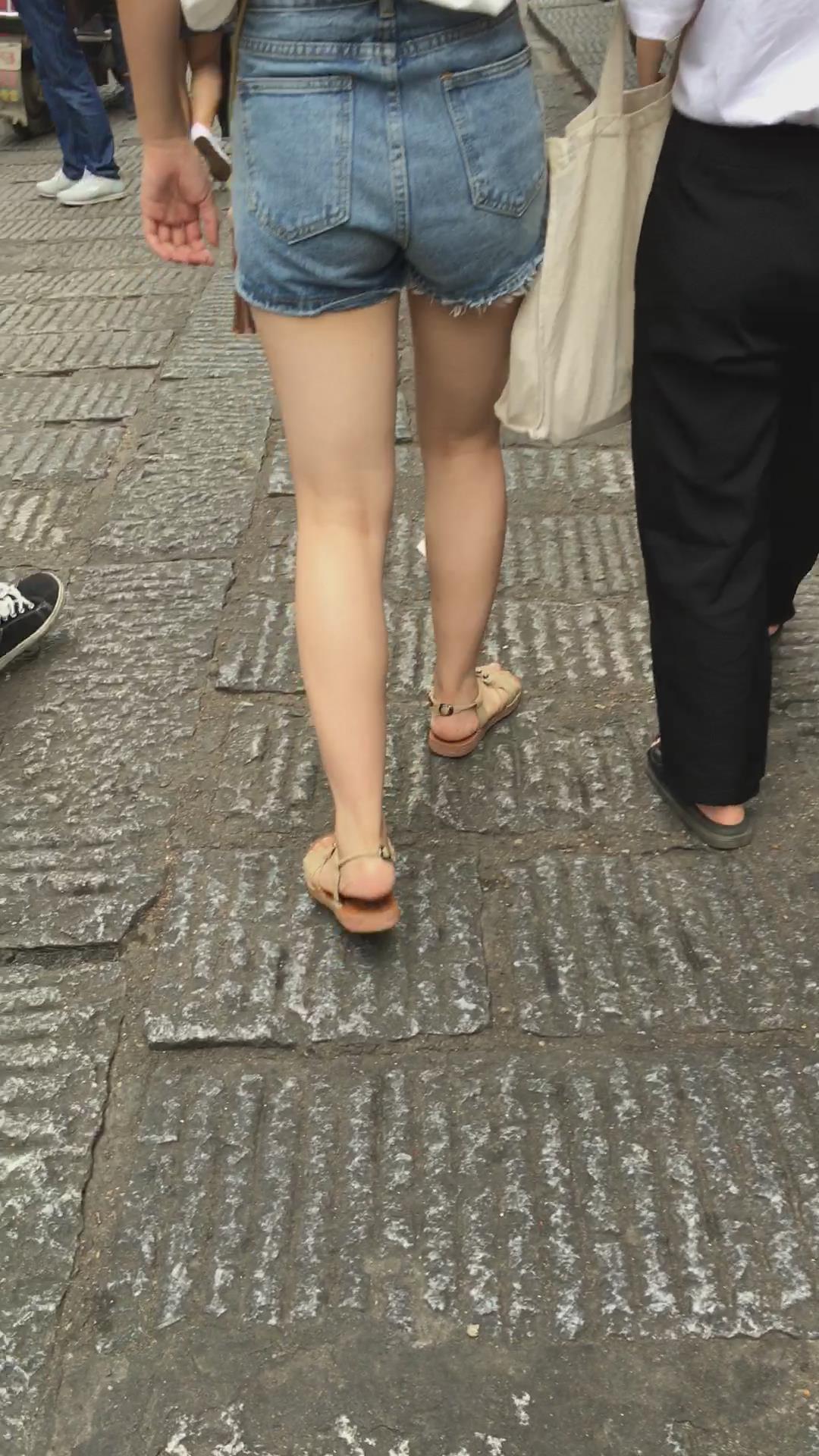| 街拍白衬衫牛仔热裤青春小姐姐 编号4520 |