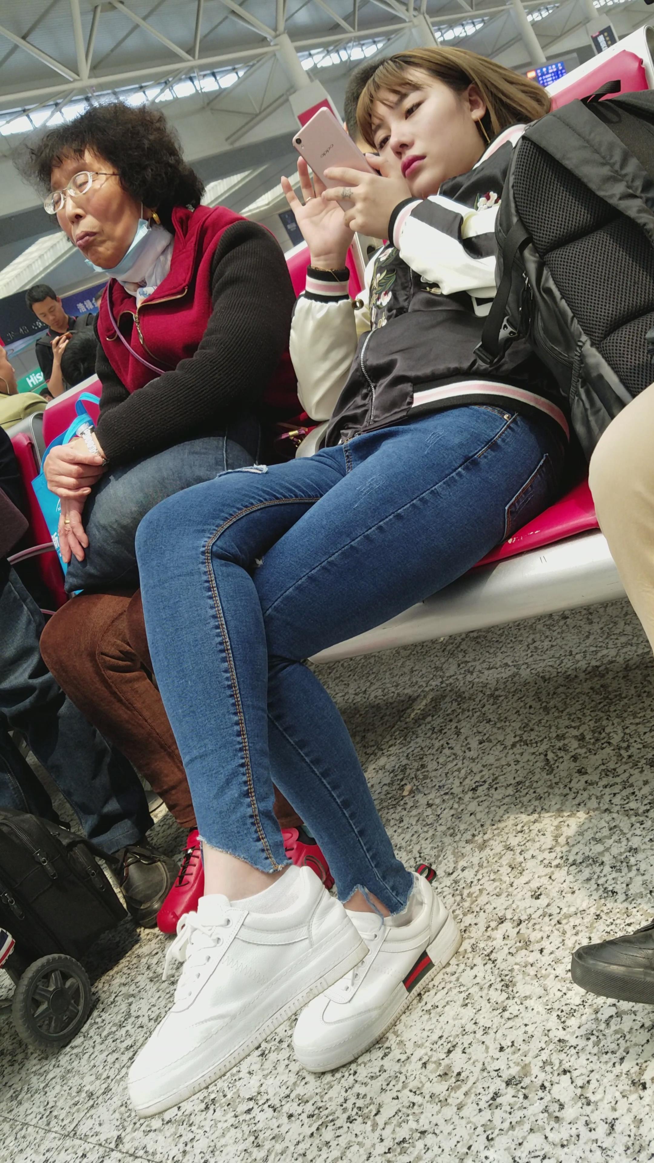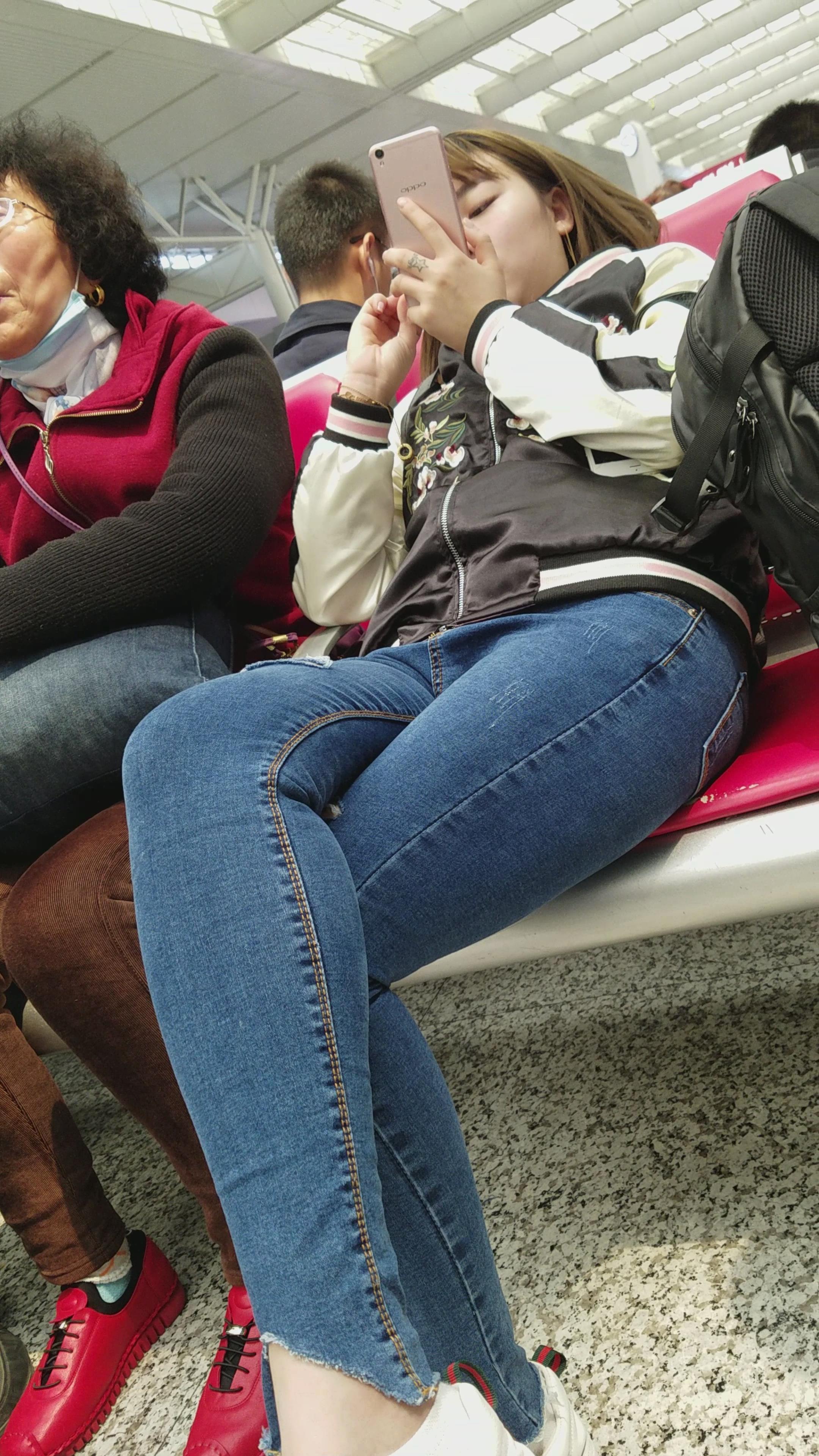 | 4k-高铁站候车室躺着玩手机的紧身蓝牛美女 编号2926 |