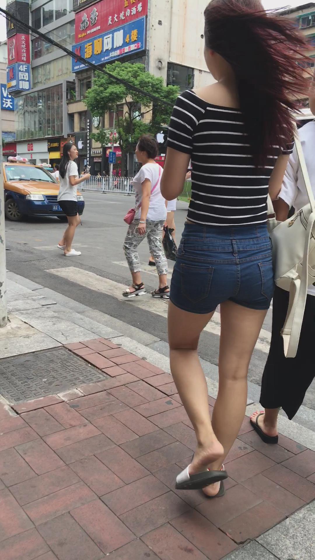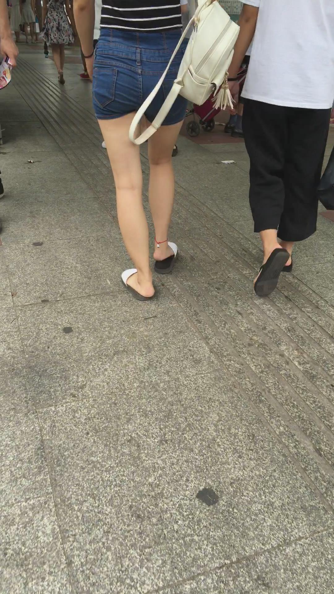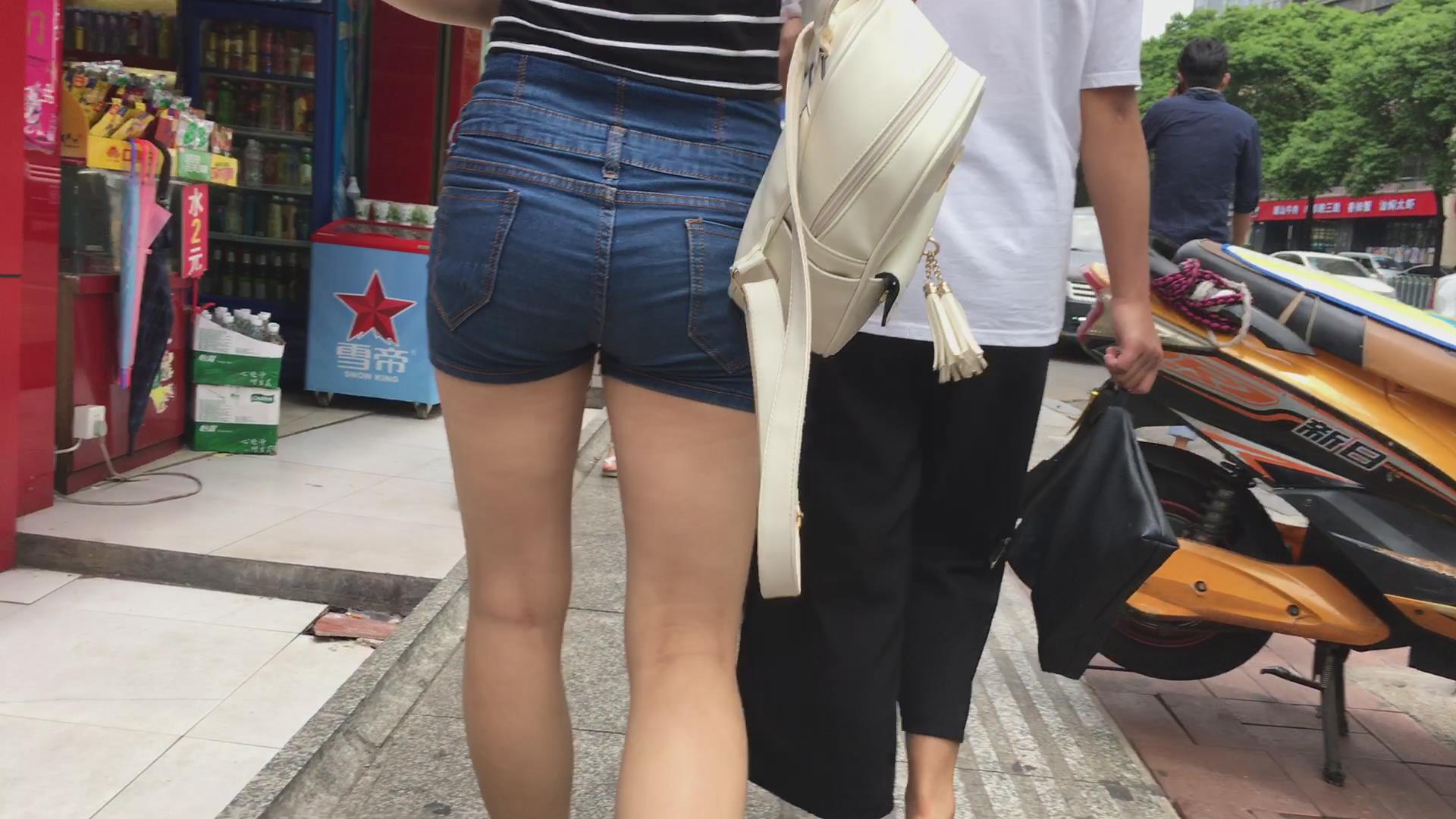 街拍秀发飘逸的高傲牛仔热裤小清新妹子 编号4530 |