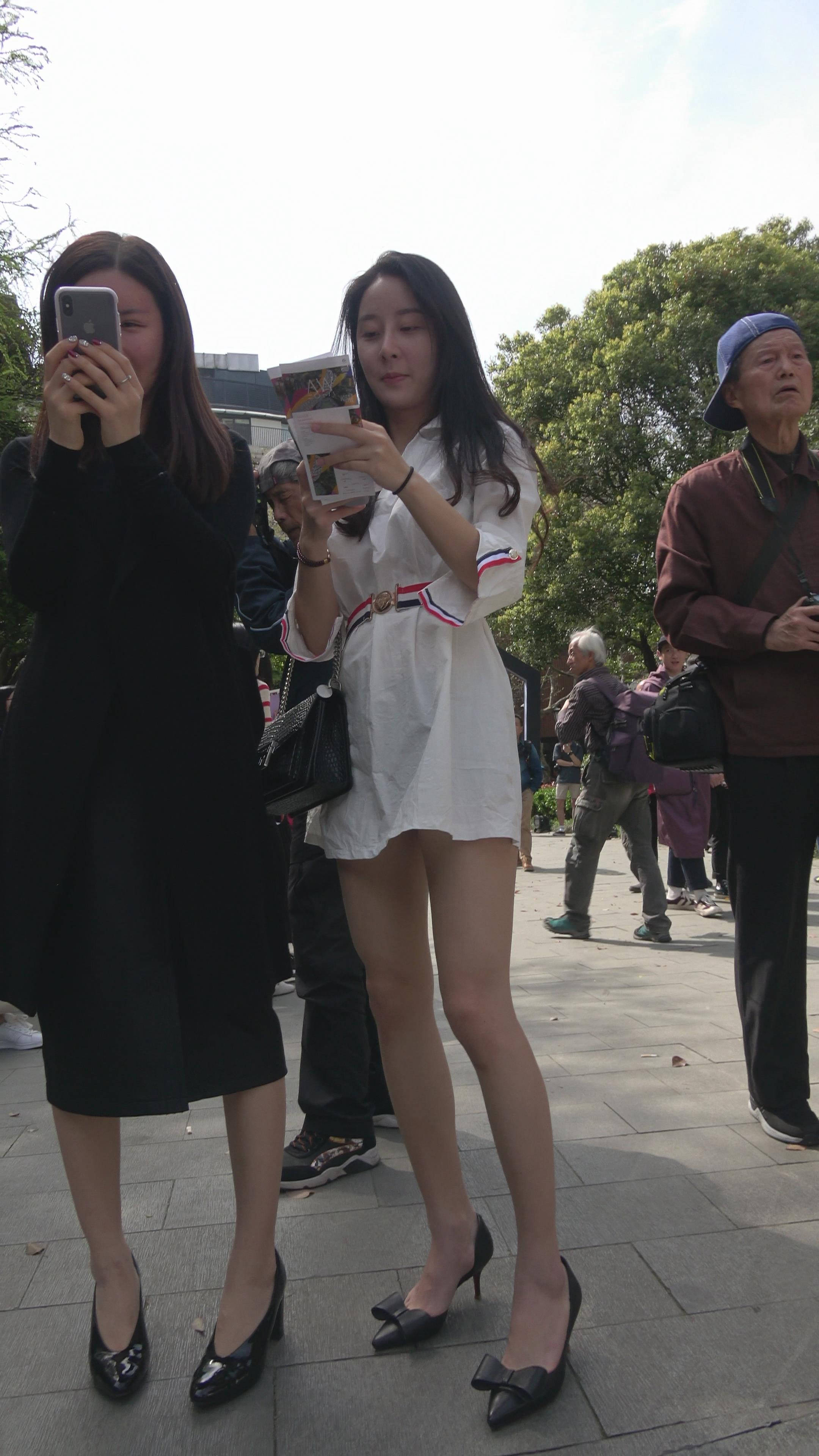 | 4K - 黑色高跟鞋性感街拍美腿连衣裙极品气质美女 编号7958 |