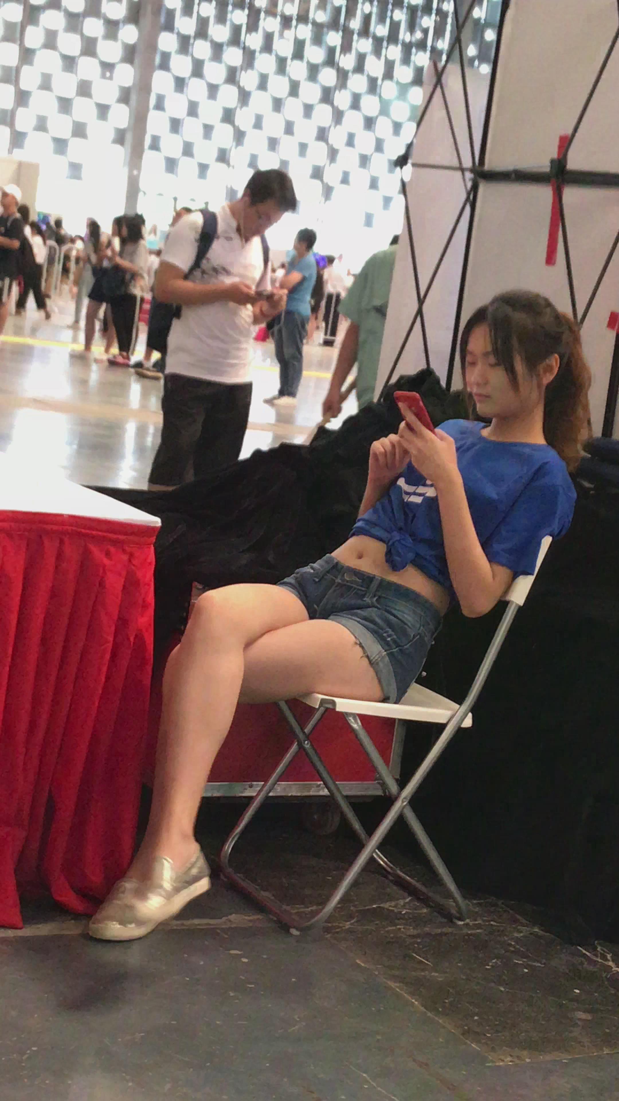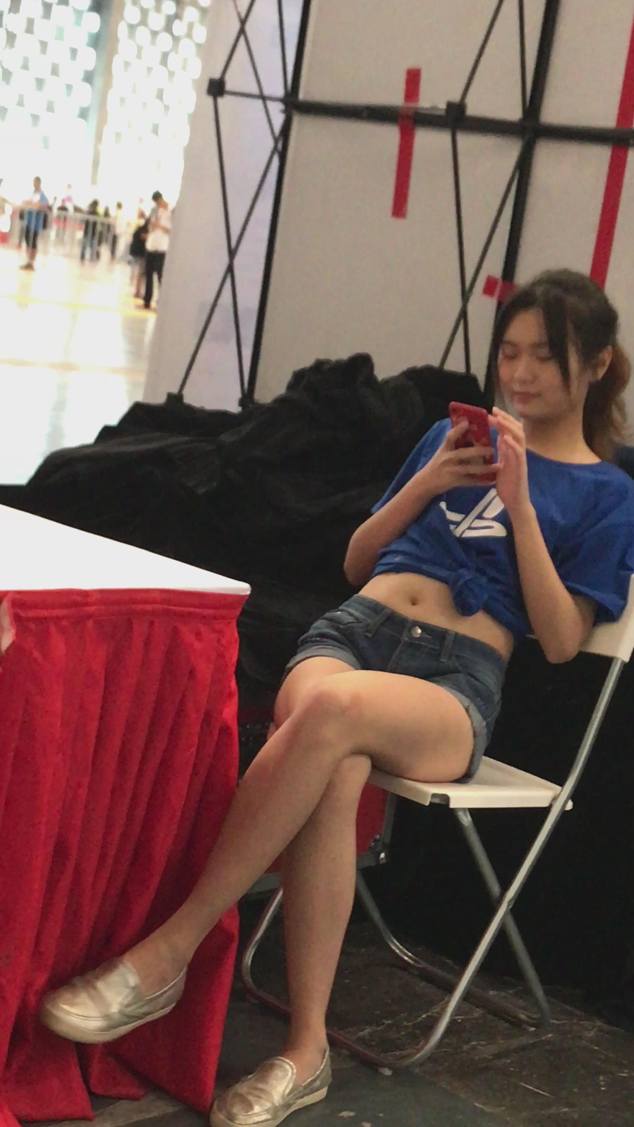 | 蓝T恤热裤露脐气质小姐姐微笑更甜美 编号4064 |