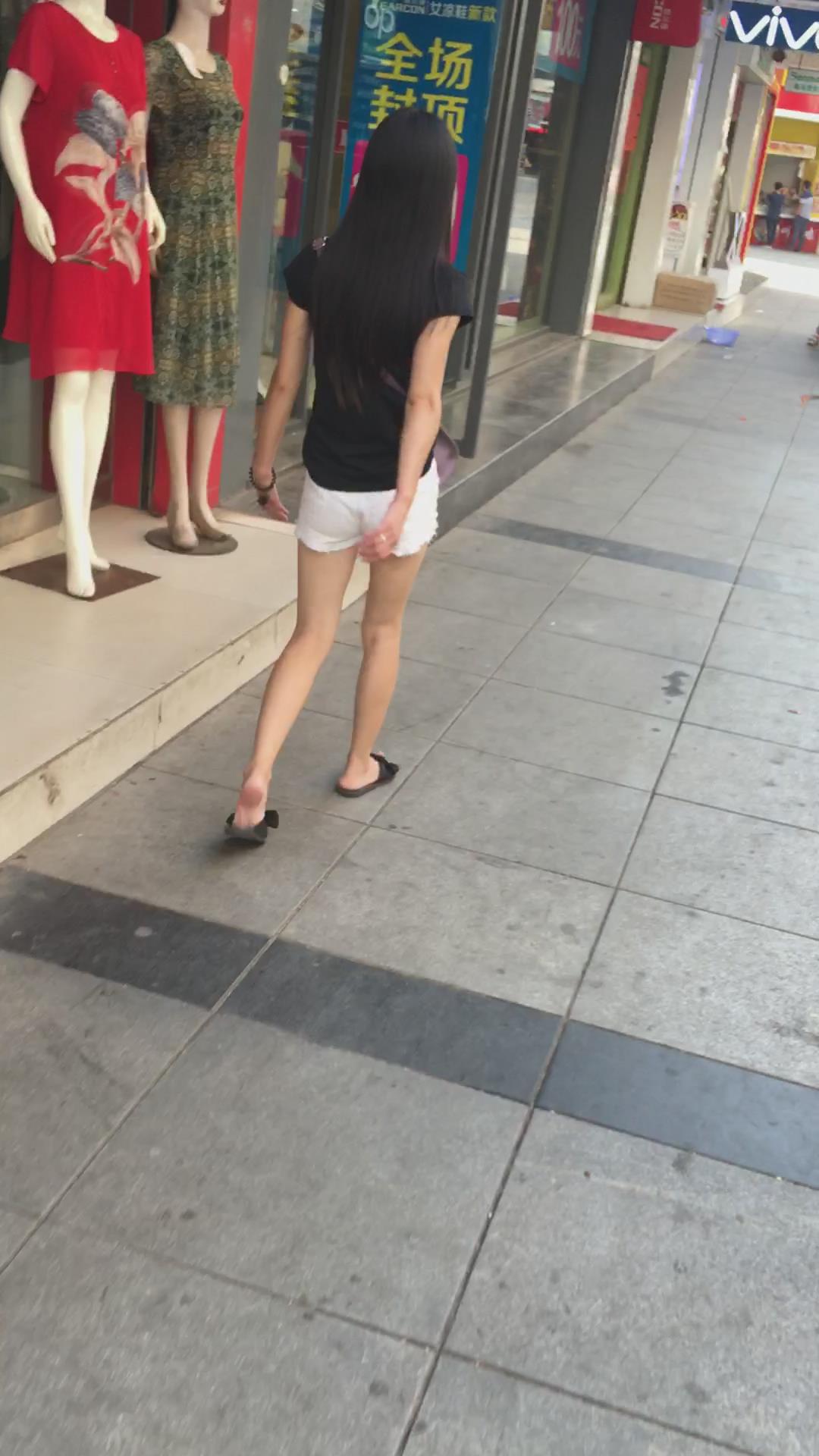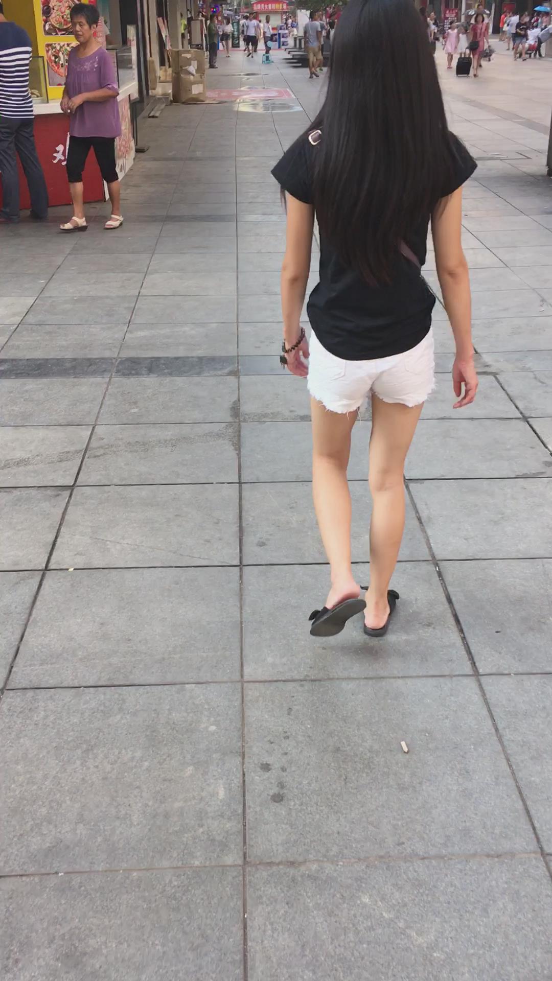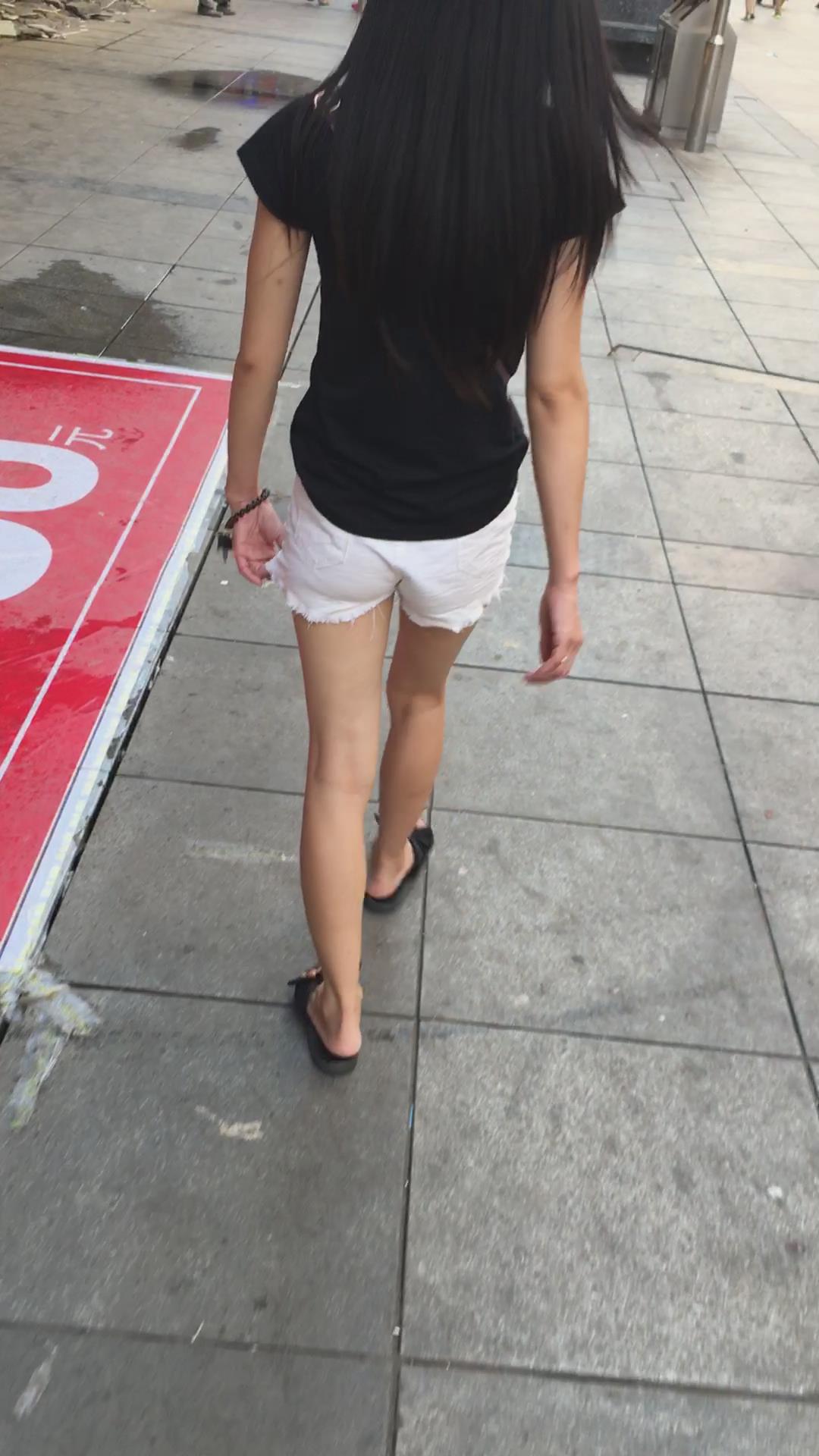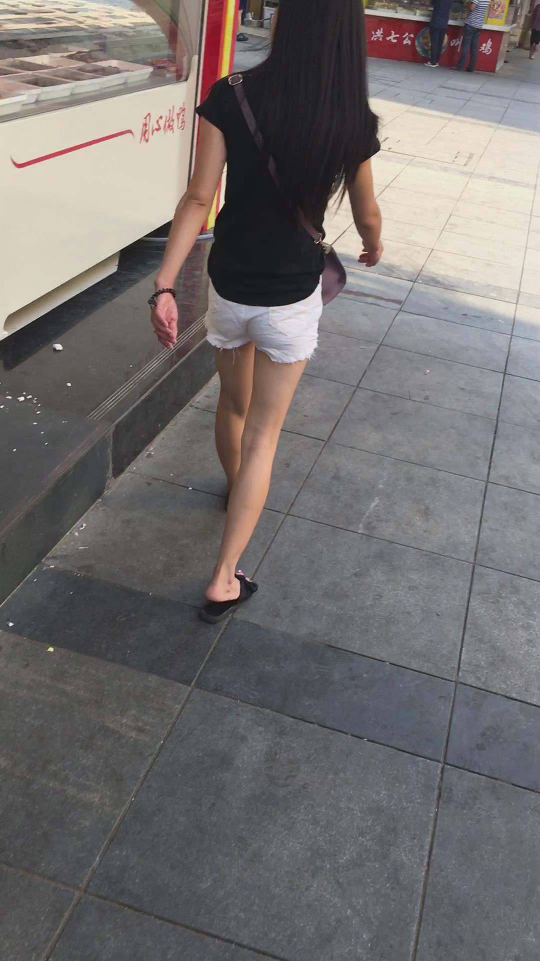 跟拍黑T恤白色超短热裤苗条身材美眉 编号4070 |