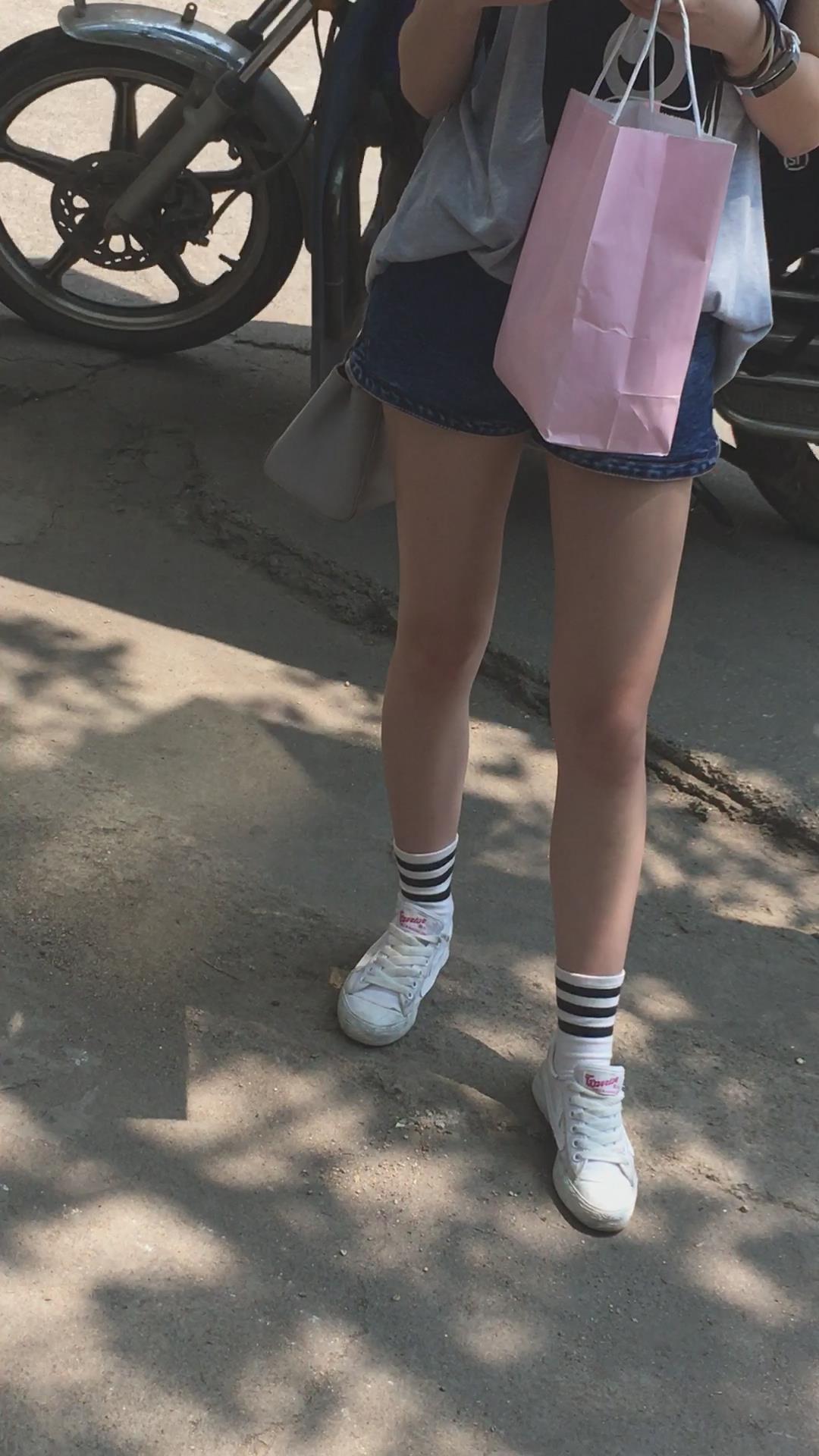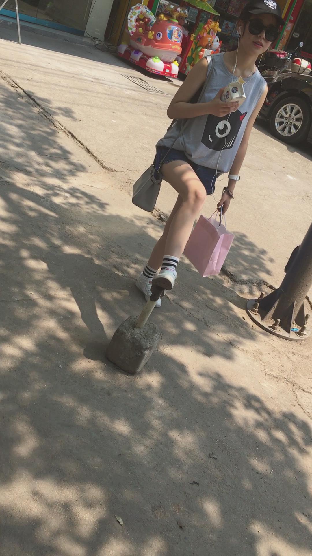 墨镜鸭舌帽牛仔热裤娇小身材街拍小美女 编号4095 |